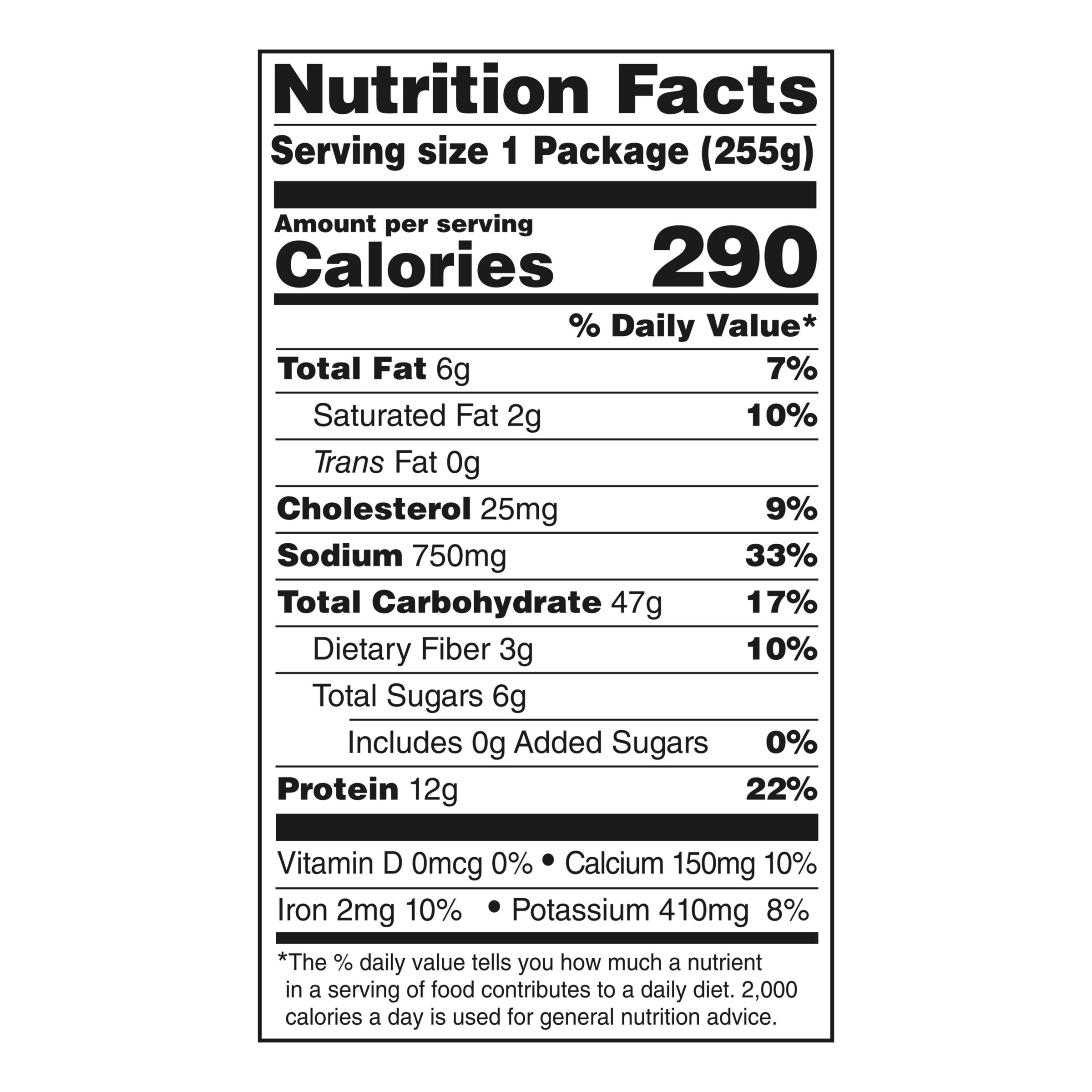 - Each microwave meal contains 290 calories and 12 grams of protein per serving