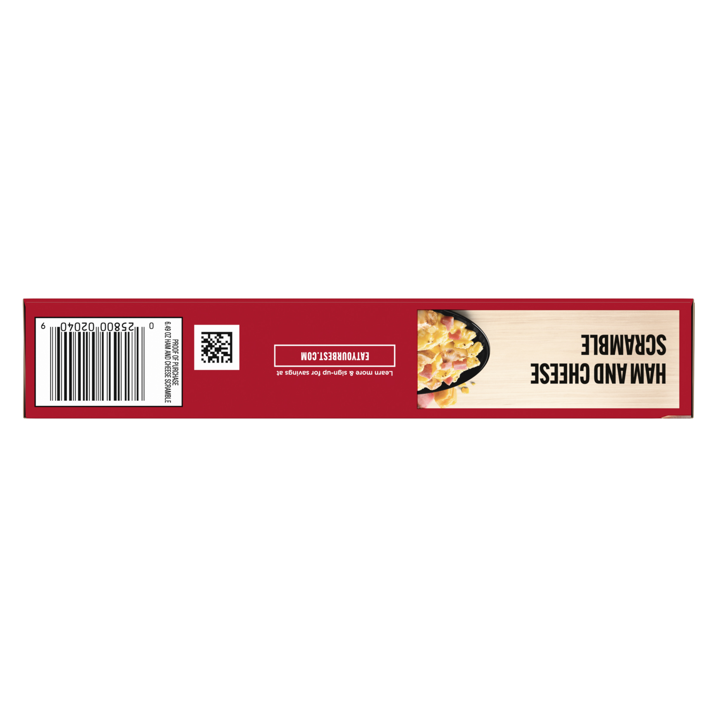 GTIN 00025800020409 Kraft Item Code (SKU) 00258000204070 Product Status Active Pack Level EACH Brand Name Smart Ones Business Unit Hydration Desserts & Meals Catalog Platform Easy Ready Meals Product Category Frozen Meals - Wellness Consumer Unit Size 6.49 Consumer Unit Size UOM OZ Packaging Type (Computed) Box Packaging Type Code BOX/CARTON Packaging Type Code Override (Manual) BOX Sub Units Per Item 1 Variant Ham And Cheese Scramble Global Product Classification Dairy/Egg Based Products - Not Ready to Eat (Frozen) Global Product Classification Code 10000254 Computed Exports - Ingredients SCRAMBLED EGG PRODUCT (EGG WHITES, WHOLE EGGS, CORN STARCH, XANTHAN GUM, ANNATTO [COLOR]), ROASTED POTATOES (POTATOES, CANOLA OIL, SALT, PEPPER), COOKED HAM WITH WATER AND SMOKE FLAVOR ADDED (HAM, WATER, SUGAR, SALT, POTASSIUM SALT, POTASSIUM AND SODIUM PHOSPHATES, NATURAL FLAVORS, NATURAL SMOKE FLAVOR, SODIUM ERYTHORBATE, SODIUM NITRITE), SAUCE (WATER, PASTEURIZED PROCESS CHEESE SPREAD [CHEDDAR CHEESE (MILK, CHEESE CULTURE, SALT, ENZYMES), SKIM MILK, SODIUM PHOSPHATE, WHEY, MILKFAT, SALT, SODIUM ALGINATE, SORBIC ACID (PRESERVATIVE), APOCAROTENAL (COLOR)], MODIFIED FOOD STARCH, WHEY PROTEIN CONCENTRATE, CONTAINS LESS THAN 2% OF SOYBEAN OIL, CHEDDAR CHEESE FLAVOR [CHEDDAR CHEESE (MILK, CHEESE CULTURES, SALT, ENZYMES), DISODIUM PHOSPHATE, ENZYMES, XANTHAN GUM, ACETIC ACID, WATER], SALT, POTASSIUM SALT, NATURAL FLAVOR, XANTHAN GUM, CITRIC ACID, TURMERIC OLEORESIN AND ANNATTO EXTRACT [FOR COLOR], AUTOLYZED YEAST EXTRACT, SPICE, AUTOLYZED YEAST, ONION POWDER), CHEDDAR CHEESE (PASTEURIZED MILK, CHEESE CULTURE, SALT, ENZYMES, ANNATTO [COLOR]), MONTEREY JACK CHEESE (CULTURED MILK, SALT, ENZYMES), PART-SKIM MOZZARELLA CHEESE WITH MODIFIED FOOD STARCH AND SKIM MILK (PART-SKIM MOZZARELLA CHEESE [PART-SKIM MILK, CHEESE CULTURES, SALT, ENZYMES], MODIFIED FOOD STARCH, SKIM MILK). Parent Reference 10025800020406 Quality Statement Best When Used By Storage Instructions Keep Frozen Customer Guarantee 120 Temperature Classification Frozen Storage -30 to -18 °C / -22 to 0 °F Temperature Classification Code 08 Net Weight 0.406 Gross Weight 0.491 Weight UOM LB Height (in) 5.917 Length/Depth (in) 1.34 Width (in) 7.493 Case Cube 0.034 Parent Relation CASE_10025800020406 Parent Kraft Item Code (SKU) 00258000204000 Product Title Smart Ones Ham & Cheese Scramble Frozen Meal, 6.49 oz Box eCommerce Product Name (Generic Name) Ham & Cheese Scramble with Egg Whites, Ham, Potatoes & Cheese Frozen Meal Product Benefits (Includes Seasonal + Formatting) - One 6.49 oz box of Smart Ones Ham & Cheese Scramble Frozen Meal
