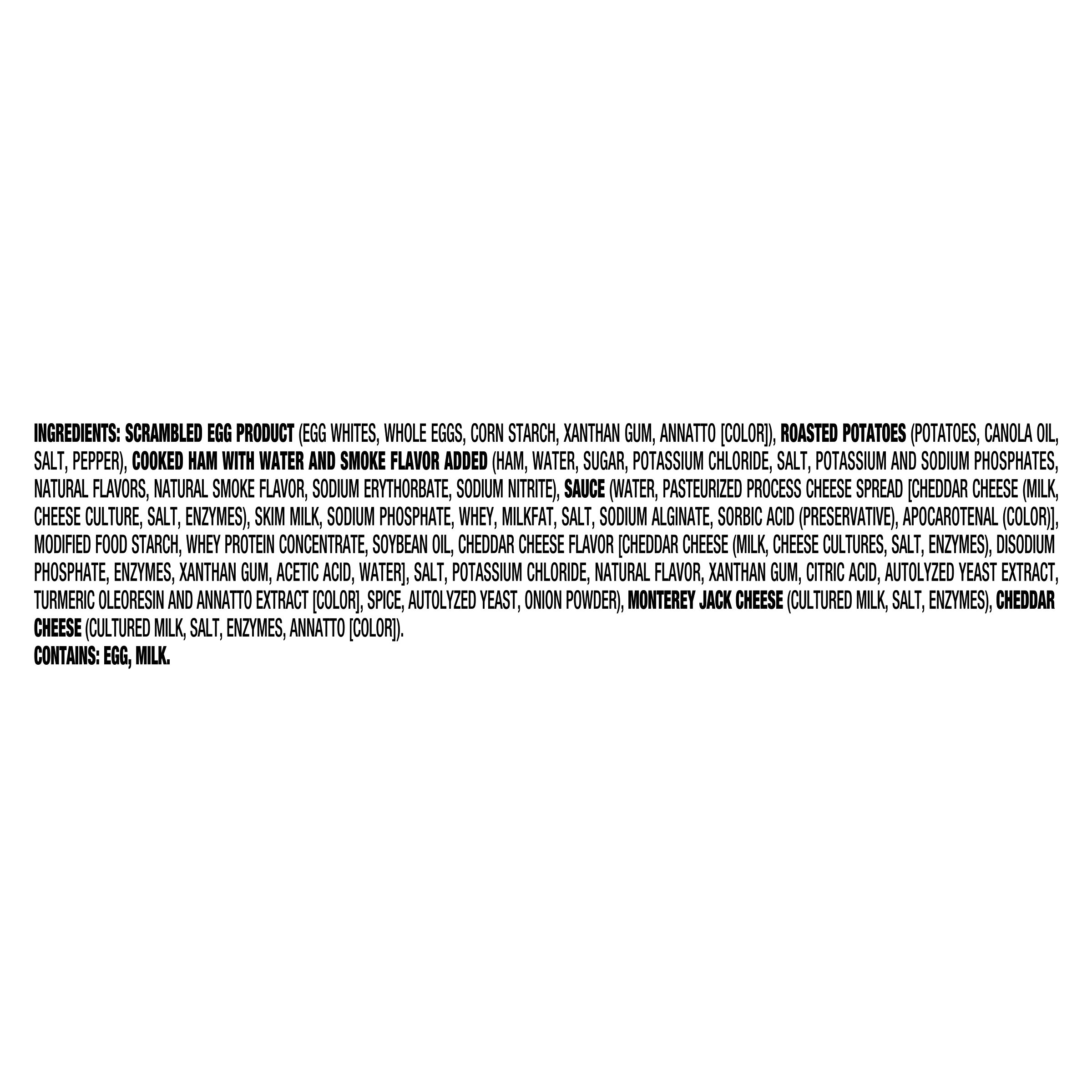- Our frozen breakfast features scrambled eggs and ham on a bed of Ore-Ida Roasted Potatoes topped with cheese