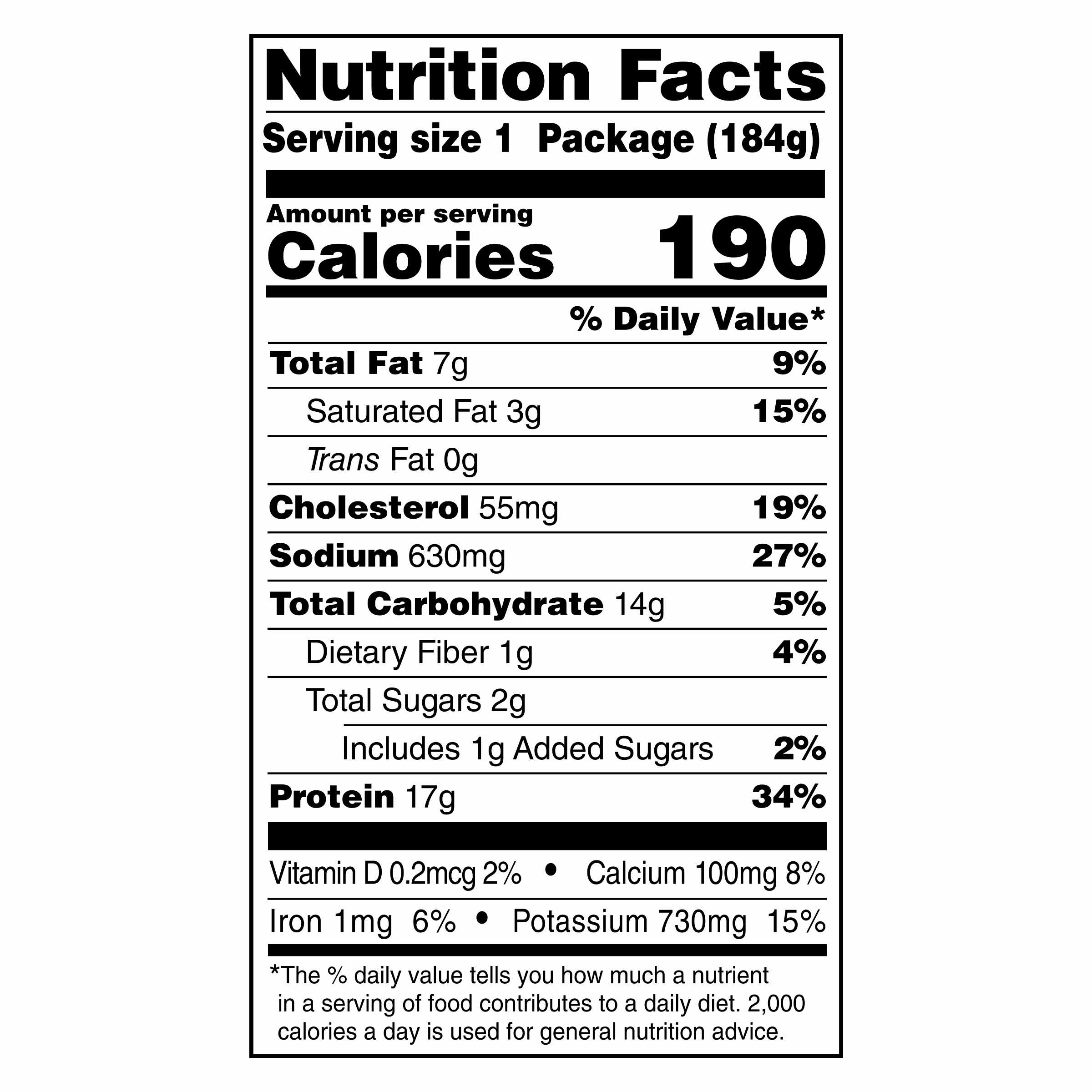- Each microwave meal contains 200 calories and 17 grams of protein per serving