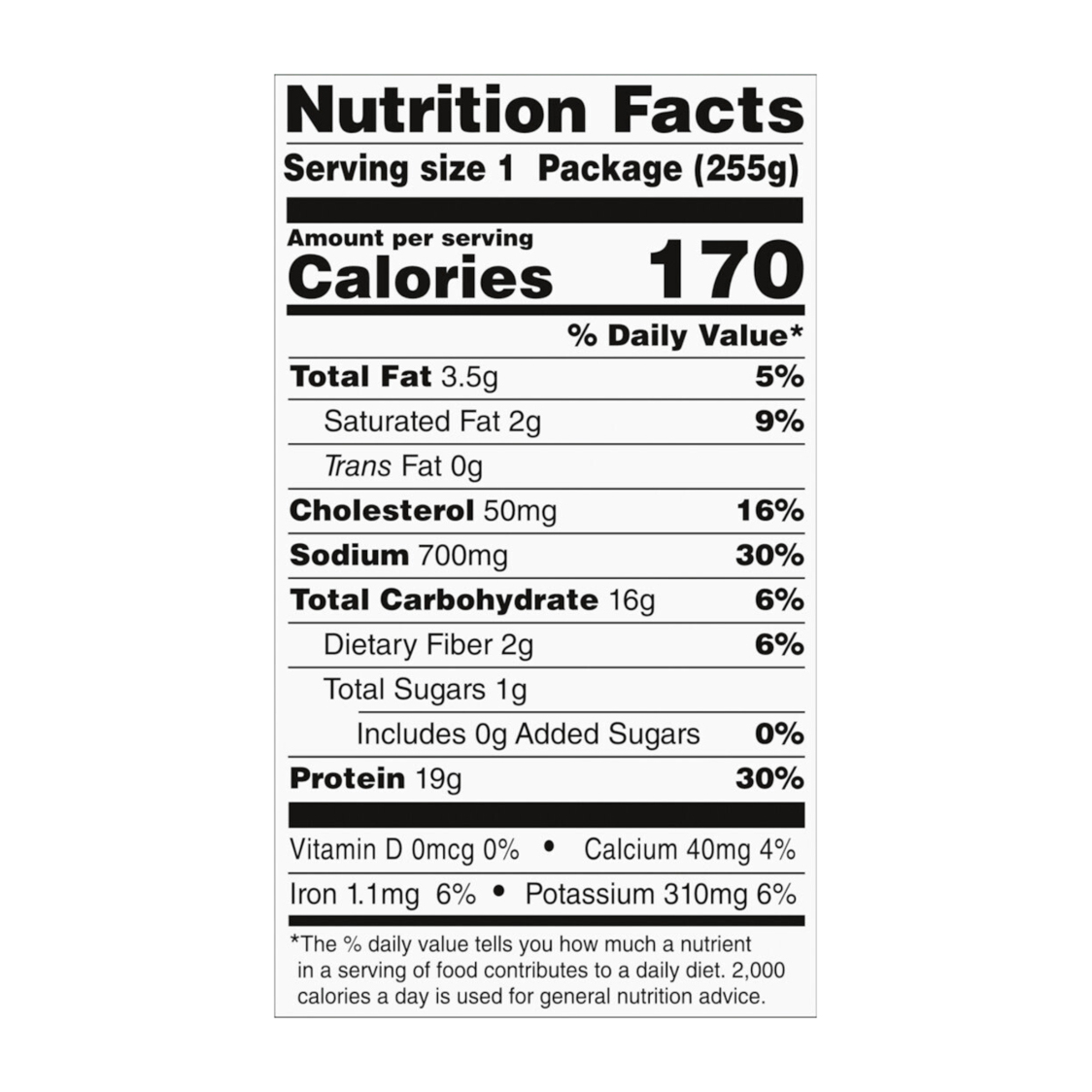 - Each microwave meal contains 170 calories and 19 grams of protein per serving
