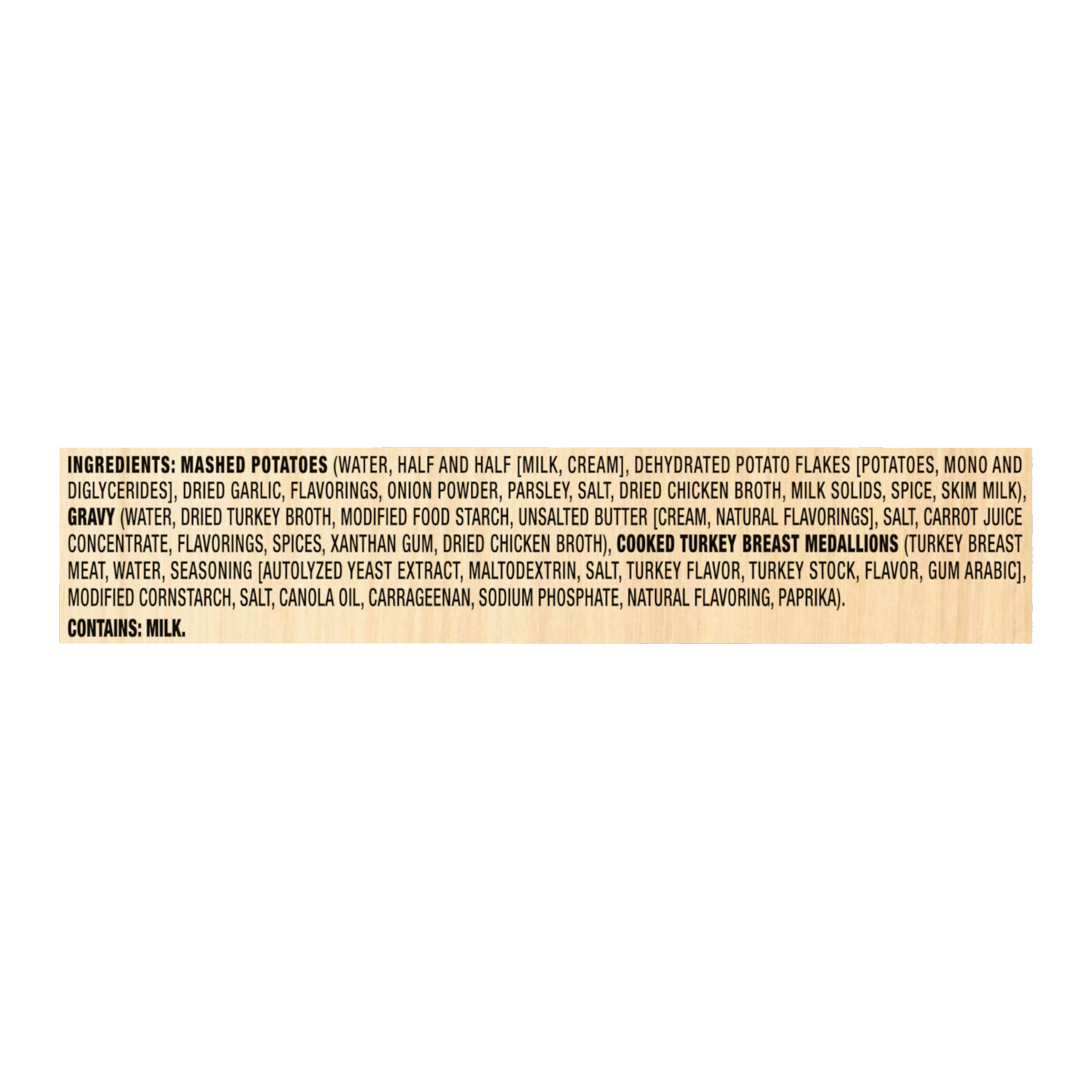 - Our frozen meal features slow roasted turkey breast with classic pan gravy and garlic-herb mashed potatoes