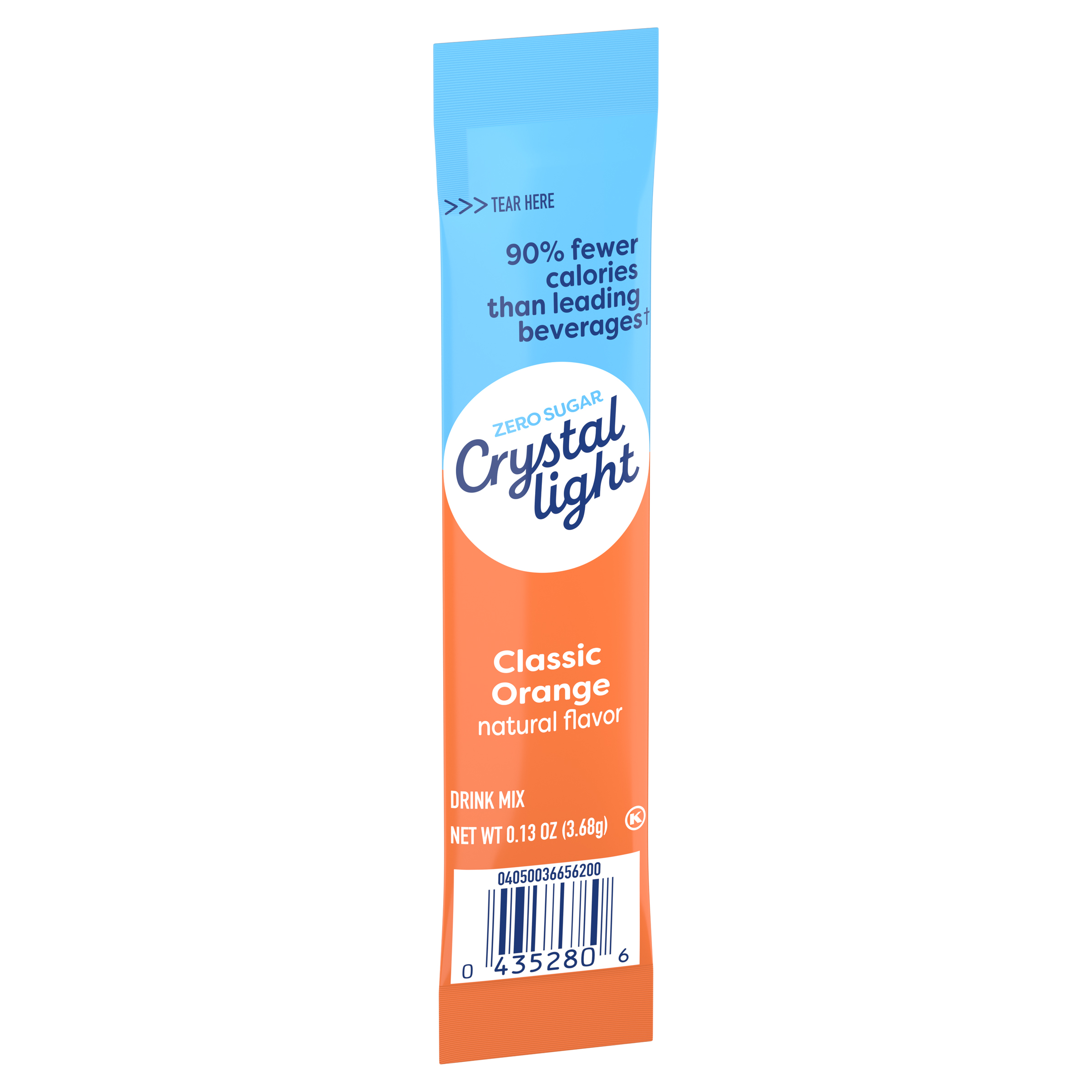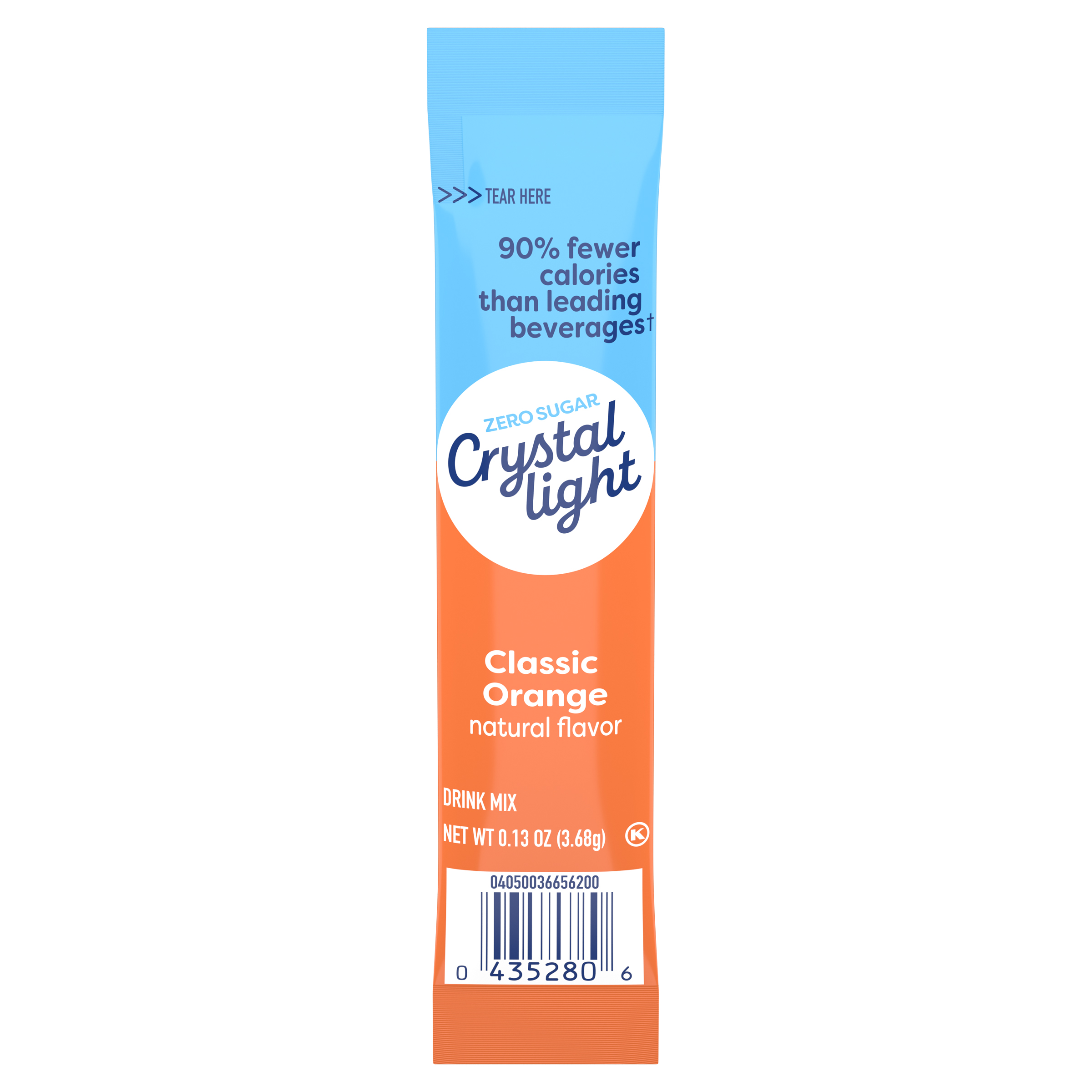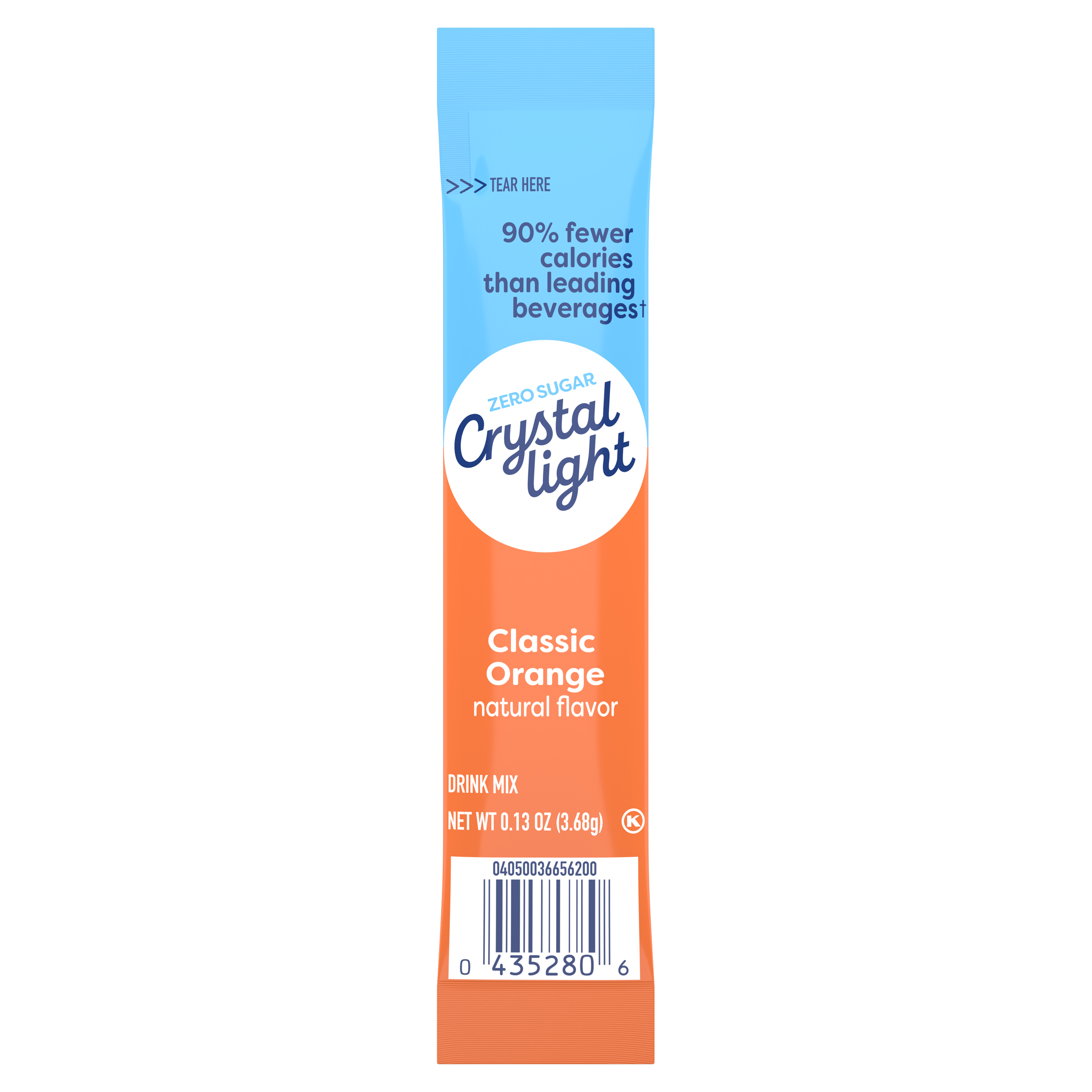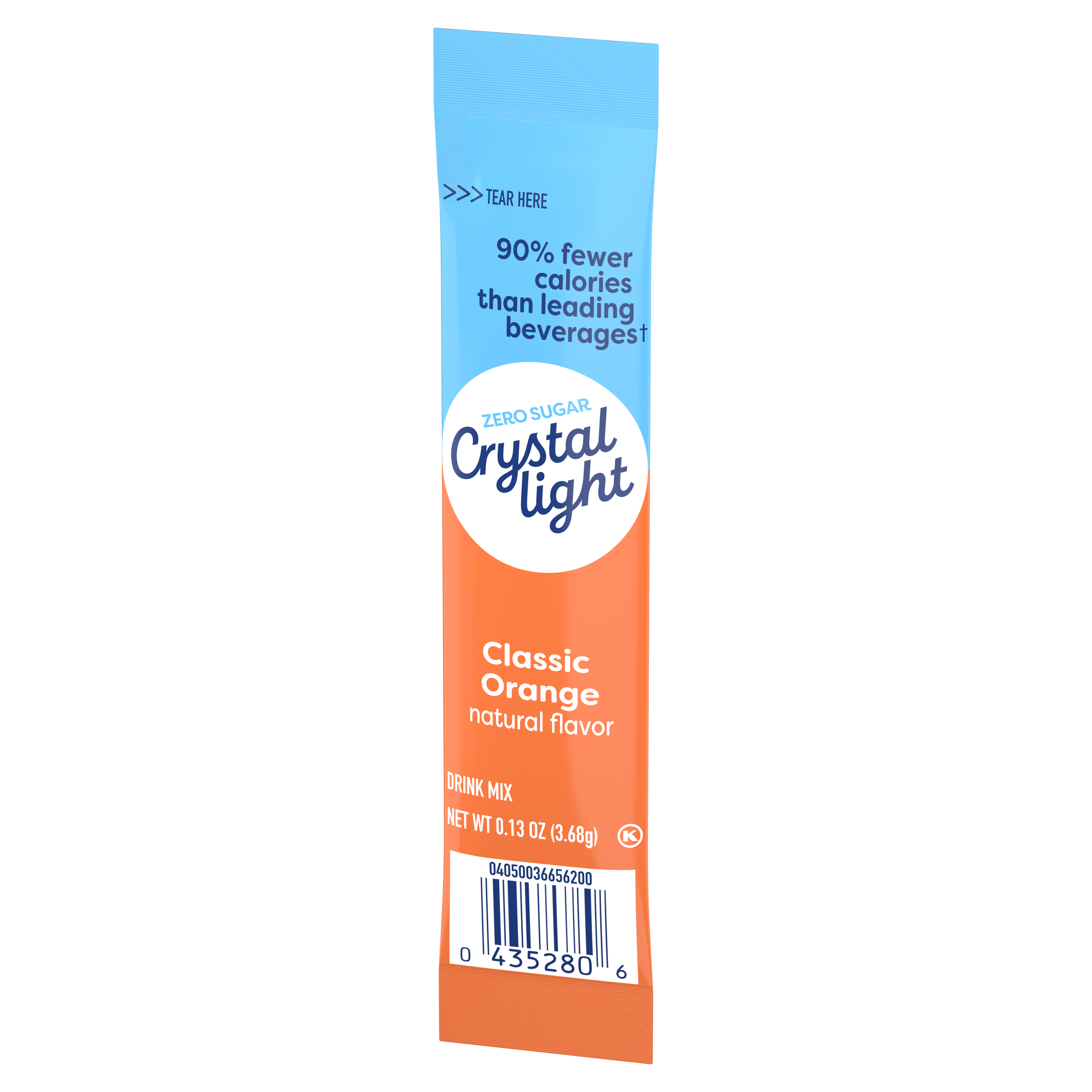 Product Description Crystal Light Classic Orange Natural Flavor On-the-Go Powdered Drink Mix is a light and refreshing beverage you can enjoy anytime and anywhere. With zero grams of sugar and only 5 calories per packet, Crystal Light is an ideal alternative to juice and soda and has 90% fewer calories than leading beverages (*This product 5 calories; leading beverages 130 calories), so you don't have to choose between taste and calories. Each single 0.13 ounce sugar free drink packet is individually sealed and conveniently pre-portioned for easy mixing without measuring. When you're ready to savor refreshing classic orange flavor, simply empty the packet contents into a bottle of water or a tall glass with 2 cups of water. Shake or stir, and enjoy! Our zero sugar drink mix delivers the great taste of classic orange for satisfying hydration at home or on the go. Keep our handy powdered drink mix singles within reach—in your handbag, pocket, car or work bag—to quench your thirst, no matter the activity or time of year. Just the way you like it with zero sugar and low calories. Crystal Light Classic Orange Natural Flavor On-the-Go Powered Drink Mix is always a great choice for the whole family. Packed with flavor, without the sugar.