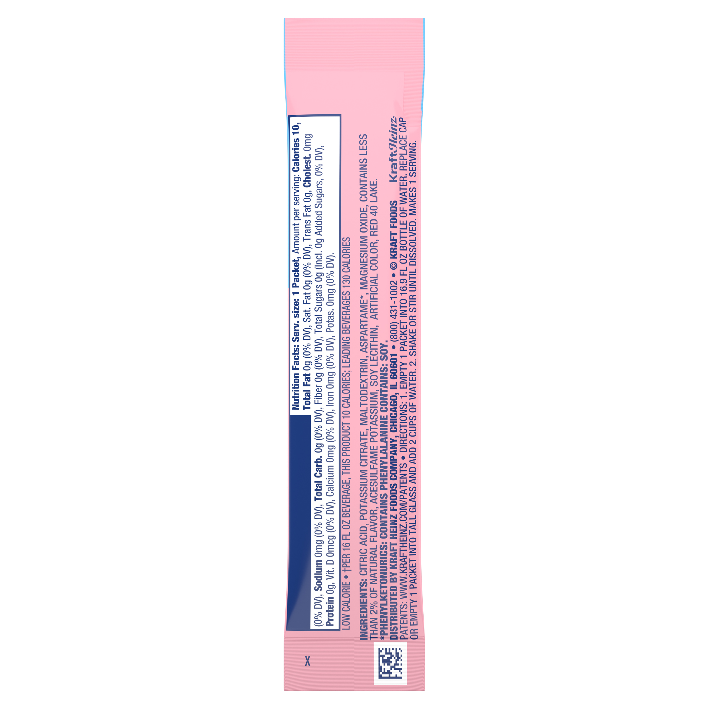 GTIN 00043000006818 Kraft Item Code (SKU) 00430000068170 Product Status Active Pack Level EACH Brand Name Crystal Light Business Unit Hydration Desserts & Meals Catalog Platform Hydration Product Category Total Powdered Beverages Packaging Type (Computed) Pack Packaging Type Code WRAPPER Sub Units Per Item 1 Global Product Classification Drinks Flavoured - Not Ready to Drink Global Product Classification Code 10000202 Computed Exports - Ingredients CITRIC ACID, POTASSIUM CITRATE, MALTODEXTRIN, ASPARTAME*, MAGNESIUM OXIDE, CONTAINS LESS THAN 2% OF NATURAL FLAVOR, ACESULFAME POTASSIUM, SOY LECITHIN, ARTIFICIAL COLOR, RED 40 LAKE. * PHENYLKETONURICS: CONTAINS PHENYLALANINE Parent Reference 00043000028865 Customer Guarantee 180 Temperature Classification Ambient Prevailing Conditions Temperature Classification Code 01 Parent Relation PACK/INNER PACK_00043000028865 Parent Kraft Item Code (SKU) 00430000288670 Product Title Crystal Light Pink Lemonade Powdered Drink Mix. .13 oz Packet eCommerce Product Name (Generic Name) On-The-Go Sugar-Free Pink Lemonade Drink Mix Product Benefits (Includes Seasonal + Formatting) - One 0.13 oz packet of Crystal Light Pink Lemonade Powdered Drink Mix