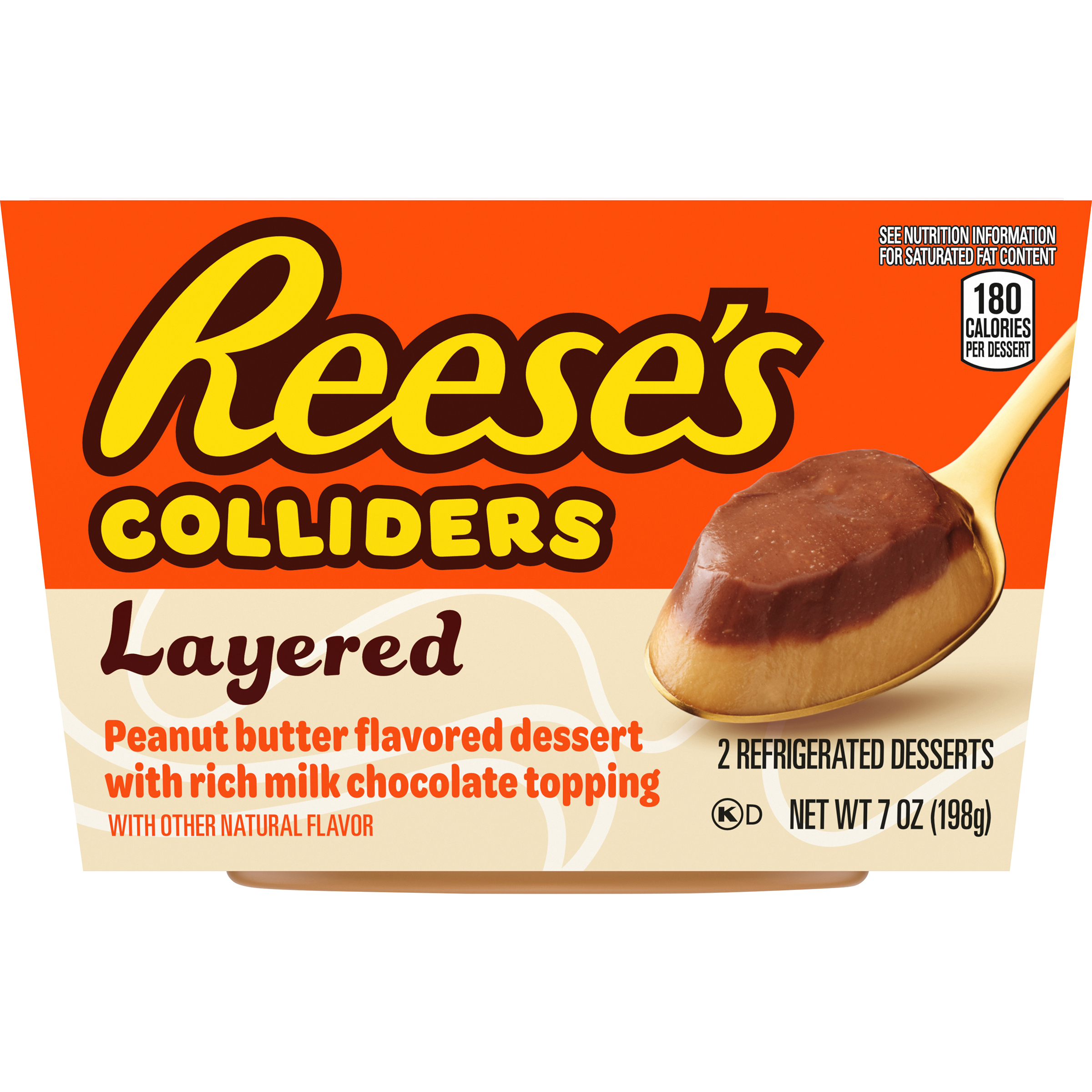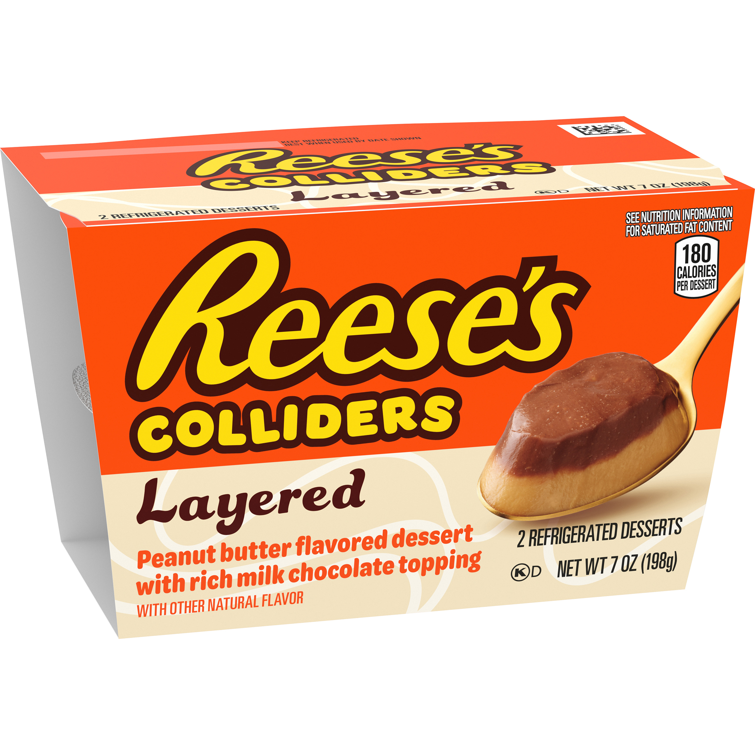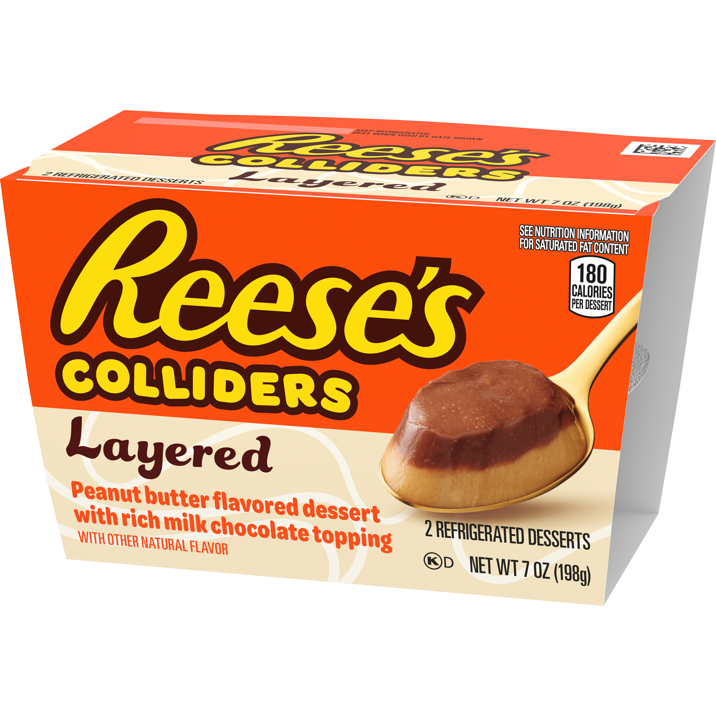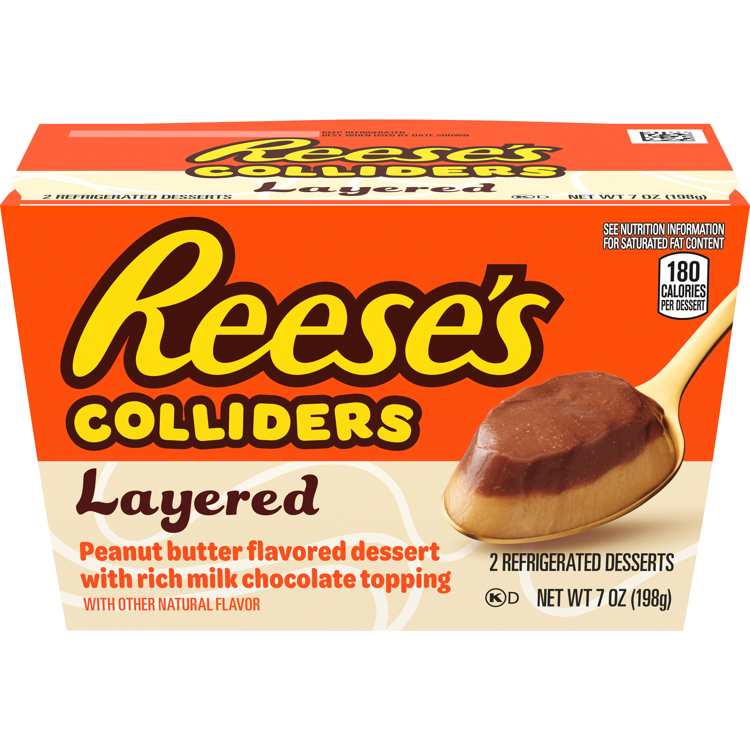 Product Description COLLIDERS™ Layered REESE'S Refrigerated Dessert takes your favorite REESE'S candy flavor and turns it into a cool, creamy spoonable dessert. Enjoy our peanut butter flavored dessert with a layer of rich milk chocolate topping in seconds. Just open the peanut butter dessert with rich milk chocolate topping, and enjoy. Made with real cream and sugar. Dig into a collision of flavors and textures all in one delicious dessert. Perfect as both a daytime sweet treat or after dinner dessert. Each of the two COLLIDERS™ Layered REESE'S desserts come in a convenient single-serve cup for easy enjoyment anywhere.