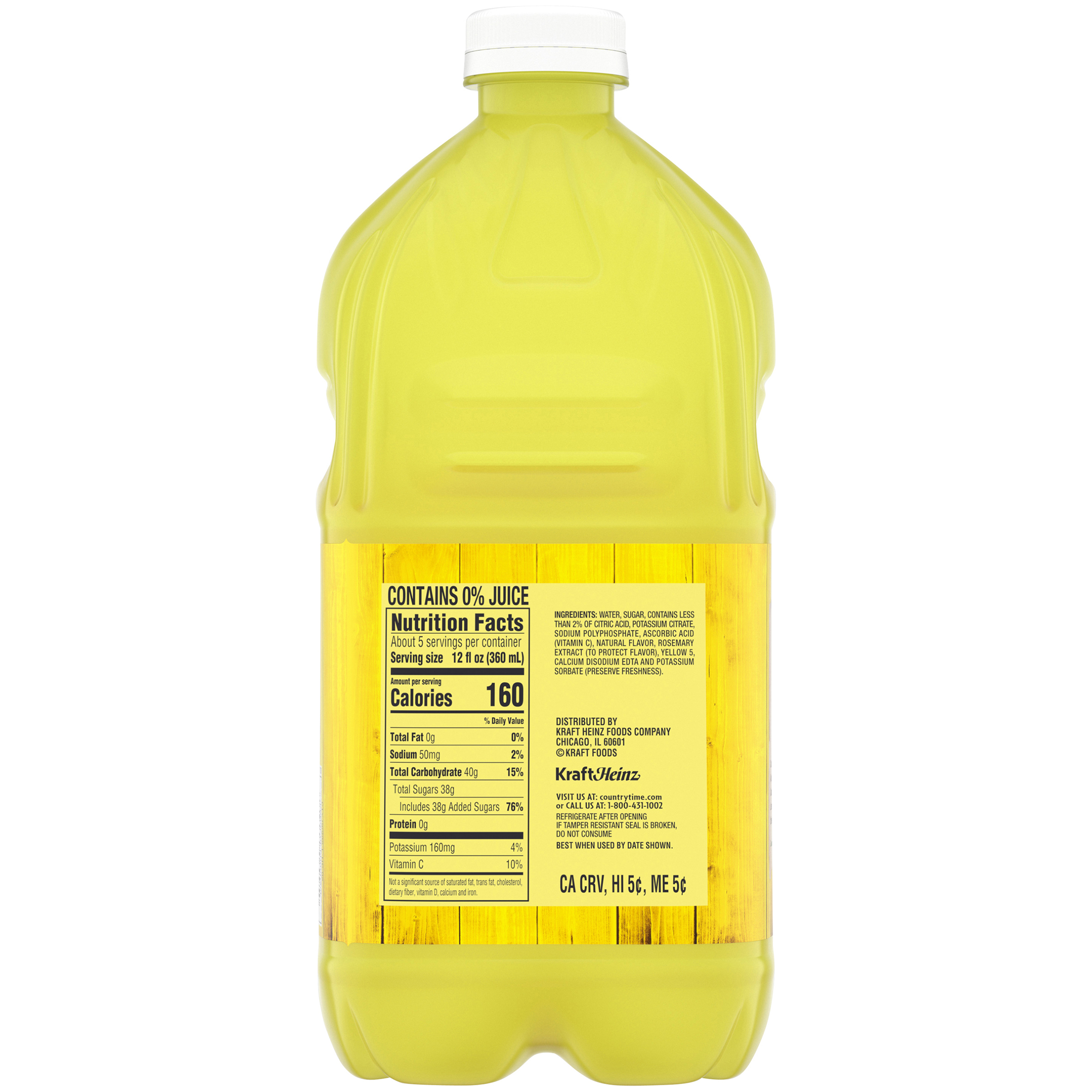Product Description When life gets busy, a cool sip of something sweet can turn it all around. Country Time Lemonade is that simple little treat that brings everyone back to the moment. It combines the great taste of summer with old-fashioned yellow lemonade for an iconic refreshment that turns any sip into a smile. Made with real sugar and no artificial sweeteners, our drink delivers simple, feel-good flavor everyone can enjoy. It's perfect for kids who crave something sweet and for parents who want a drink that tastes like a little win in the middle of a busy day. Chill it, pour it, and enjoy a taste that's as refreshing as it is familiar. Each 64 fl oz bottled drink has plenty to share, whether you're pouring glasses for family dinners, packing for a picnic, or cooling off after a long day. You can serve it over ice, mix it into a mocktail, or fill smaller bottles for grab-and-go fun. It's more than a drink; it's the taste of family time. Whether you're sharing a laugh at dinner or winding down after a long day, Country Time Lemonade brings everyone together. It's a simple pleasure that feels special every time you pour a glass.