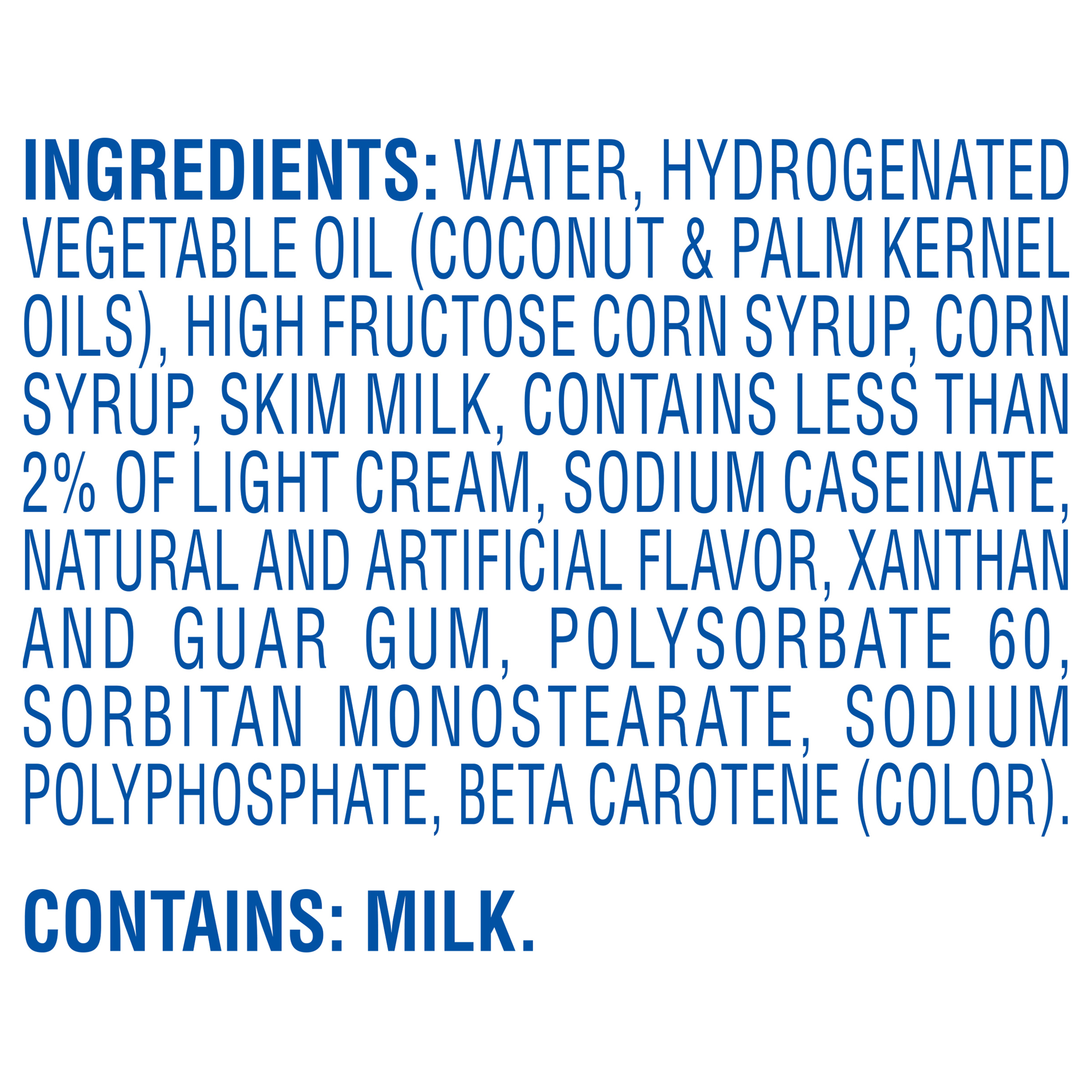 GTIN 00043000079232 Kraft Item Code (SKU) 00430000792370 Product Status Active Pack Level INNER PACK Brand Name Cool Whip Business Unit Hydration Desserts & Meals Catalog Platform Desserts Product Category Dessert Toppings Consumer Unit Size 32 Consumer Unit Size UOM OZ Packaging Type (Computed) Pack Packaging Type Code SHRINK WRAPPED Packaging Type Code Override (Manual) PACK Sub Units Per Item 4 Lowest Level Side Override (Manual) 8 oz Tubs Variant Original Global Product Classification Dessert Sauces/Toppings/Fillings (Frozen) Global Product Classification Code 10000196 Computed Exports - Ingredients WATER, CORN SYRUP, HIGH FRUCTOSE CORN SYRUP, HYDROGENATED VEGETABLE OIL (COCONUT AND PALM KERNEL OILS), SKIM MILK, CONTAINS LESS THAN 2% OF LIGHT CREAM, SODIUM CASEINATE (FROM MILK), NATURAL AND ARTIFICIAL FLAVOR, XANTHAN AND GUAR GUMS, MODIFIED FOOD STARCH, POLYSORBATE 60, SORBITAN MONOSTEARATE, SODIUM POLYPHOSPHATE, BETA CAROTENE (COLOR). Parent Reference 10043000079239 Child Reference 00043000009536 Customer Guarantee 180 Temperature Classification Frozen Storage -30 to -18 °C / -22 to 0 °F Temperature Classification Code 08 Net Weight 2 Gross Weight 2.253 Weight UOM LB Height (in) 5.4 Length/Depth (in) 12.688 Width (in) 5.75 Case Cube 0.228 Child Relation EACH_00043000009536 Parent Relation CASE_10043000079239 Parent Kraft Item Code (SKU) 00430000792300 Product Title Cool Whip Original Whipped Topping, 4 ct Pack, 8 oz Tubs eCommerce Product Name (Generic Name) Original Whipped Topping Product Benefits (Includes Seasonal + Formatting) - Four 8 oz tubs of Cool Whip Original Whipped Topping