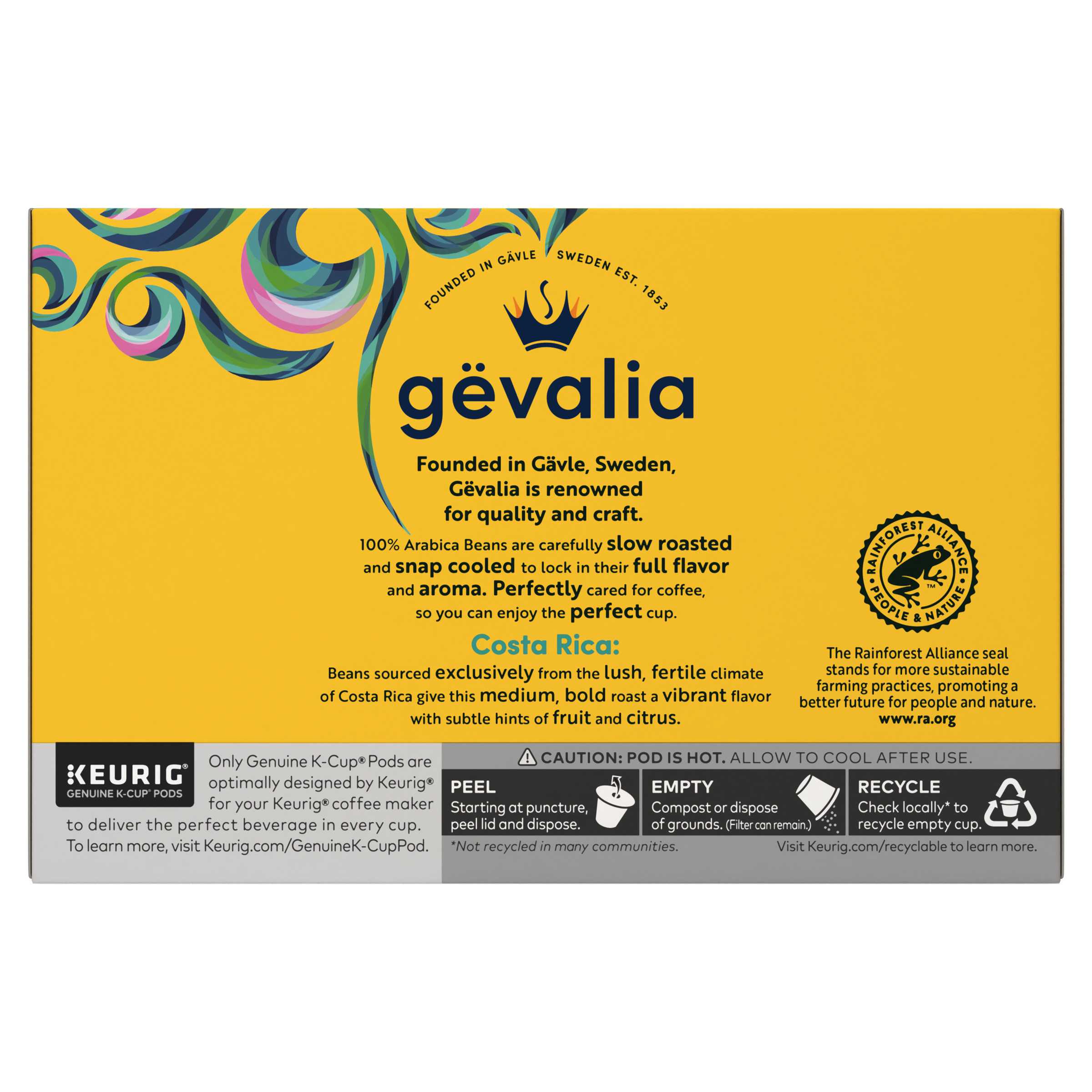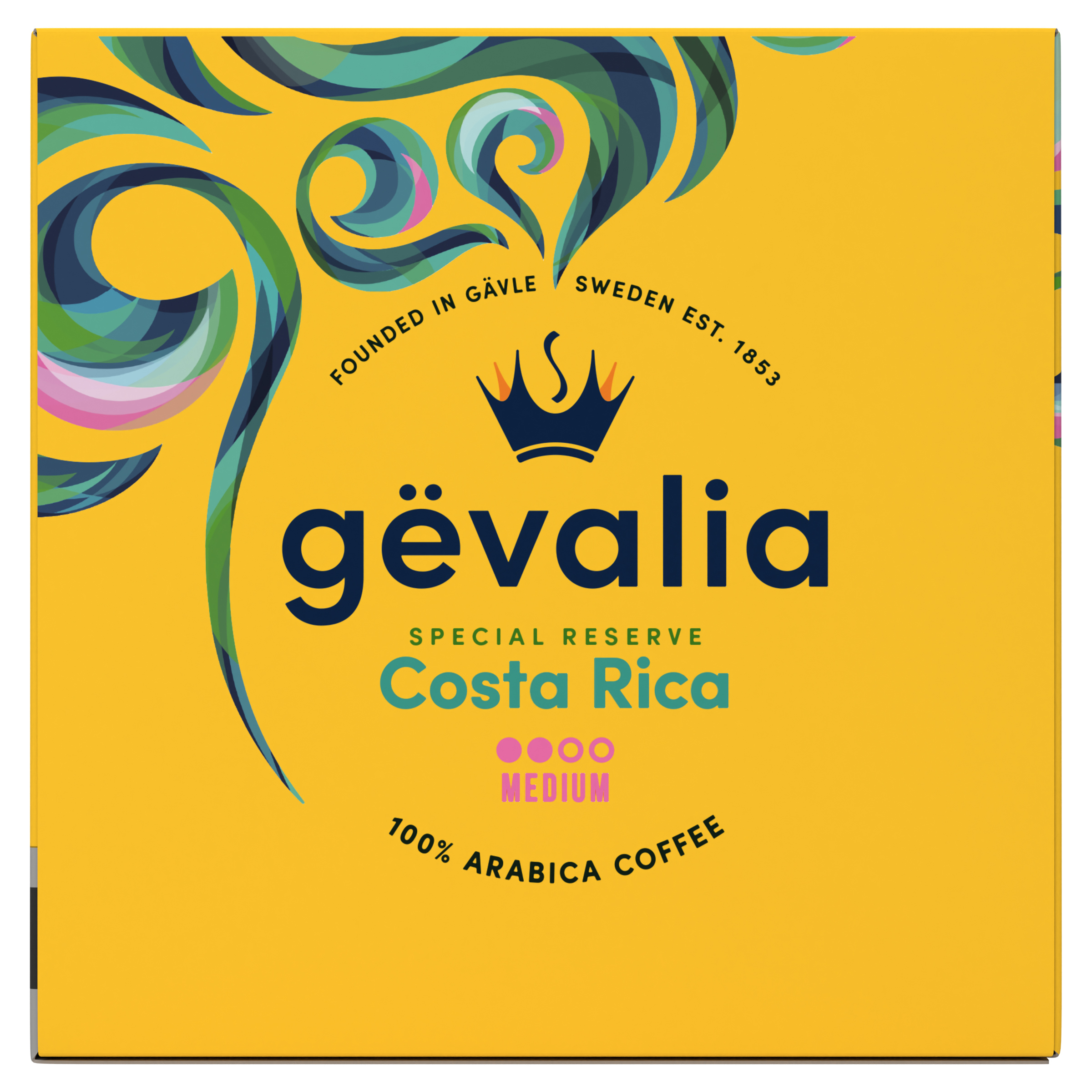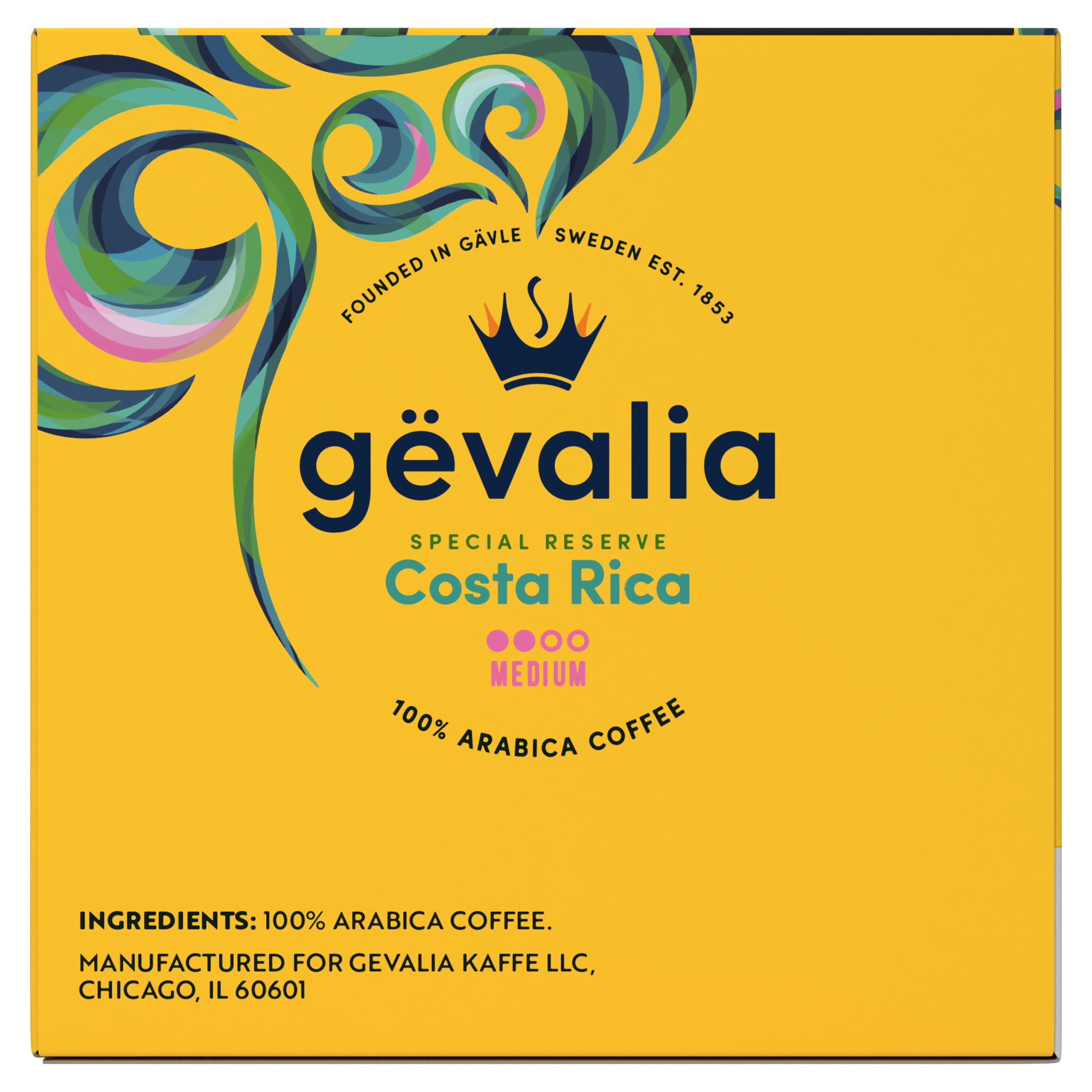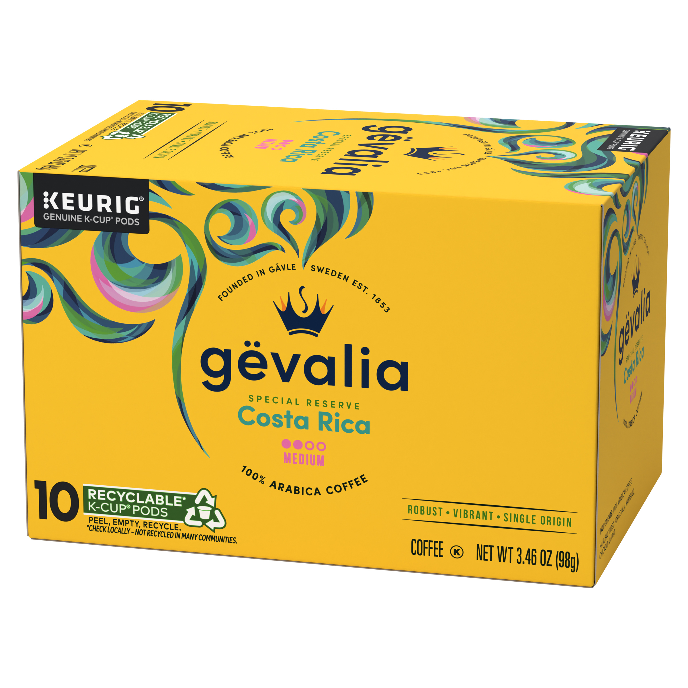 - Each box of Gevalia Costa Rica Single Origin Special Reserve K Cup Coffee Pods delivers medium-dark roast coffee to your home