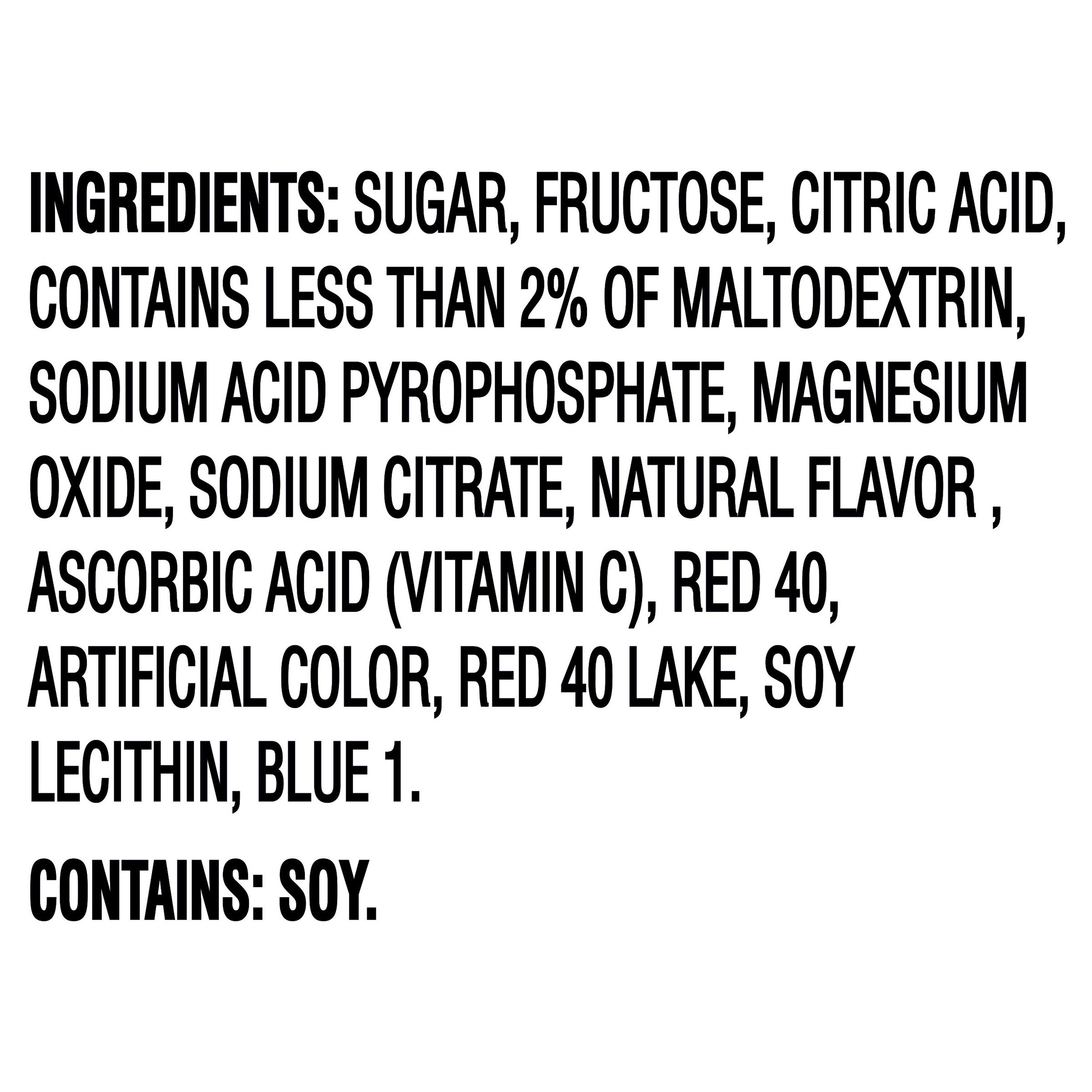 GTIN 00043000095270 Kraft Item Code (SKU) 00430000952770 Product Status Active Pack Level EACH Brand Name Country Time Business Unit Hydration Desserts & Meals Catalog Platform Hydration Product Category Total Powdered Beverages Consumer Unit Size 18.3 Consumer Unit Size UOM OZ Packaging Type (Computed) Jar Packaging Type Code JAR Packaging Type Code Override (Manual) JAR Sub Units Per Item 1 Variant Cherry Lemonade Global Product Classification Code 10000202 Computed Exports - Ingredients SUGAR, FRUCTOSE, CITRIC ACID, CONTAINS LESS THAN 2% OF MALTODEXTRIN, SODIUM ACID PYROPHOSPHATE, MAGNESIUM OXIDE, SODIUM CITRATE, NATURAL FLAVOR , ASCORBIC ACID (VITAMIN C), RED 40, ARTIFICIAL COLOR, RED 40 LAKE, SOY LECITHIN, BLUE 1. Parent Reference 10043000095277 Quality Statement Please Refer To Code Numbers Stamped On Canister With All Contacts Storage Instructions Store Prepared Beverage, Covered, In Refrigerator | Replace DRY cap and tightly close cannister to retain freshness. Customer Guarantee 180 Temperature Classification Code 01 Net Weight 1.144 Gross Weight 1.274 Weight UOM LB Height (in) 5.165 Length/Depth (in) 3.8 Width (in) 3.8 Case Cube 0.043 Parent Relation CASE_10043000095277 Parent Kraft Item Code (SKU) 00430000952700 Product Title Country Time Cherry Lemonade Powdered Drink Mix, 1 Canister, for Shareable Refreshment, Naturally Flavored with Other Natural Flavor, No Artificial Sweeteners or Flavors, 18.3 oz eCommerce Product Name (Generic Name) Cherry Lemonade Drink Mix Product Benefits (Includes Seasonal + Formatting) - CHERRY LEMONADE DRINK MIX: One 18.3 oz canister of Country Time Cherry Lemonade Naturally Flavored with Other Natural Flavor Powdered Drink Mix