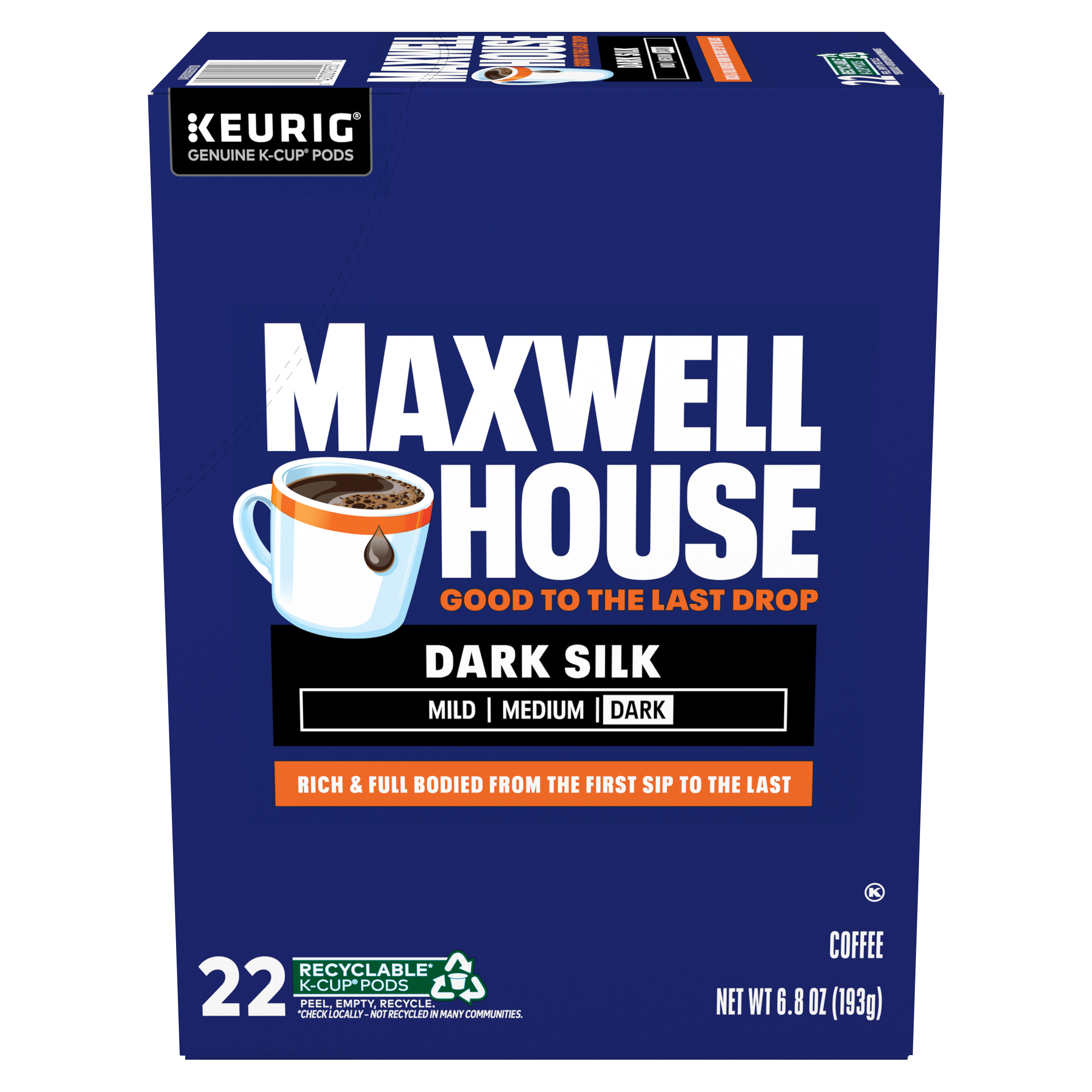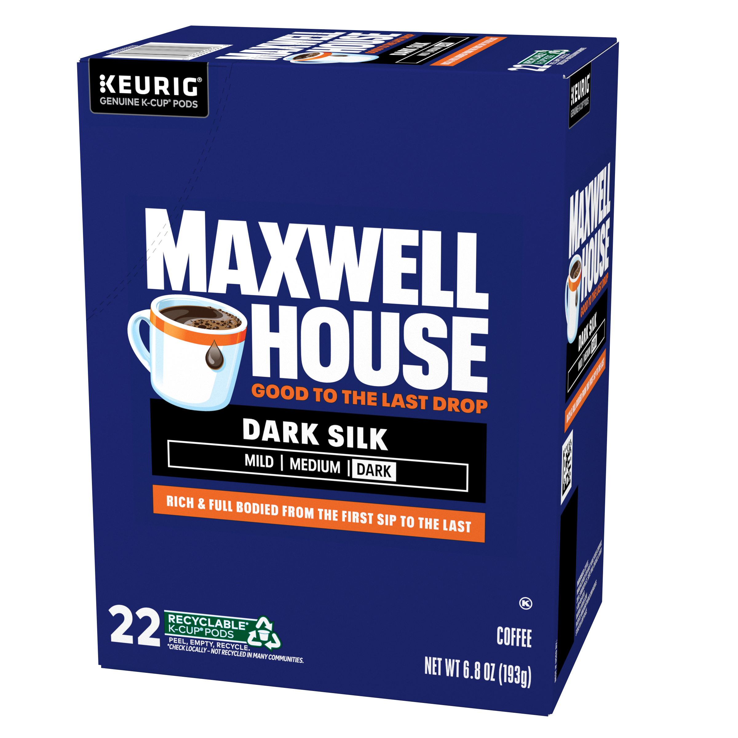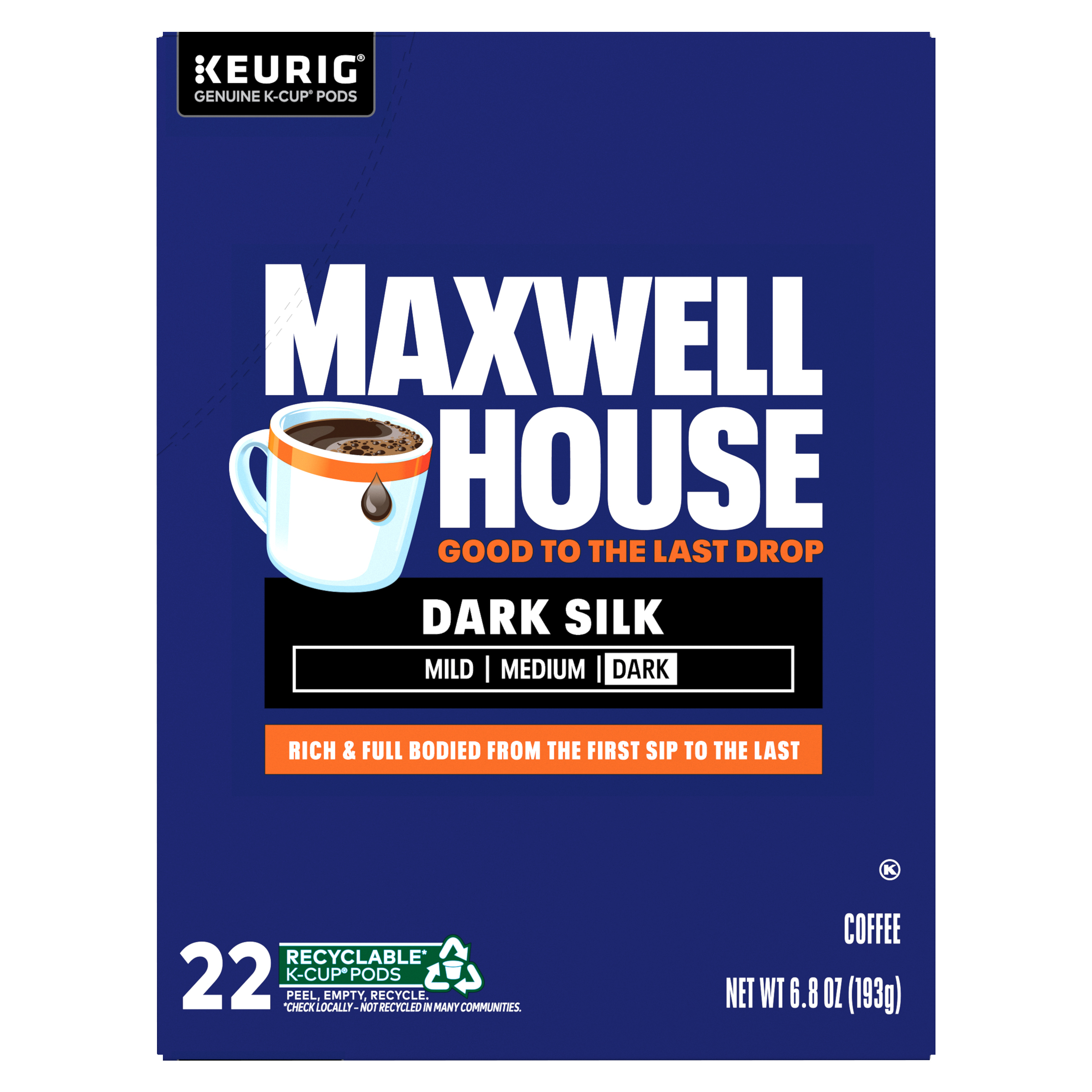 Maxwell House Dark Silk Dark Roast Keurig K-Cup Coffee Pods, 22 ct. Box