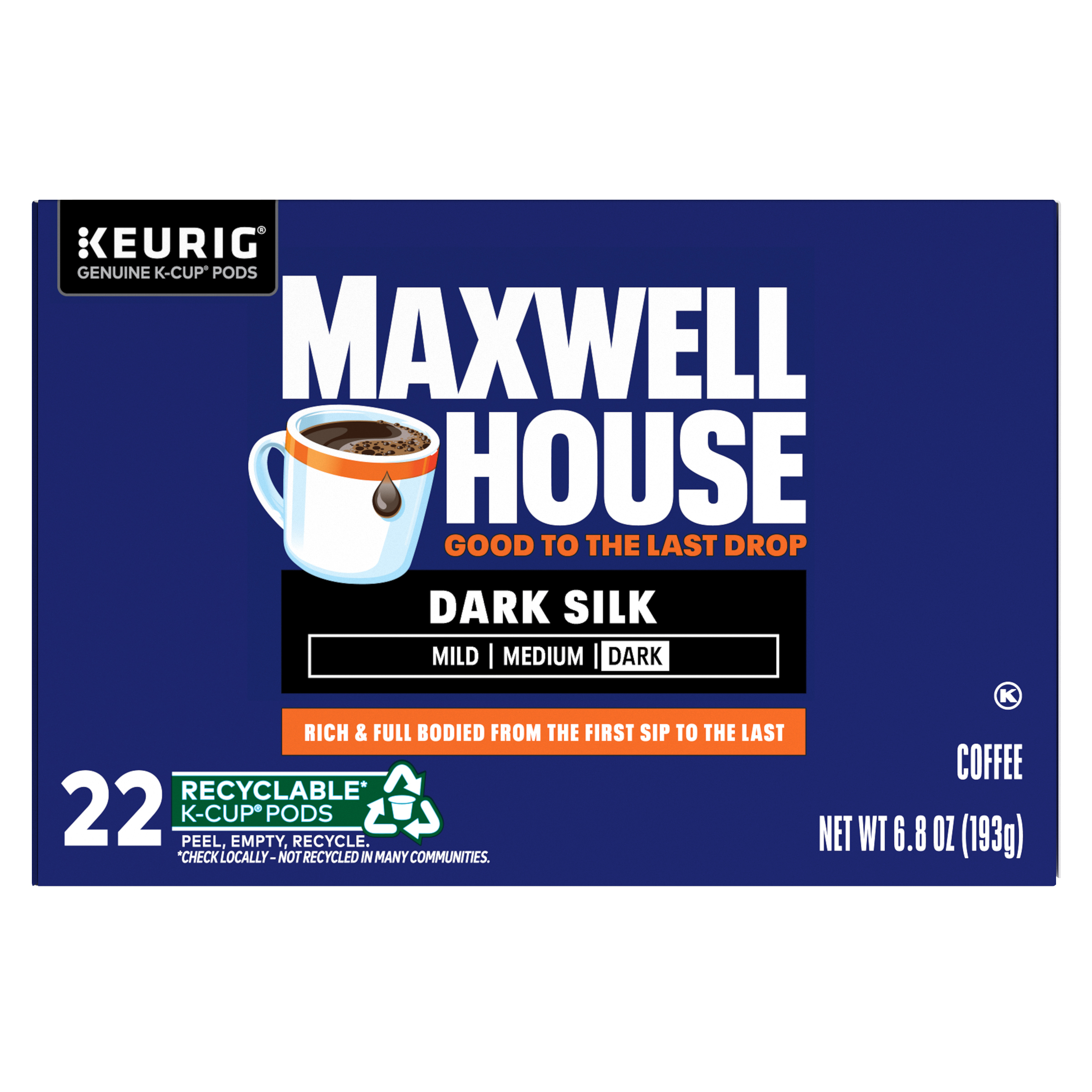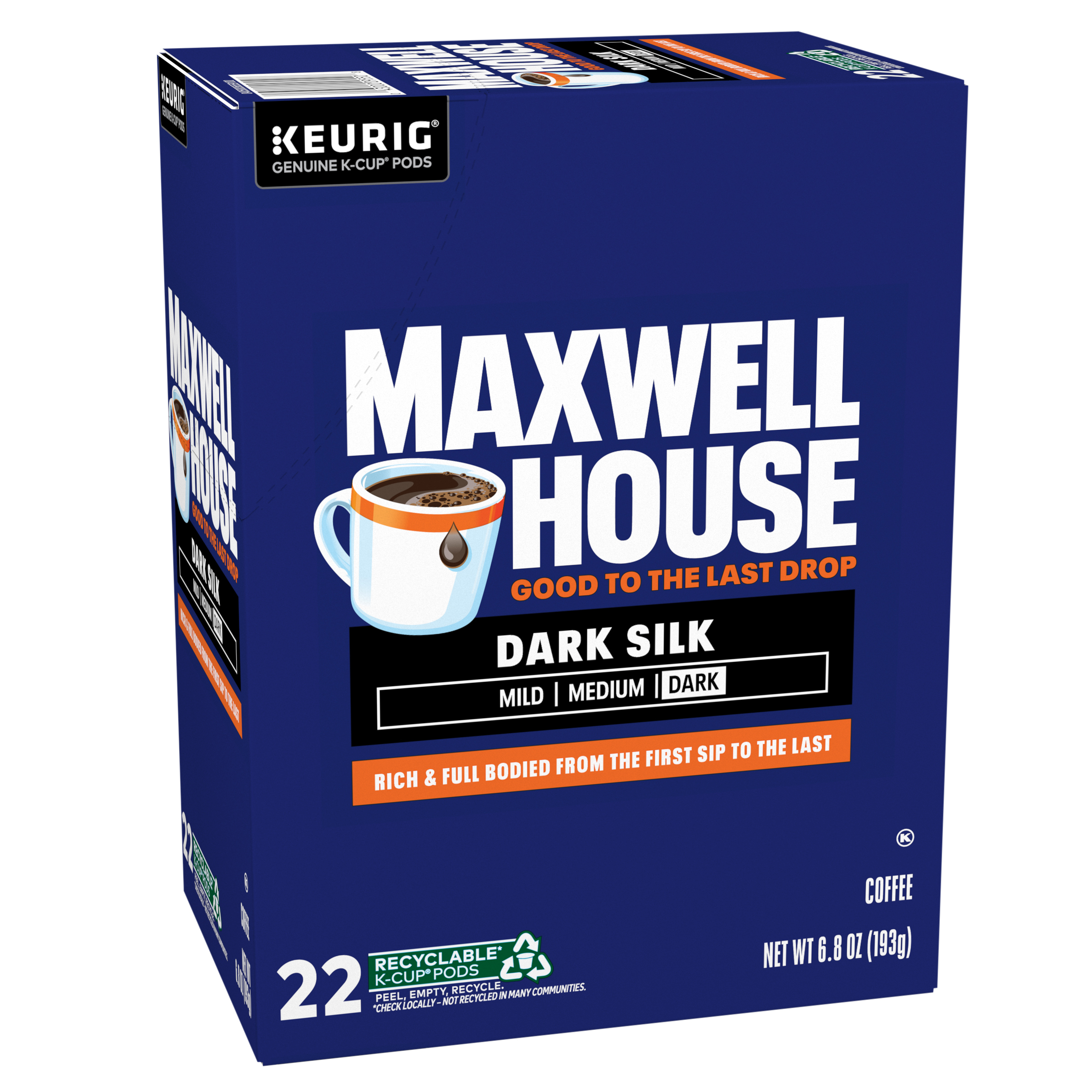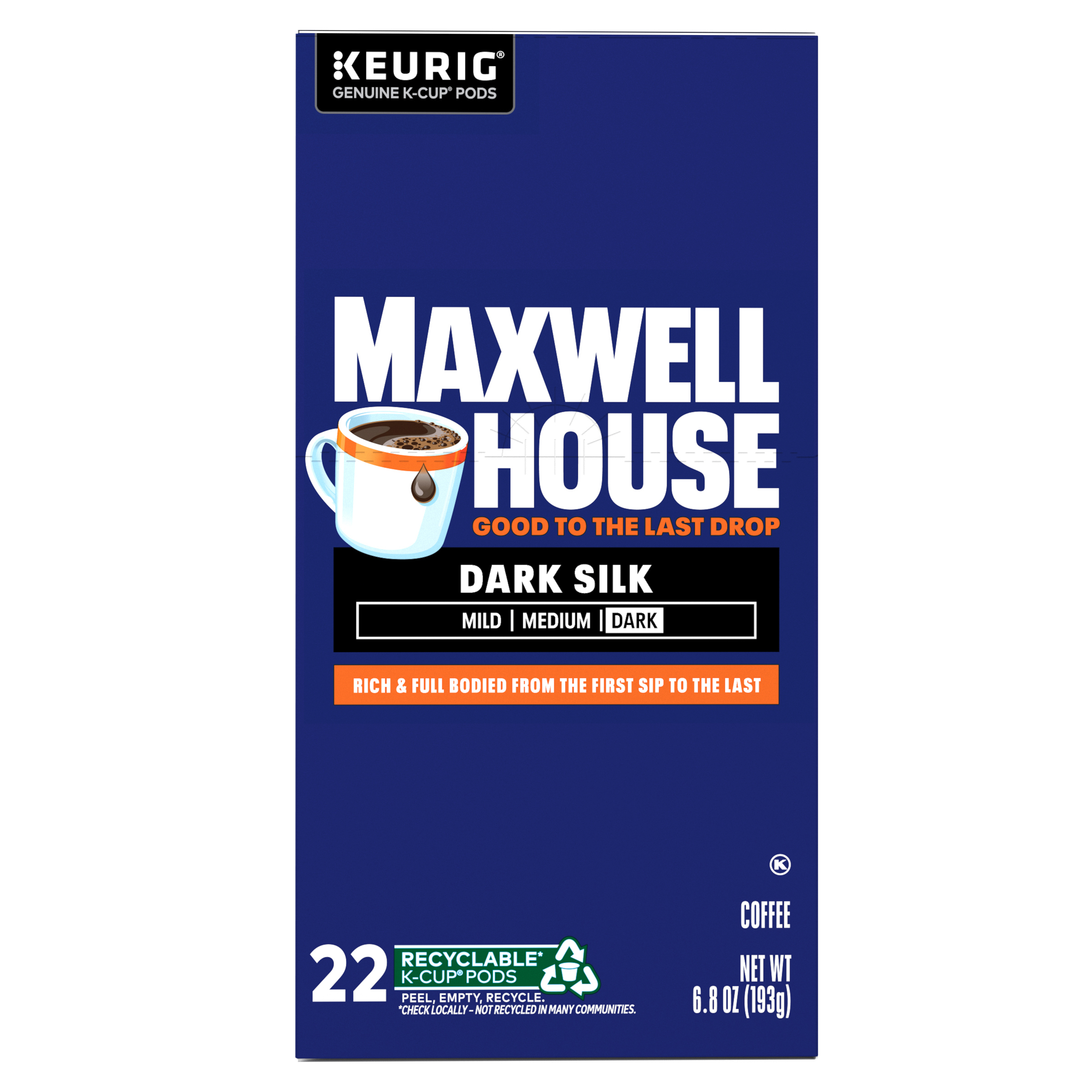 Maxwell House Dark Silk Dark Roast Keurig K-Cup Coffee Pods, 22 ct. Box