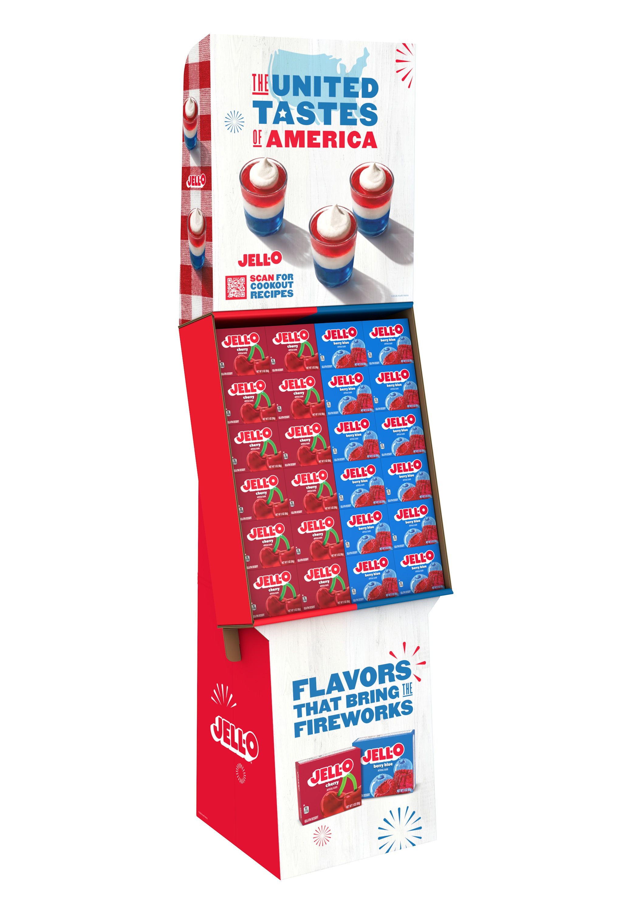Parent Relation PALLET_20043000095885 Cases per Tier 6 Tiers per Pallet 6 Cases per Pallet 36 Pallet Stack Limit 2 Product Title 3Z JELL-O RED-BLUE SHPR 96CT eCommerce Product Name (Generic Name) Cherry Gelatin Dessert Mix Product Benefits (Includes Seasonal + Formatting) - One 3 oz box of Jell-O Cherry Artificially Flavored Gelatin Dessert Mix