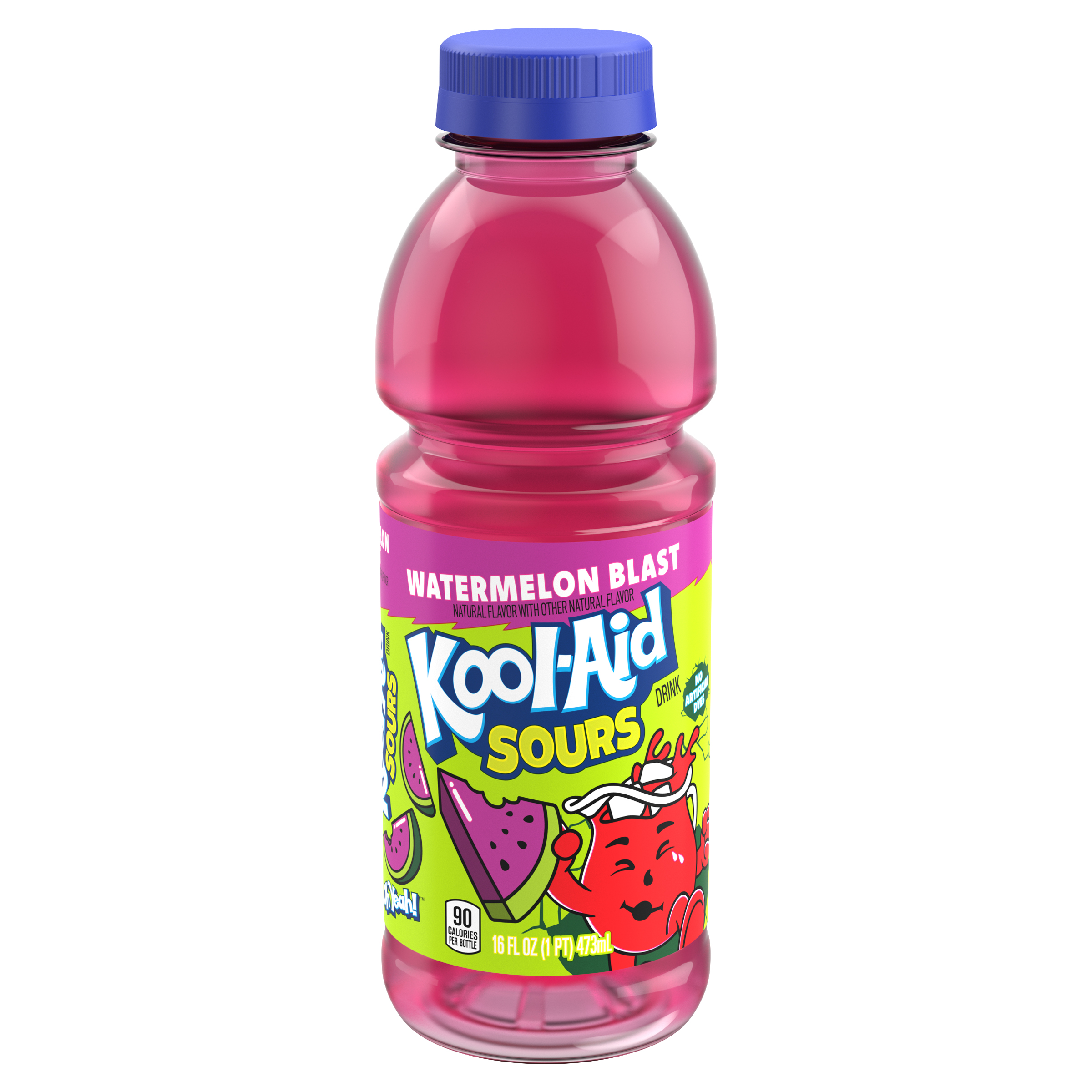 - ZINGY, IRRESISTIBLY TART FLAVOR: Kool-Aid Sours Watermelon Blast is free of artificial dyes and contains 90 calories per bottle
