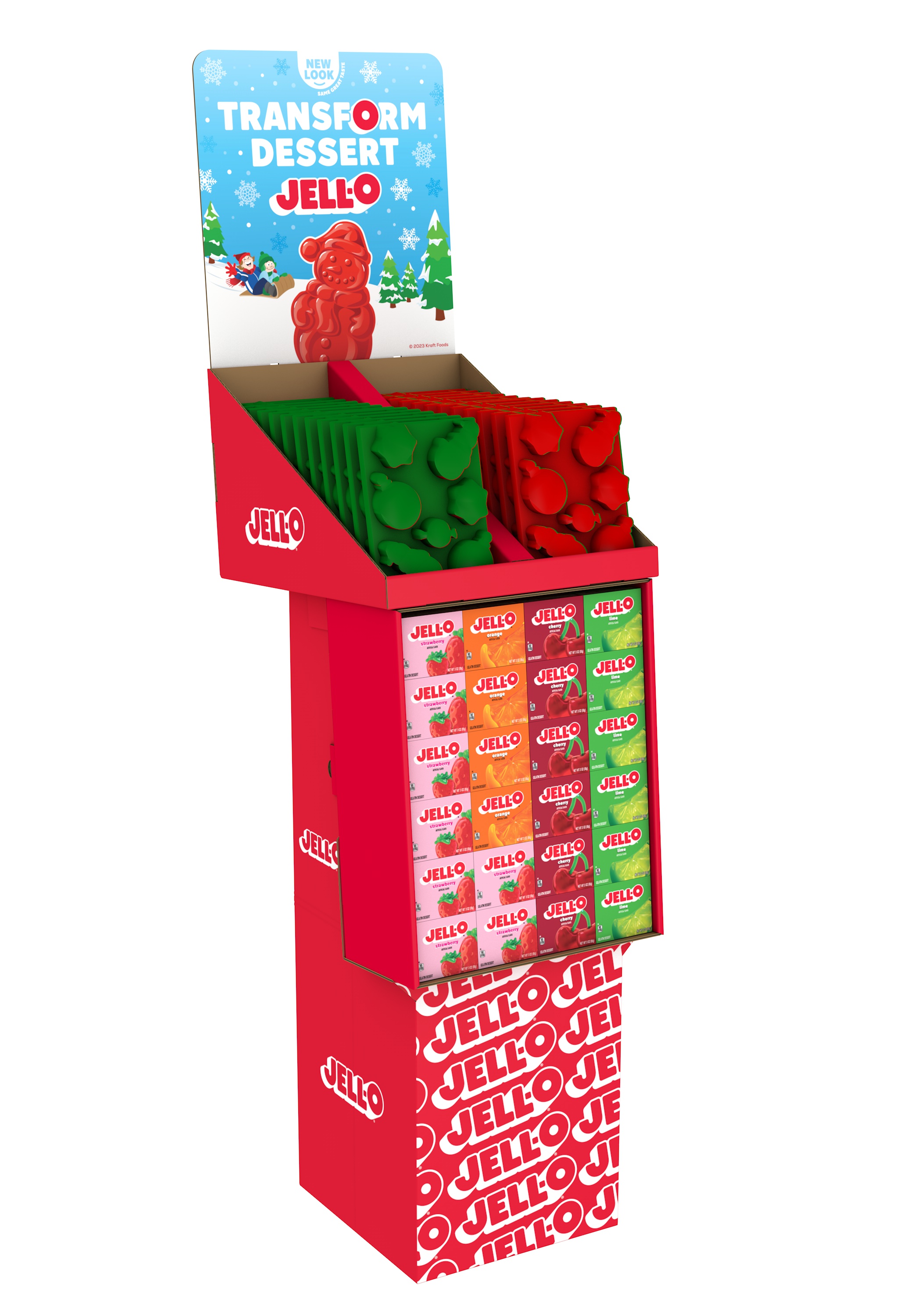 Parent Relation PALLET_20043000204690 Cases per Tier 6 Tiers per Pallet 2 Cases per Pallet 12 Pallet Stack Limit 2 Product Title SHP 3Z JOG HOLIDAY MOLD eCommerce Product Name (Generic Name) Strawberry Gelatin Dessert Mix Product Benefits (Includes Seasonal + Formatting) - One 3 oz box of Jell-O Strawberry Artificially Flavored Gelatin Dessert Mix