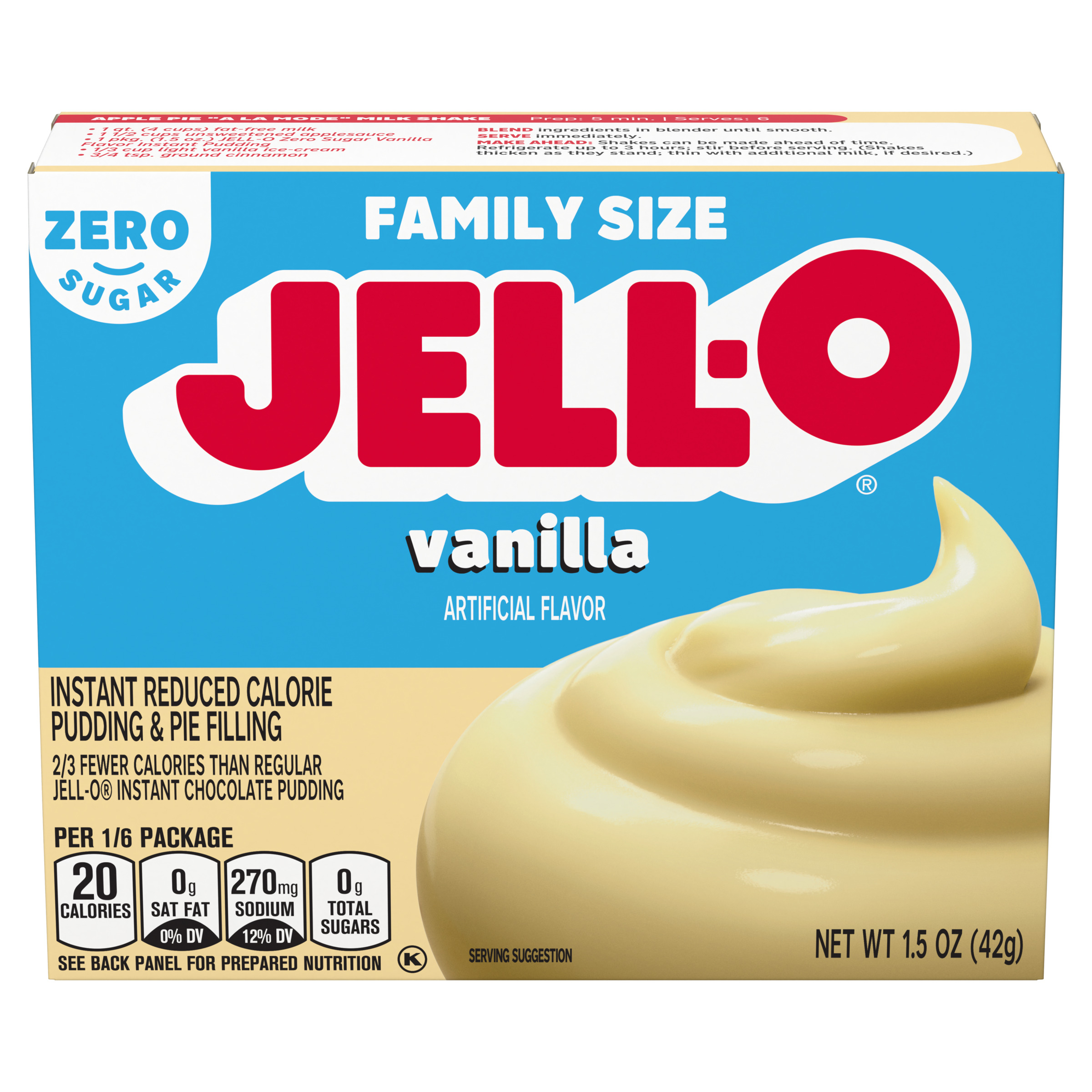 Jell-O Vanilla Zero Sugar Instant Reduced Calorie Pudding & Pie Filling Mix, Family Size, 1.5 oz Box
