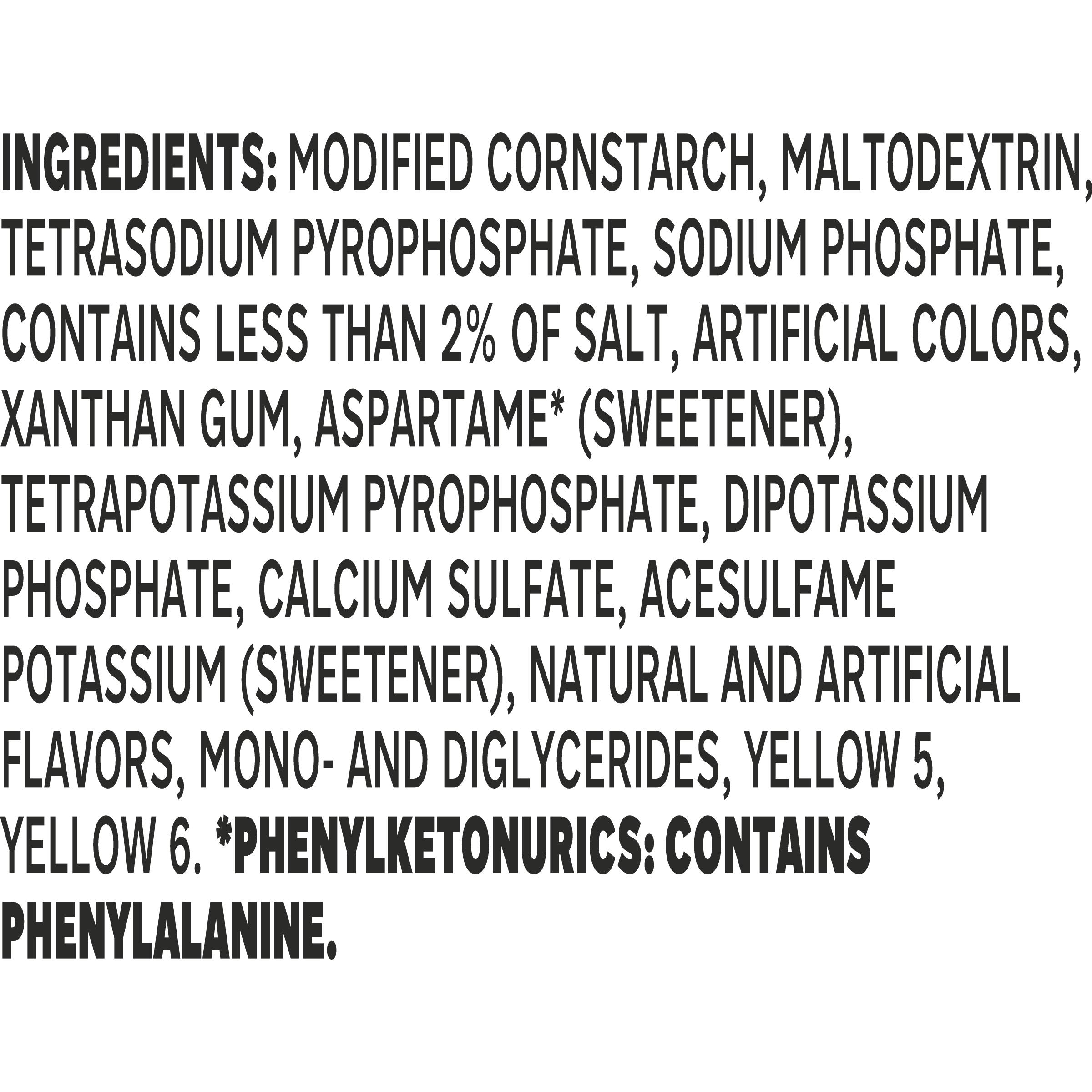 GTIN 00043000205822 Kraft Item Code (SKU) 00430002058270 Product Status Active Pack Level EACH Brand Name Jell-O Business Unit Hydration Desserts & Meals Catalog Platform Desserts Product Category Dry Package Dessert Consumer Unit Size 1.5 Consumer Unit Size UOM OZ Packaging Type (Computed) Box Packaging Type Code BOX/CARTON Packaging Type Code Override (Manual) BOX Sub Units Per Item 1 Variant Vanilla Sub Variant Zero Sugar Global Product Classification Desserts (Shelf Stable) Global Product Classification Code 10000312 Computed Exports - Ingredients MODIFIED CORNSTARCH, MALTODEXTRIN, TETRASODIUM PYROPHOSPHATE, SODIUM PHOSPHATE, CONTAINS LESS THAN 2% OF SALT, ARTIFICIAL COLORS, XANTHAN GUM, ASPARTAME* (SWEETENER), TETRAPOTASSIUM PYROPHOSPHATE, DIPOTASSIUM PHOSPHATE, CALCIUM SULFATE, ACESULFAME POTASSIUM (SWEETENER), NATURAL AND ARTIFICIAL FLAVORS, MONO- AND DIGLYCERIDES, YELLOW 5, YELLOW 6.*PHENYLKETONURICS: CONTAINS PHENYLALANINE. Parent Reference 00043000205853 Quality Statement Best When Used By Storage Instructions Store Ambient Customer Guarantee 180 Temperature Classification Ambient Prevailing Conditions Temperature Classification Code 01 Net Weight 0.094 Gross Weight 0.128 Weight UOM LB Height (in) 2.813 Length/Depth (in) 1.344 Width (in) 3.344 Case Cube 0.007 Parent Relation CASE_00043000205853 Parent Kraft Item Code (SKU) 00430002058500 Product Title Jell-O Vanilla Zero Sugar Instant Reduced Calorie Pudding & Pie Filling Mix, Family Size, 1.5 oz Box eCommerce Product Name (Generic Name) Zero Sugar Vanilla Flavor Instant Pudding & Pie Filling Product Benefits (Includes Seasonal + Formatting) - One 1.5 oz box of Jell-O Zero Sugar Vanilla Artificially Flavored Instant Reduced Calorie Pudding Mix & Pie Filling