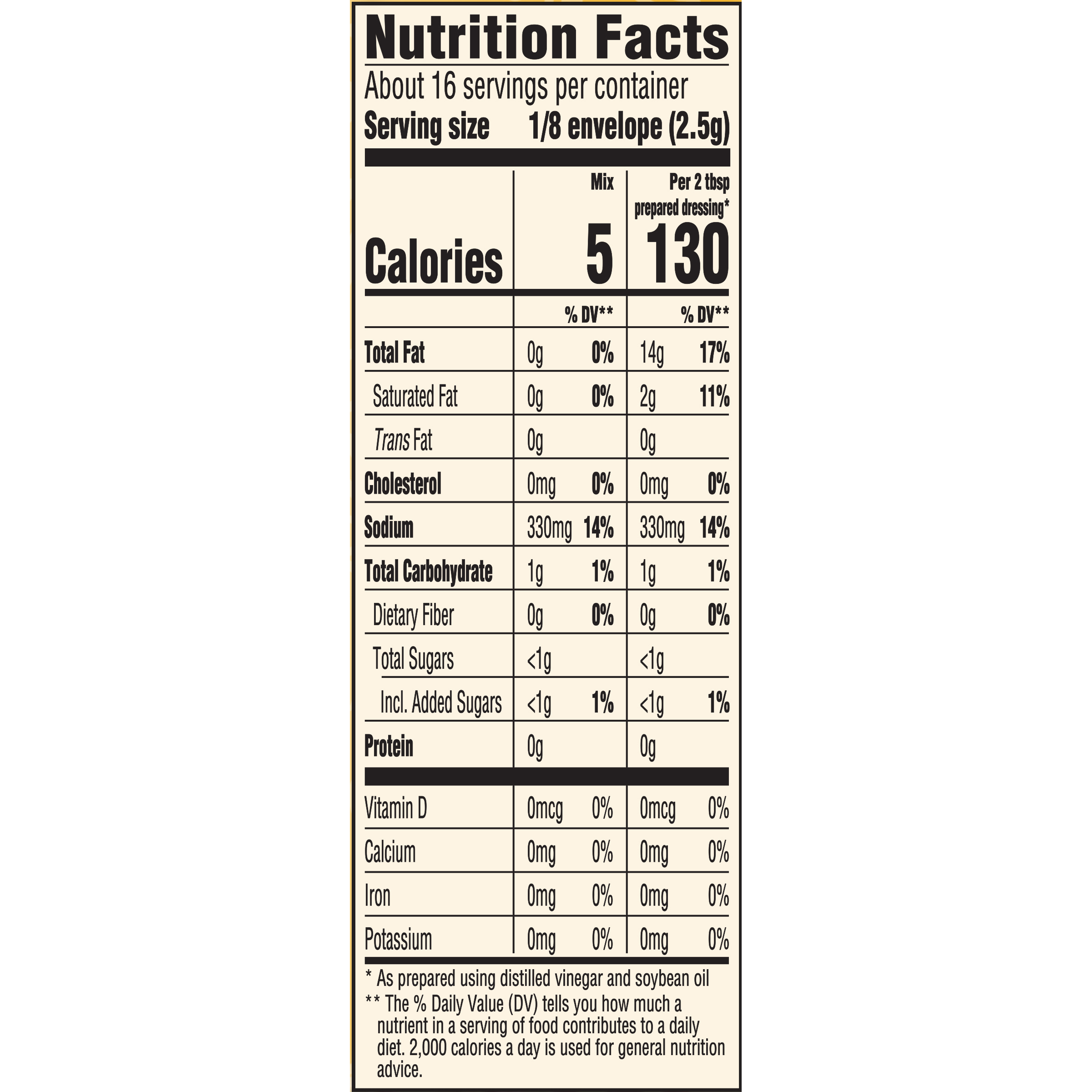 - Each packet makes 8 fl. oz. of dressing