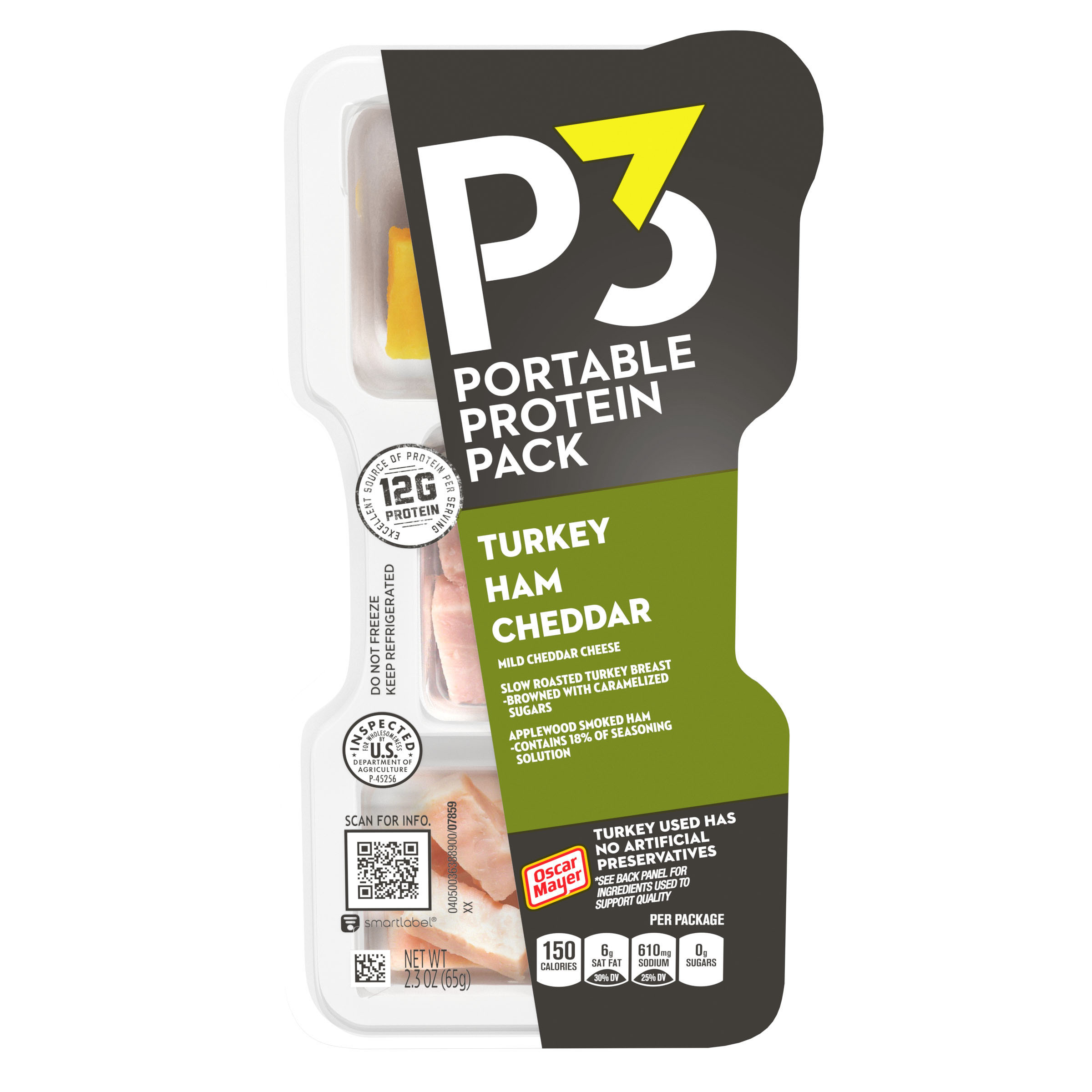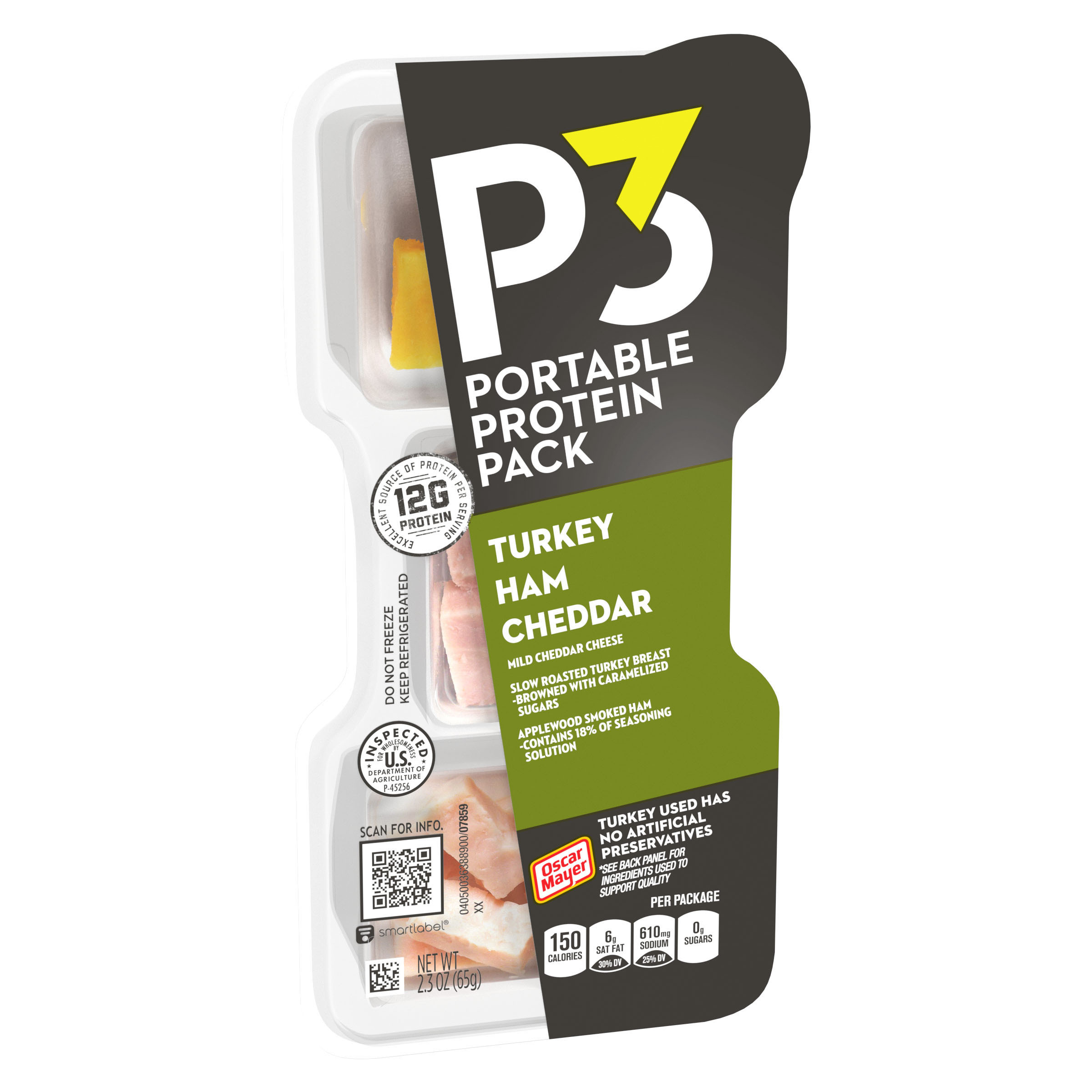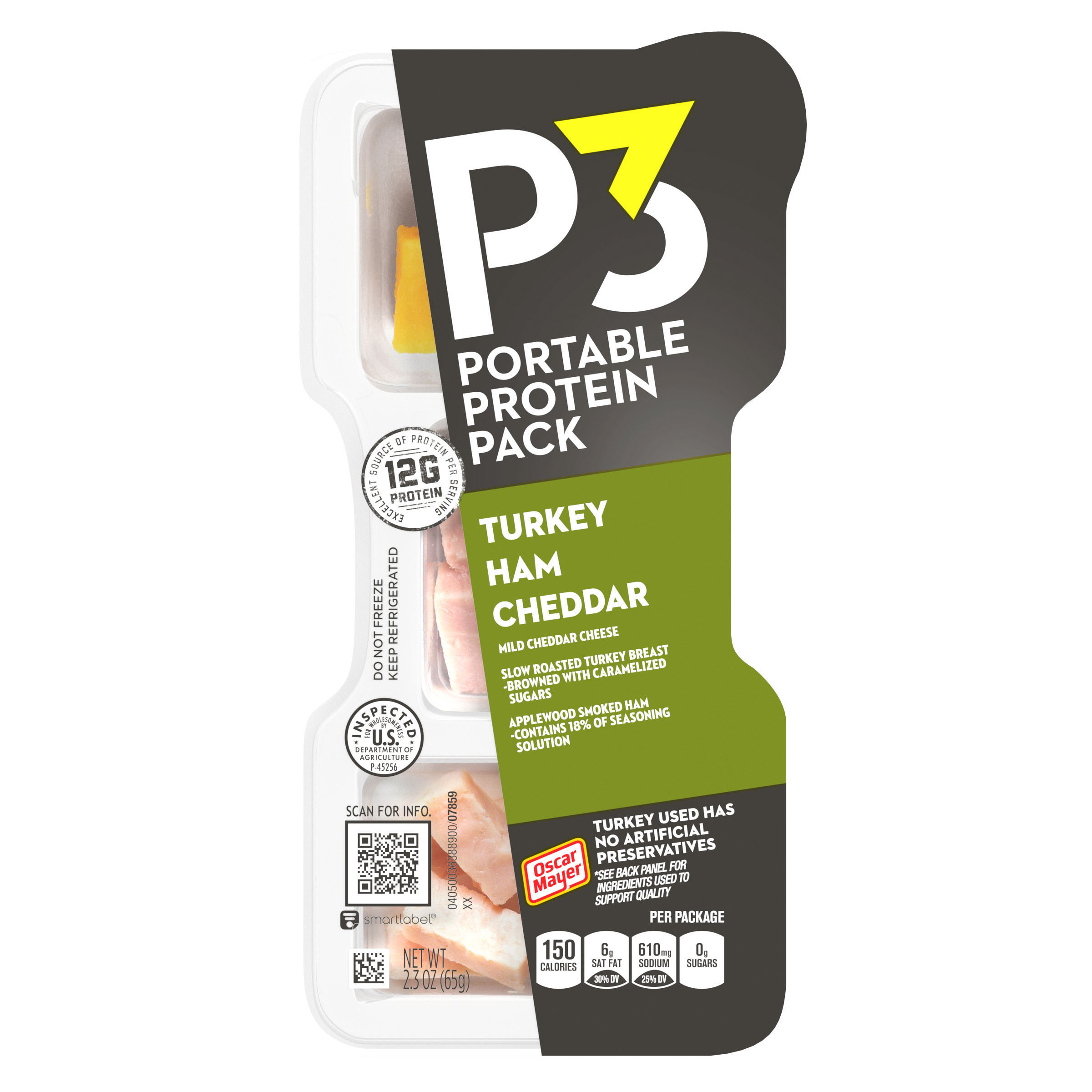- Oscar Mayer P3 Turkey, Ham and Cheddar Portable Protein Packs are a delicious protein snack