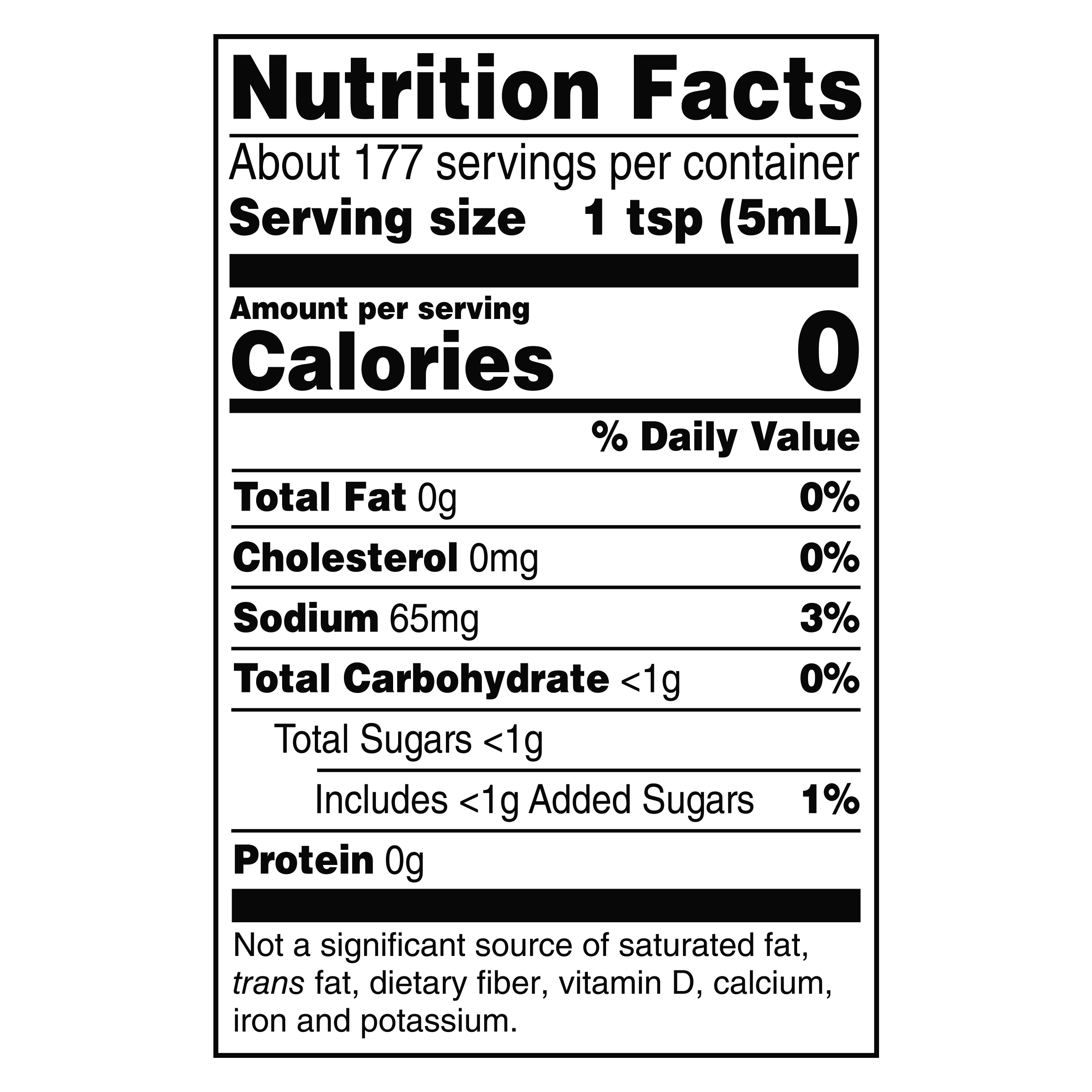 - Cholesterol free, fat free and gluten free with 5 calories per serving