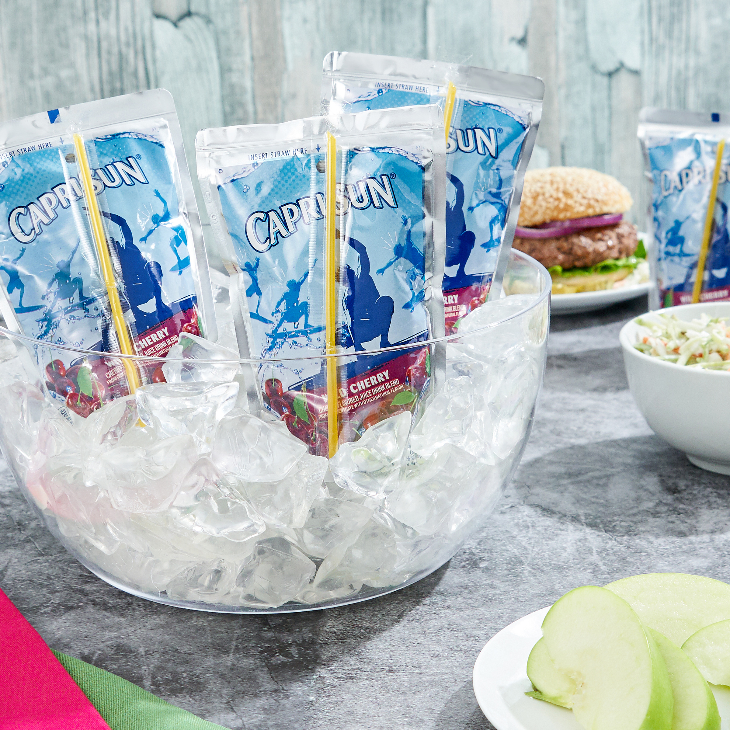 GTIN 00087684004098 Kraft Item Code (SKU) 00876840040900 Product Status Active Pack Level CASE Brand Name Capri Sun Business Unit Hydration Desserts & Meals Catalog Platform Hydration Product Category Ready To Drink Aseptic Pouch Consumer Unit Size 60 Consumer Unit Size UOM FO Packaging Type (Computed) Pack Packaging Type Code SHRINK WRAPPED Sub Units Per Item 4 Variant Wild Cherry Global Product Classification Juice Drinks - Ready to Drink (Shelf Stable) Global Product Classification Code 10000201 Computed Exports - Ingredients FILTERED WATER, SUGAR, PEAR AND CHERRY JUICE CONCENTRATES, CITRIC ACID, GRAPE AND APPLE JUICE CONCENTRATES, MONK FRUIT CONCENTRATE, NATURAL FLAVOR , MUSHROOM EXTRACT (TO PROTECT QUALITY). Parent Reference 20087684004092 Child Reference 00087684001004 Customer Guarantee 145 Temperature Classification Ambient Prevailing Conditions Temperature Classification Code 01 Net Weight 15 Gross Weight 17.228 Weight UOM LB Height (in) 5.563 Length/Depth (in) 15 Width (in) 9.5 Case Cube 0.459 Child Relation EACH_00087684001004 Parent Relation PALLET_20087684004092 Cases per Tier 12 Tiers per Pallet 8 Cases per Pallet 96 Pallet Stack Limit 1 Product Title CAPRI SUN 60 FO SOFT DRINK-READY TO DRINK WILD CHERRY 4 SHRINK WRAPPED CASE Product Description Convenient, ready-to-drink pouches packed in 4, 10 count cartons. No artificial colors, flavors, preservatives, or artificial sweeteners. Contains 25% less sugar than other leading juice drinks and has 10% real fruit juice. Comes in kid-friendly packaging
