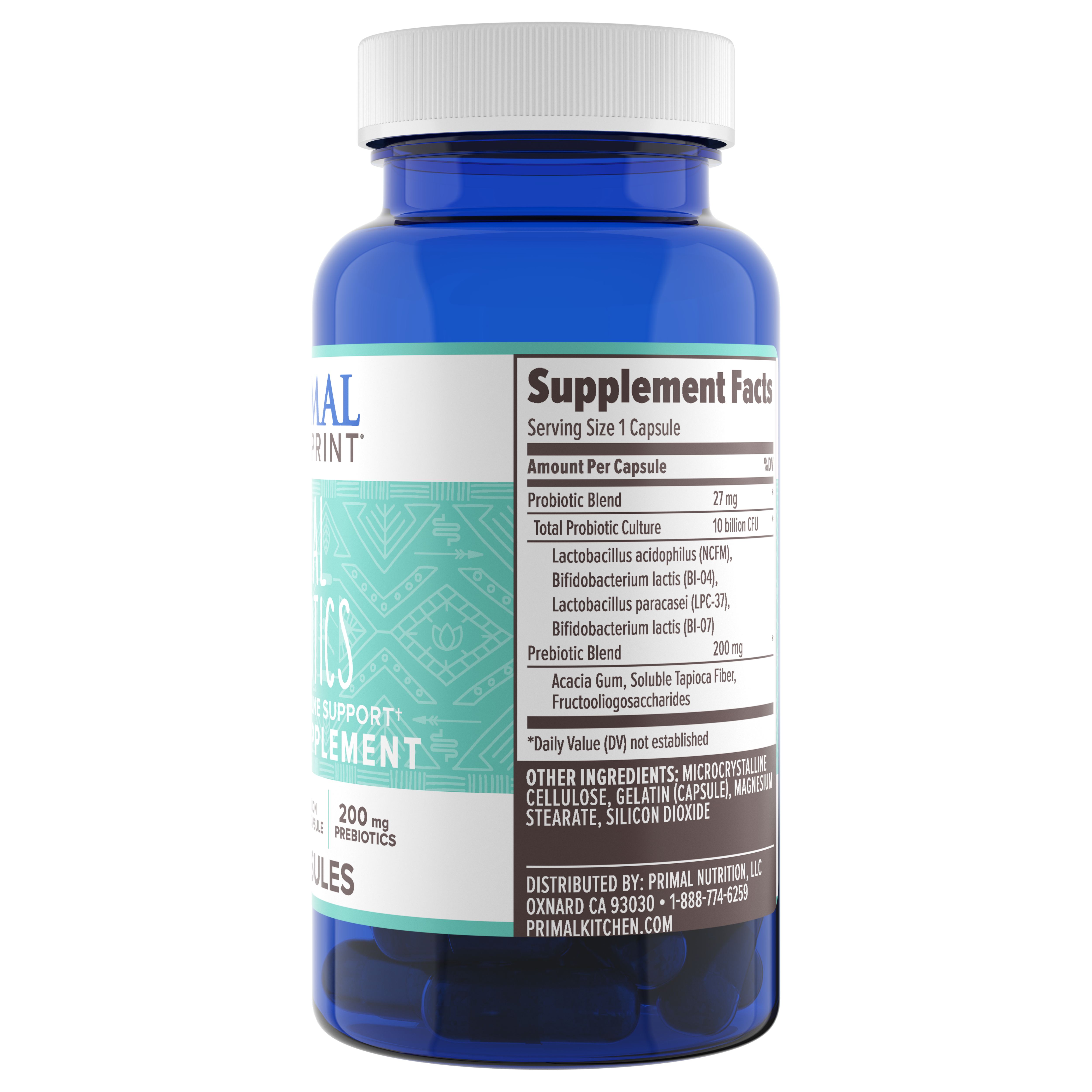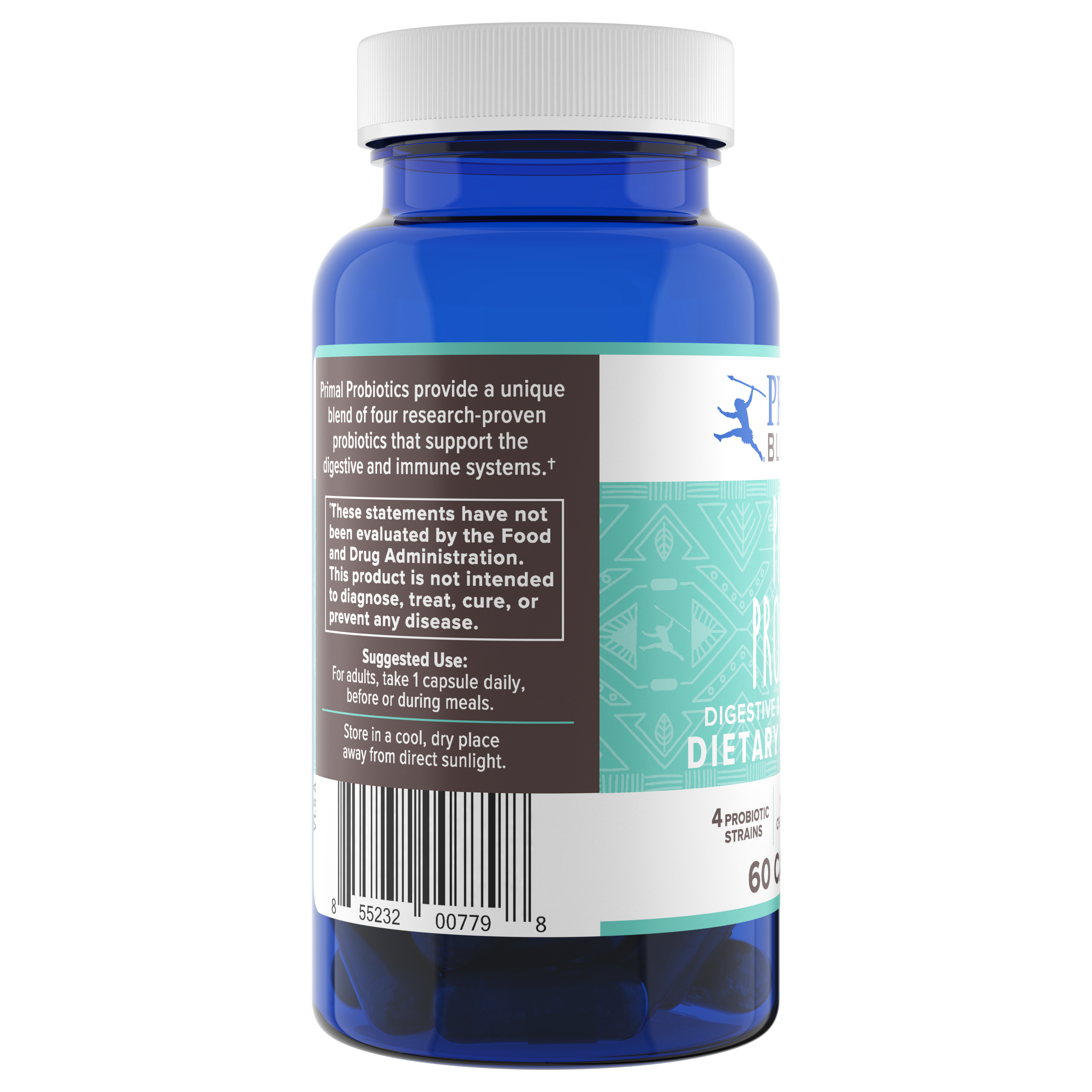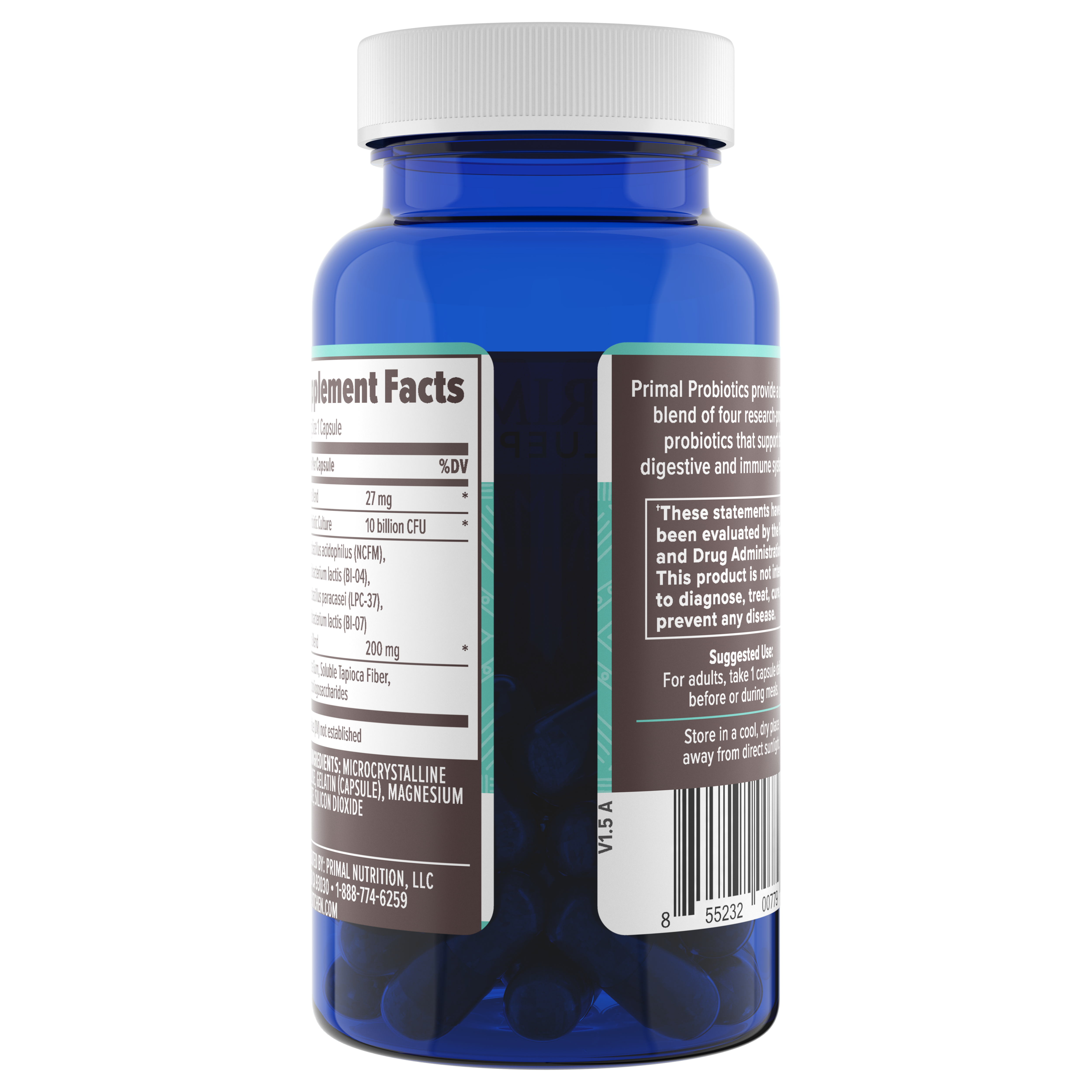 Product Description Nearly 80% of your immune system resides in your digestive tract. Primal Probiotics features four research-proven probiotic strains designed to support your gut with 10 billion colony-forming units of probiotics per capsule.
