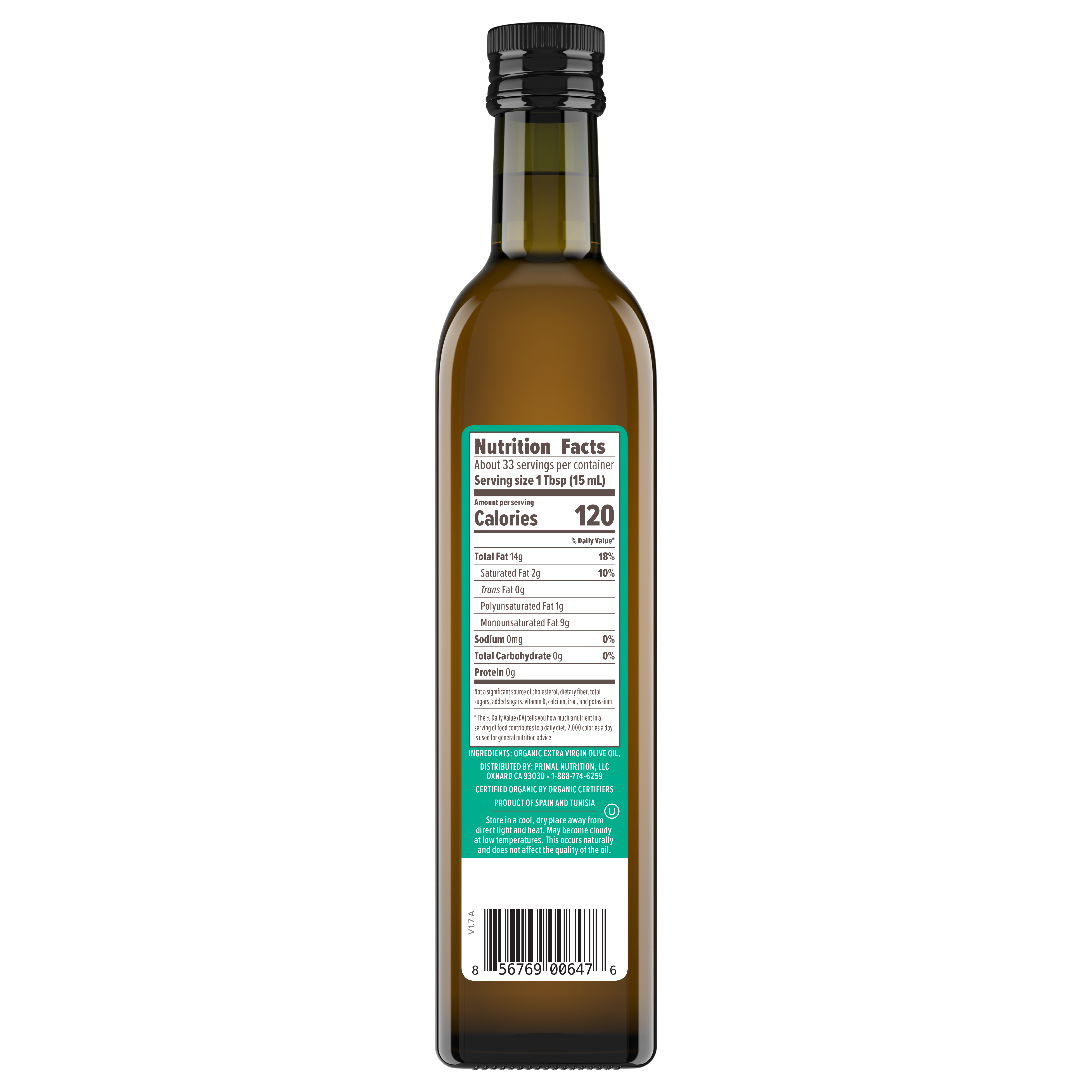 Product Description Introducing the classic cooking companion your kitchen needs: Primal Kitchen Organic Extra Virgin Olive Oil! Originating in Spain and Tunisia and made from organically grown olives, this bold-tasting EVOO has a distinctly earthy, buttery flavor with subtle grassy notes, a touch of saltiness, and a silky texture that glides on the palate. Certified for quality and purity by the North American Olive Oil Association, our premium Extra Virgin Olive Oil elevates any meal. One of our favorite fats to cook with, this cold-extracted oil is ideal for prepping pans, drizzling on salads, dunking gluten-free bread and veggies, sizzling up breakfast skillets, and mixing into homemade dressings.