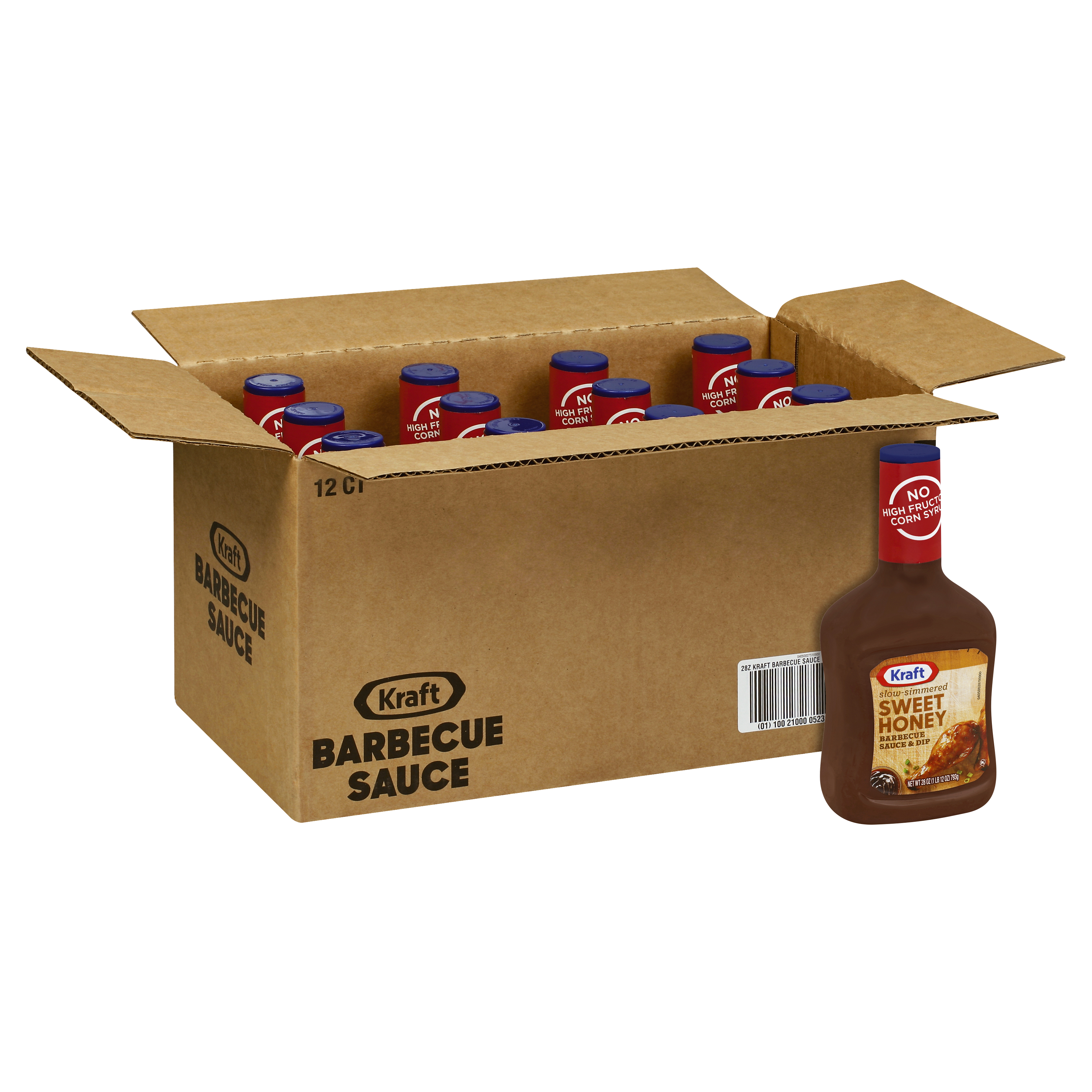 GTIN 10021000052391 Kraft Item Code (SKU) 00210000523900 Product Status Active Pack Level CASE Brand Name Kraft Business Unit Elevation Catalog Platform Taste Elevation Product Category BBQ Sauce Consumer Unit Size 28 Consumer Unit Size UOM OZ Packaging Type (Computed) Box Packaging Type Code BOX/CARTON Packaging Type Code Override (Manual) PACK Sub Units Per Item 12 Lowest Level Side Override (Manual) 28 oz Bottles Variant Hint Of Honey Global Product Classification Sauces Dipping/Condiments/Savoury Toppings/Savoury Spreads/Marinades (Shelf Stable) Global Product Classification Code 10000280 Computed Exports - Ingredients HIGH FRUCTOSE CORN SYRUP, VINEGAR, TOMATO PUREE (WATER, TOMATO PASTE), APPLE CIDER VINEGAR, MODIFIED FOOD STARCH, MOLASSES, SALT, CONTAINS LESS THAN 2% OF HONEY, NATURAL HICKORY SMOKE FLAVOR, MUSTARD FLOUR, SPICES, DRIED ONION, PAPRIKA, DRIED GARLIC, NATURAL FLAVOR, POTASSIUM SORBATE (TO PRESERVE FRESHNESS). Parent Reference 20021000052398 Child Reference 00021000052394 Customer Guarantee 145 Temperature Classification Ambient Prevailing Conditions Temperature Classification Code 01 Net Weight 21 Gross Weight 23.208 Weight UOM LB Height (in) 8.938 Length/Depth (in) 16 Width (in) 8.125 Case Cube 0.672 Child Relation EACH_00021000052394 Parent Relation PALLET_20021000052398 Cases per Tier 15 Tiers per Pallet 5 Cases per Pallet 75 Pallet Stack Limit 2 Product Title Kraft Sweet Honey Slow-Simmered Barbecue Sauce Family Size, 12 ct Pack, 28 oz Bottles Product Benefits (Includes Seasonal + Formatting) - Twelve 28 oz bottles of Kraft Slow Simmered Sweet Honey Barbecue Sauce