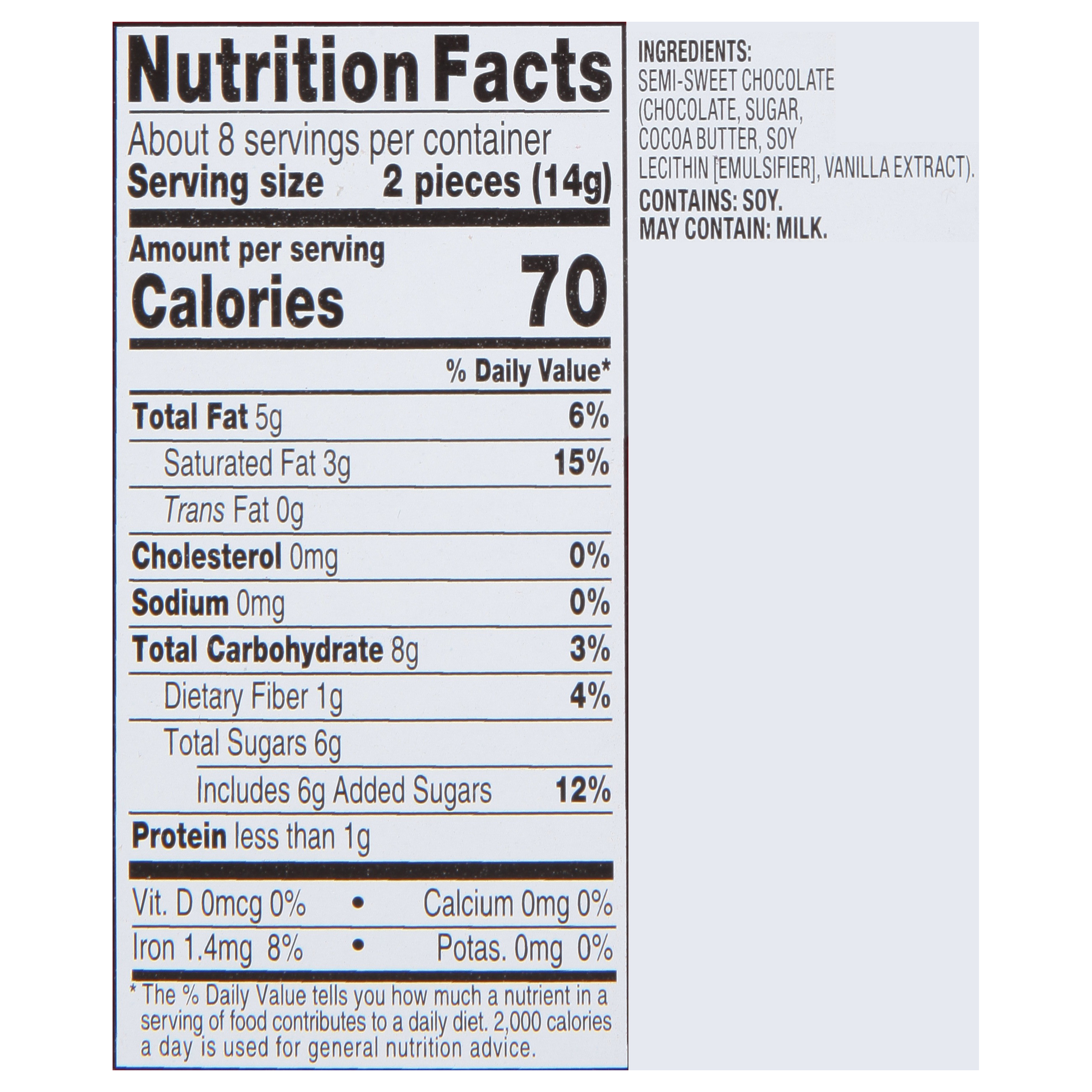 - Semi-sweet chocolate made with 56% cacao
