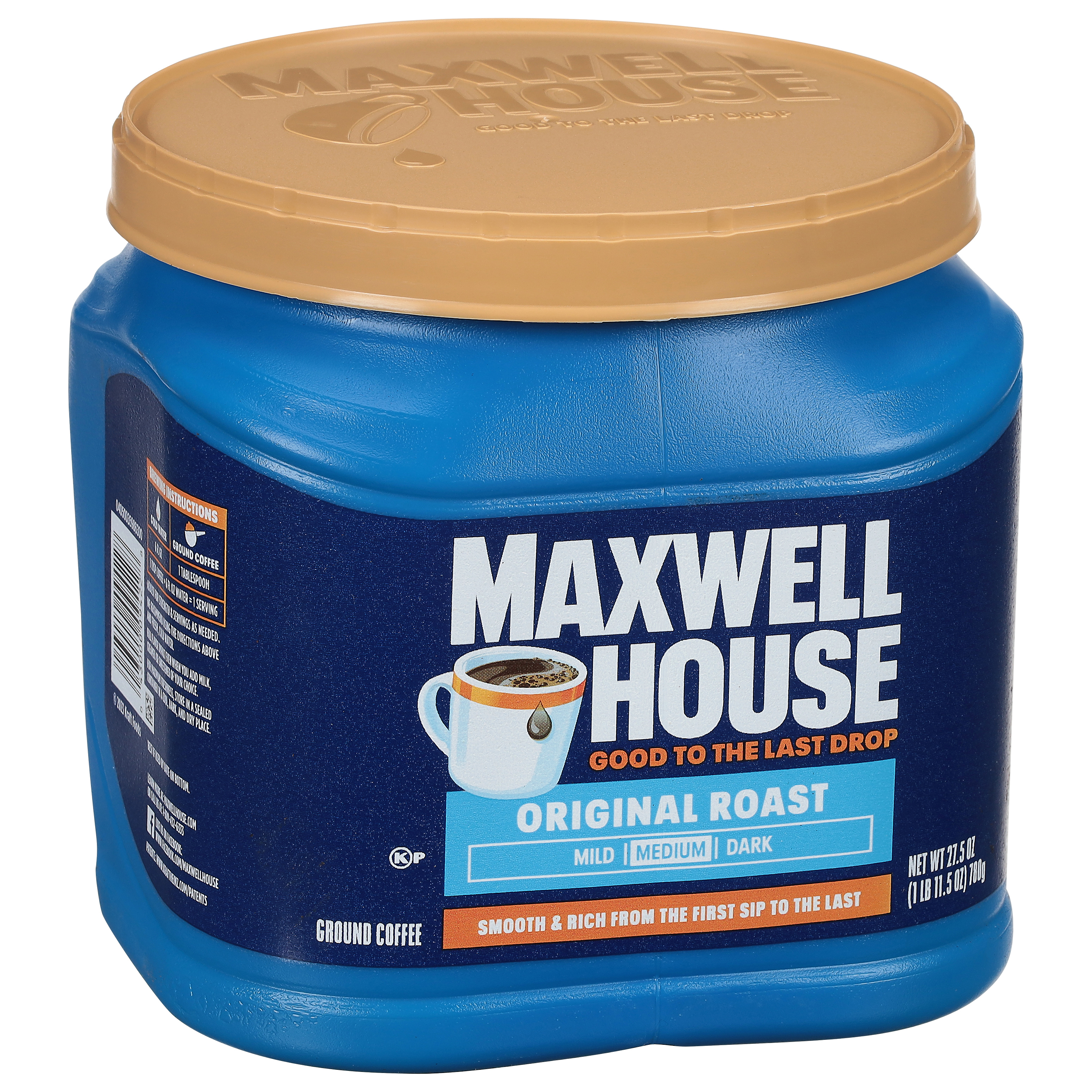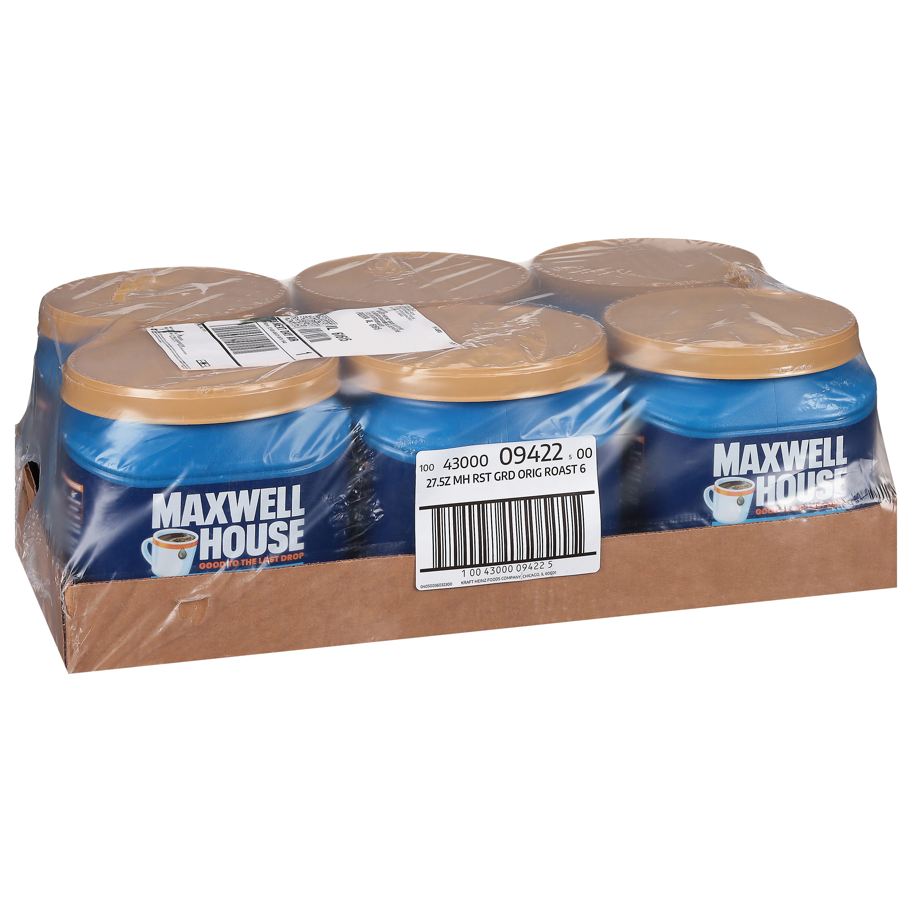 GTIN 10043000094225 Kraft Item Code (SKU) 00430000942200 Product Status Active Pack Level CASE Brand Name Maxwell House Business Unit Meat Cheese Coffee & Snacks Catalog Platform Coffee Product Category Mainstream Coffee Consumer Unit Size 27.5 Consumer Unit Size UOM OZ Packaging Type (Computed) Pack Packaging Type Code TRAY Sub Units Per Item 6 Variant Original Roast Sub Variant Medium Global Product Classification Code 10008179 Computed Exports - Ingredients COFFEE. Parent Reference 20043000094222 Child Reference 00043000094228 Customer Guarantee 145 Temperature Classification Code 01 Net Weight 10.312 Gross Weight 12.565 Weight UOM LB Height (in) 6.008 Length/Depth (in) 18.875 Width (in) 12.75 Case Cube 0.837 Child Relation EACH_00043000094228 Parent Relation PALLET_20043000094222 Cases per Tier 7 Tiers per Pallet 7 Cases per Pallet 49 Pallet Stack Limit 2 Product Title Maxwell House Original Roast Ground Coffee, 6 ct Case Product Description Maxwell House Original Roast Ground Coffee, 6 ct Case