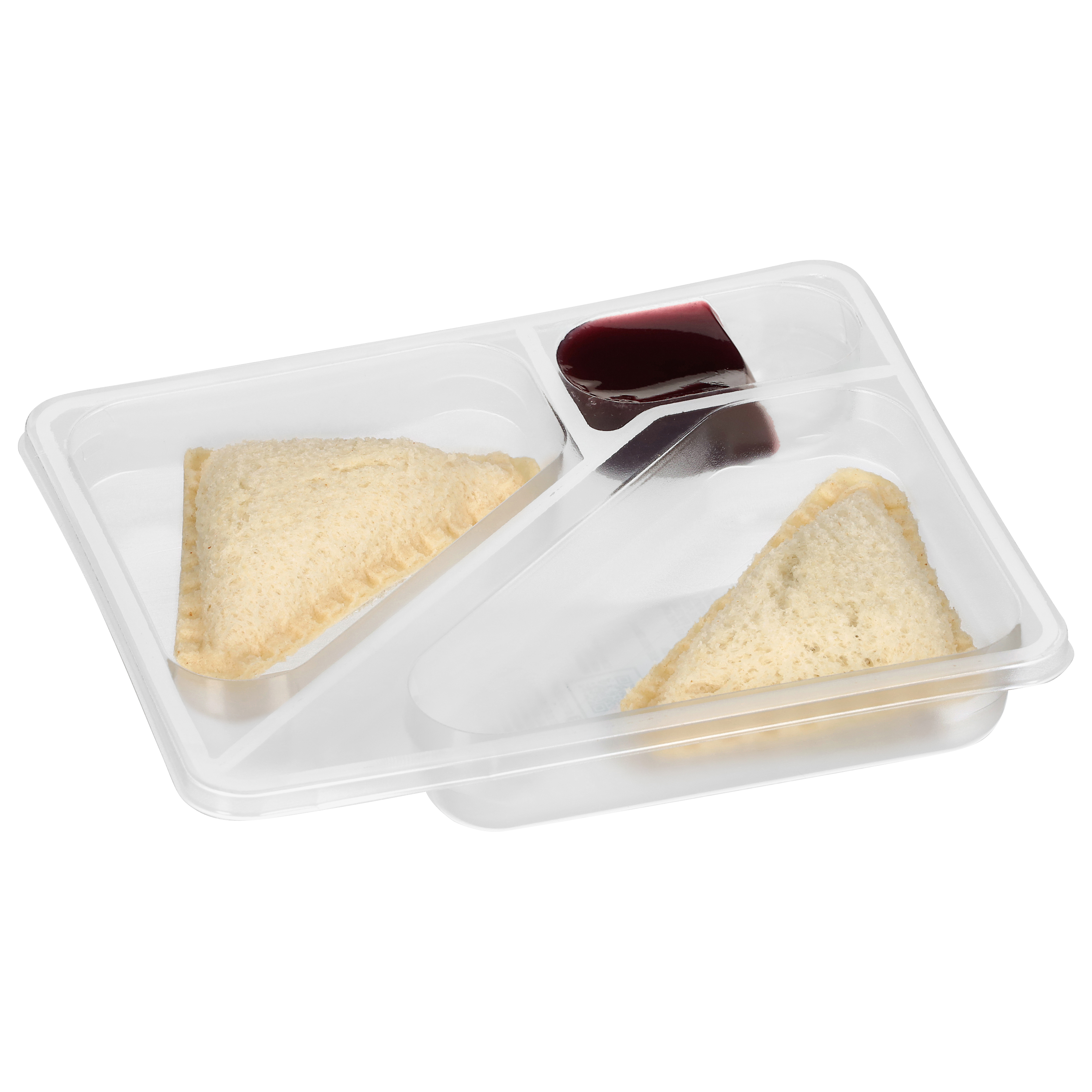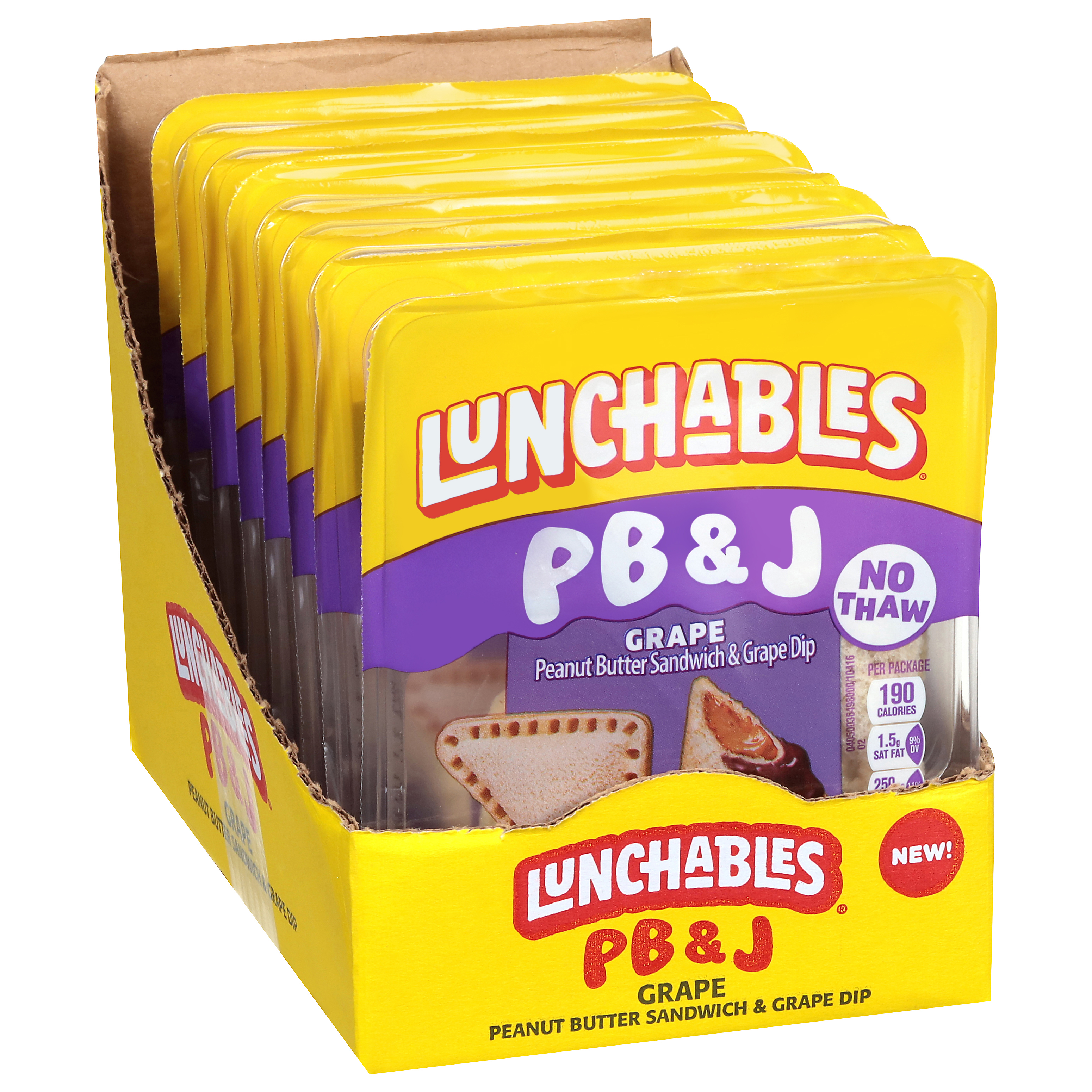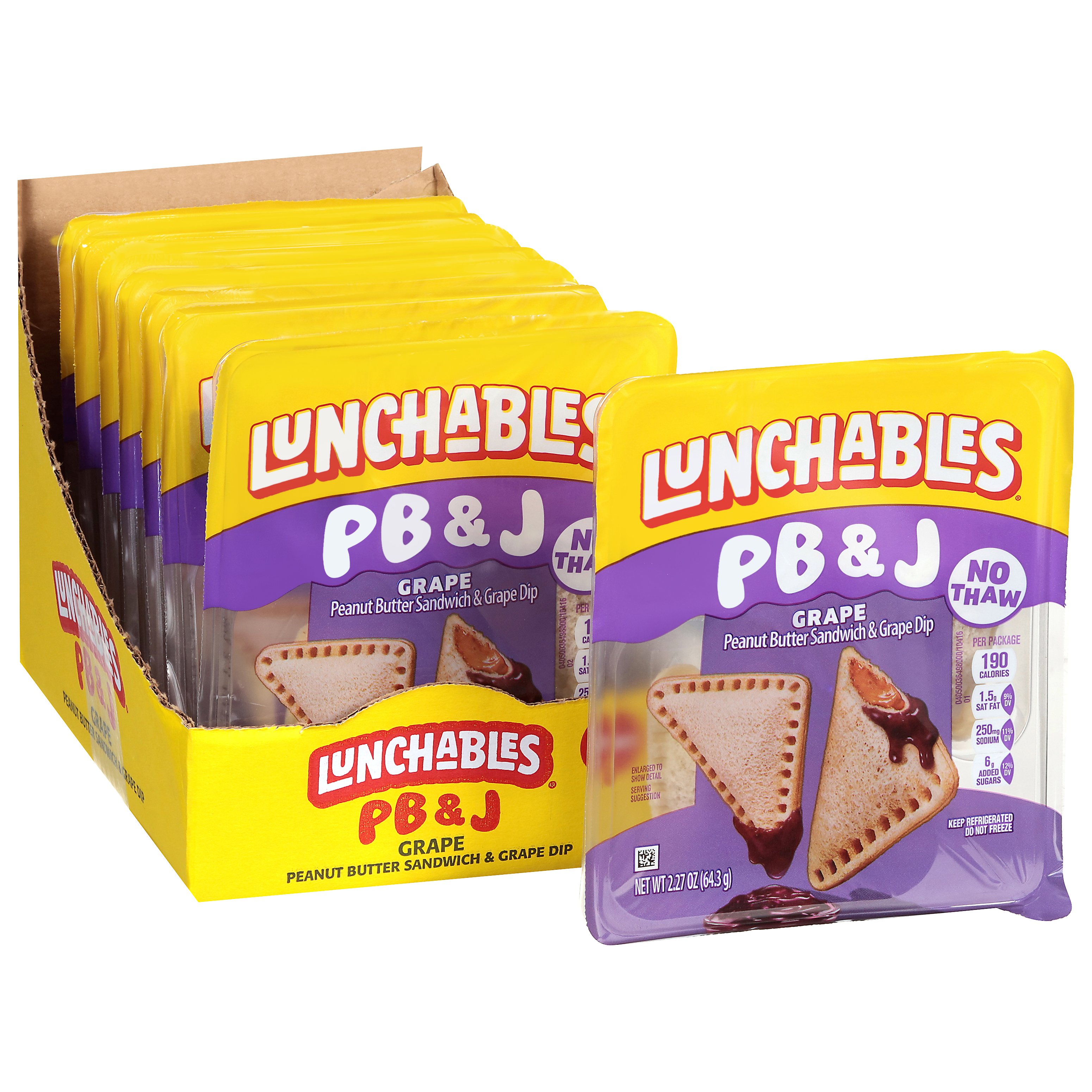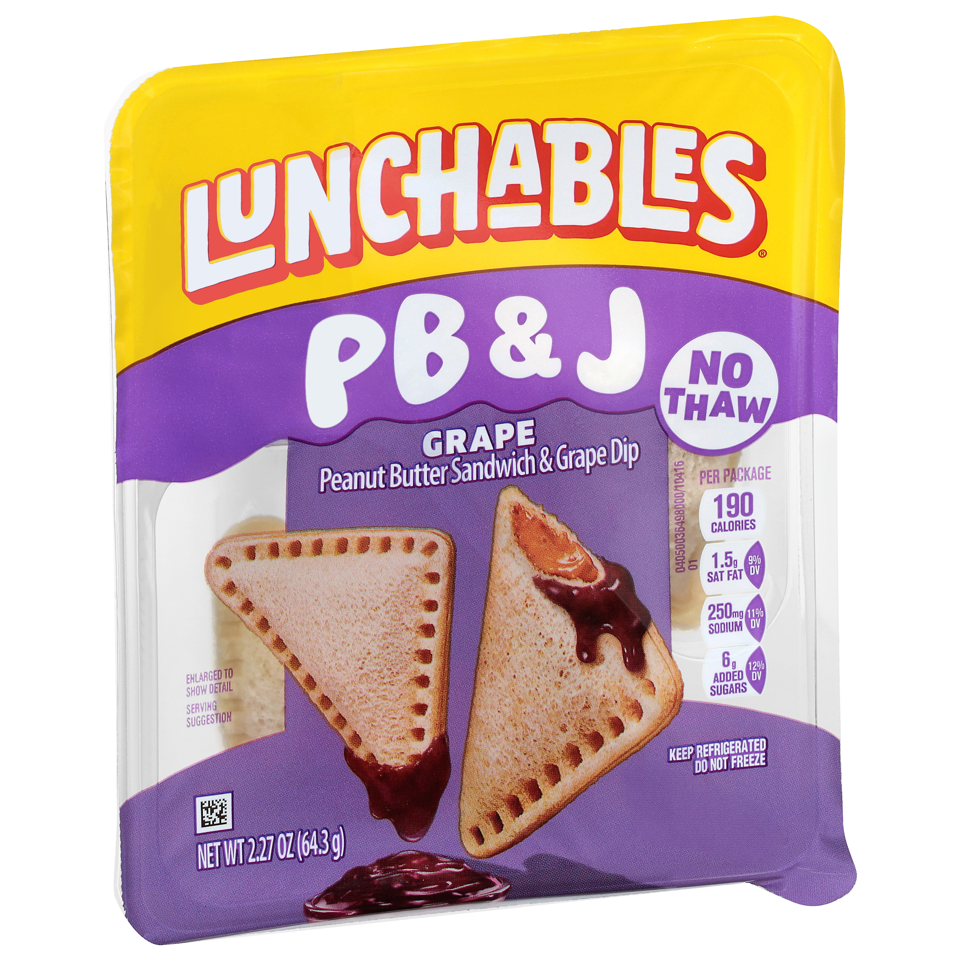 Product Description Kids' #1 favorite sandwich — now from Lunchables! Make snack time easy with Lunchables PB&J Peanut Butter Sandwich & Grape Dip. No wait needed, our snackable sandwiches are ready to dip and eat right out of the fridge anytime your kids are hungry. Each Lunchables PB&J snack kit includes two snack-sized crustless peanut butter sandwiches and grape dip. With creamy peanut butter and a sweet grape dip your kids will love, Lunchables PB&J allows kids to dip their sandwiches exactly the way they want. Each snack comes in a single-serve convenient package that offers portable eating. Ready when they are, Lunchables PB&J is a great snack for kids to enjoy at home or on the go. Always remember to keep your Lunchables PB&J refrigerated until you are ready to enjoy.