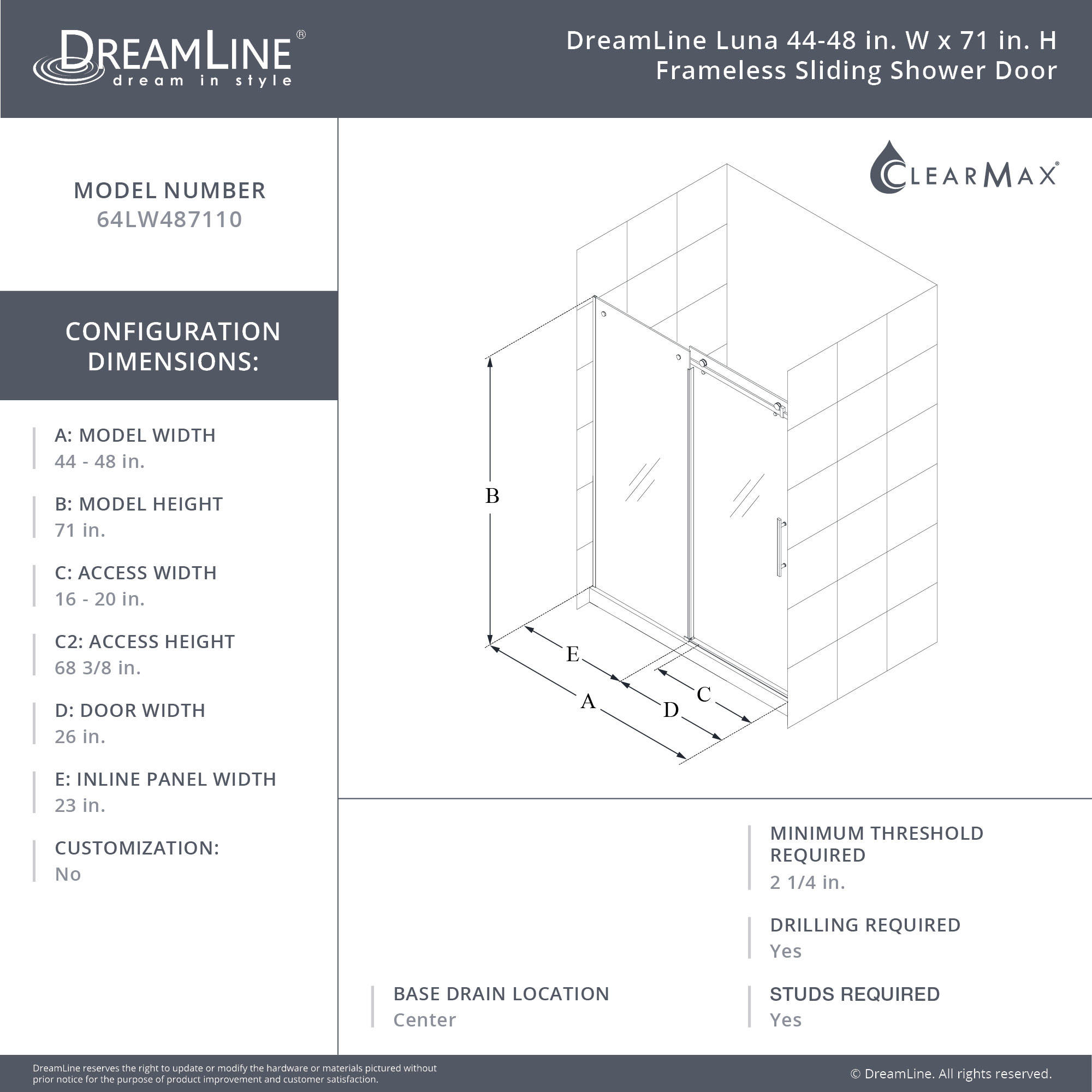 | 9 Set - Bullet 01 | Model Size: 44-48 in. W x 71 in. H; Walk-In Opening: 16-20 in.