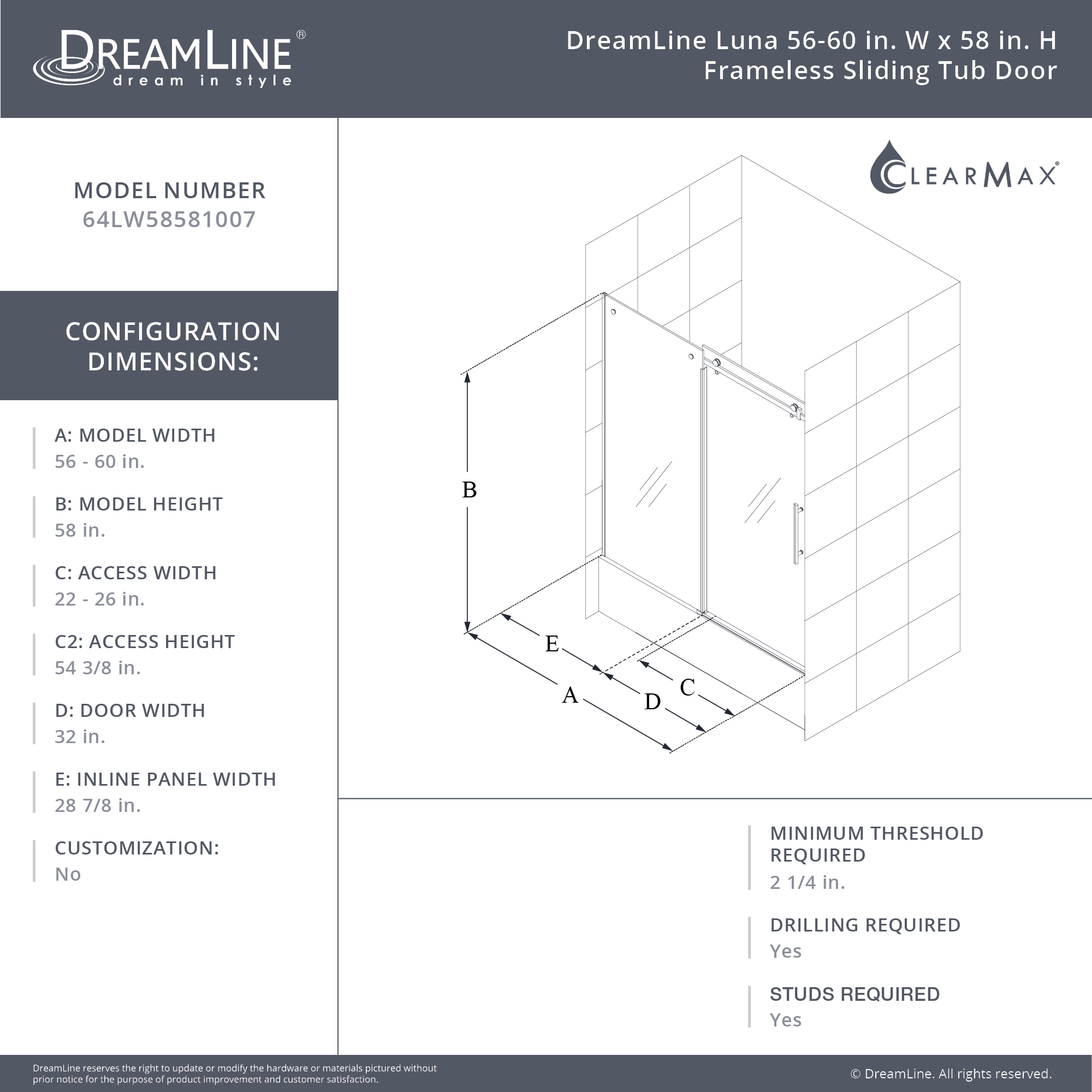 | 9 Set - Bullet 01 | Model Size: 54-58 in. W x 58 in. H; Walk-In Opening: 20-24 in.