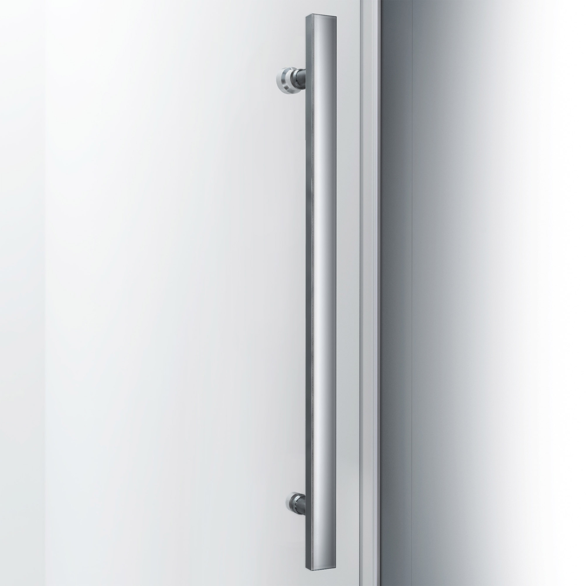 | 9 Set - Bullet 04 | Stainless steel top guide bar can be trimmed up to 4 in. for width adjustment; Stationary panel is attached to the wall by 1 in. U-channel |