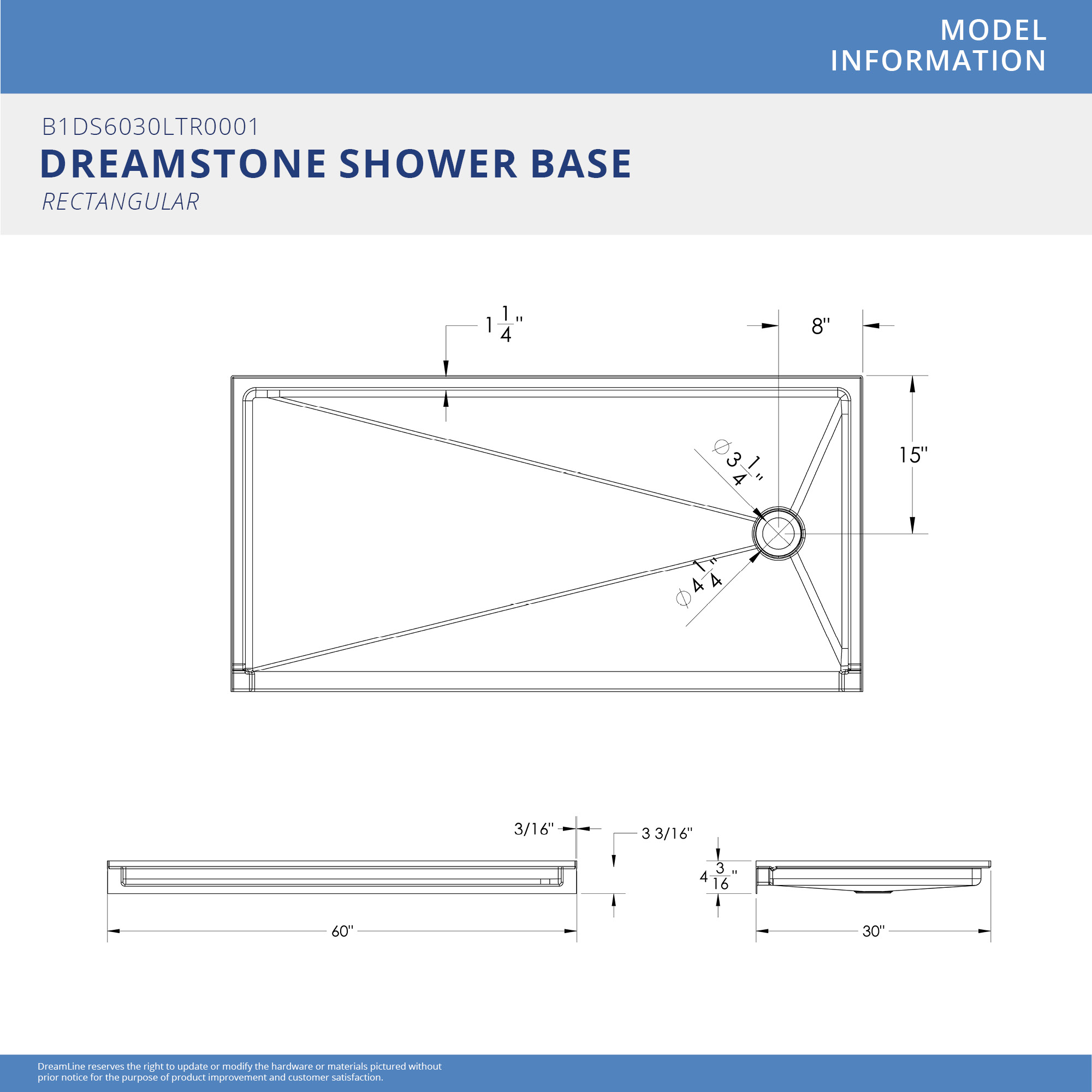 | 9 Set - Bullet 01 | Model Size: 30 in. D x 60 in. W x 4 3/16 in. H Single Threshold Base |
