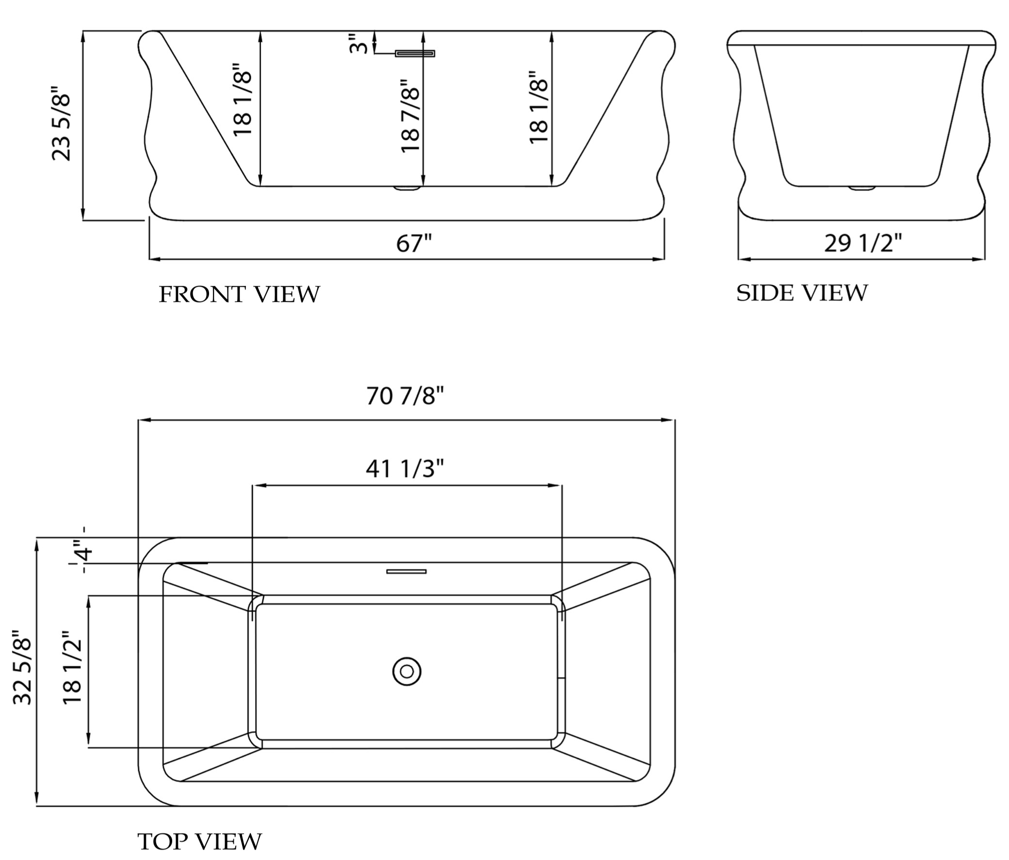 | 9 Set - Bullet 01 | Tub Size: 70-7/8" L x 32-2/3" W x 23-5/8" H; Soaking Depth: 16" |