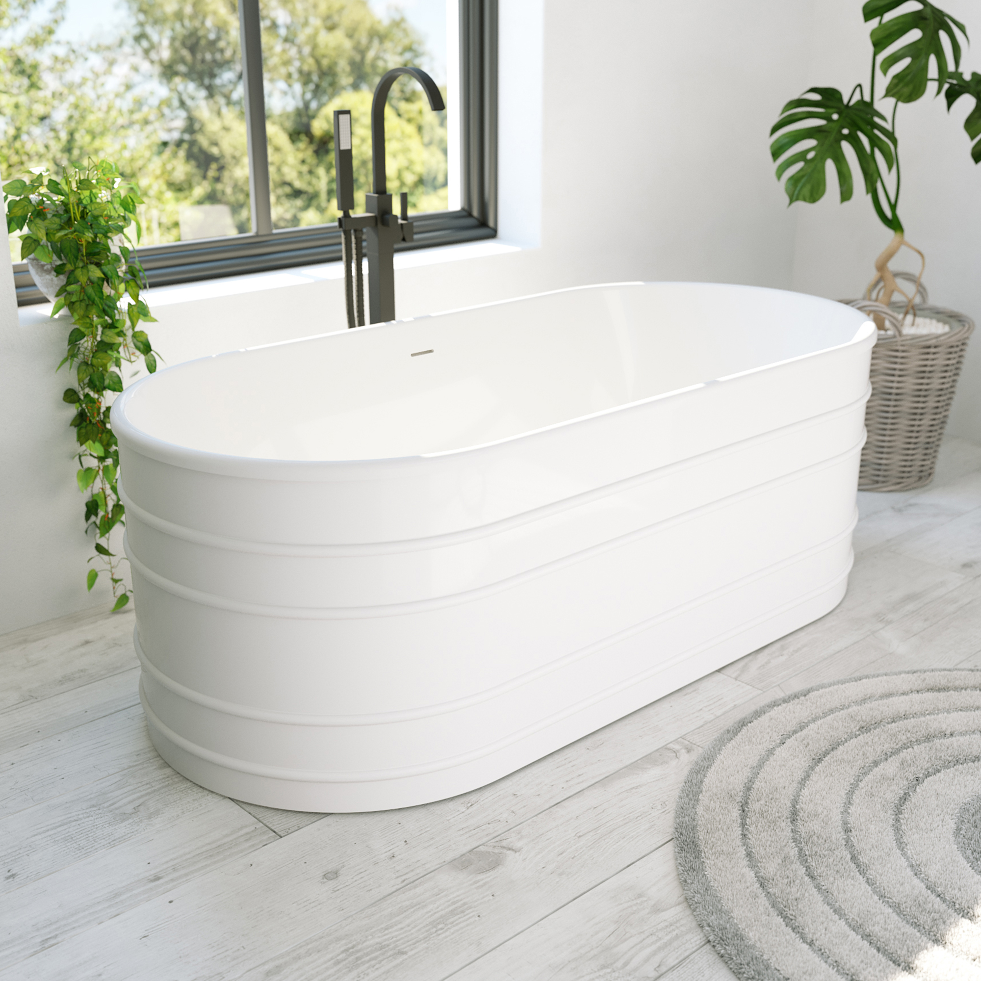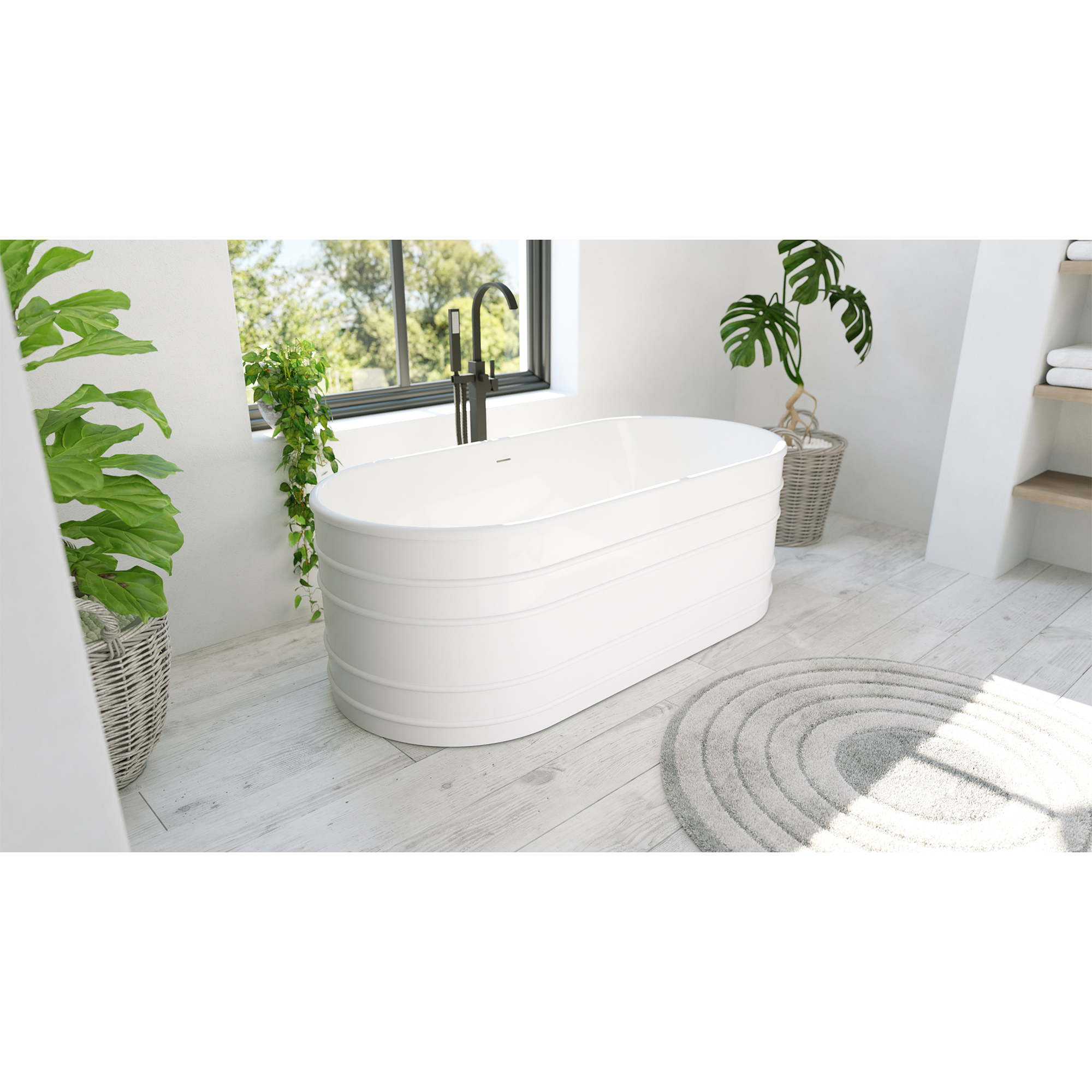 | 9 Set - Bullet 05 | Freestanding tub design offers flexible installation options; Horizontal ribbed exterior complements modern farmhouse aesthetics |