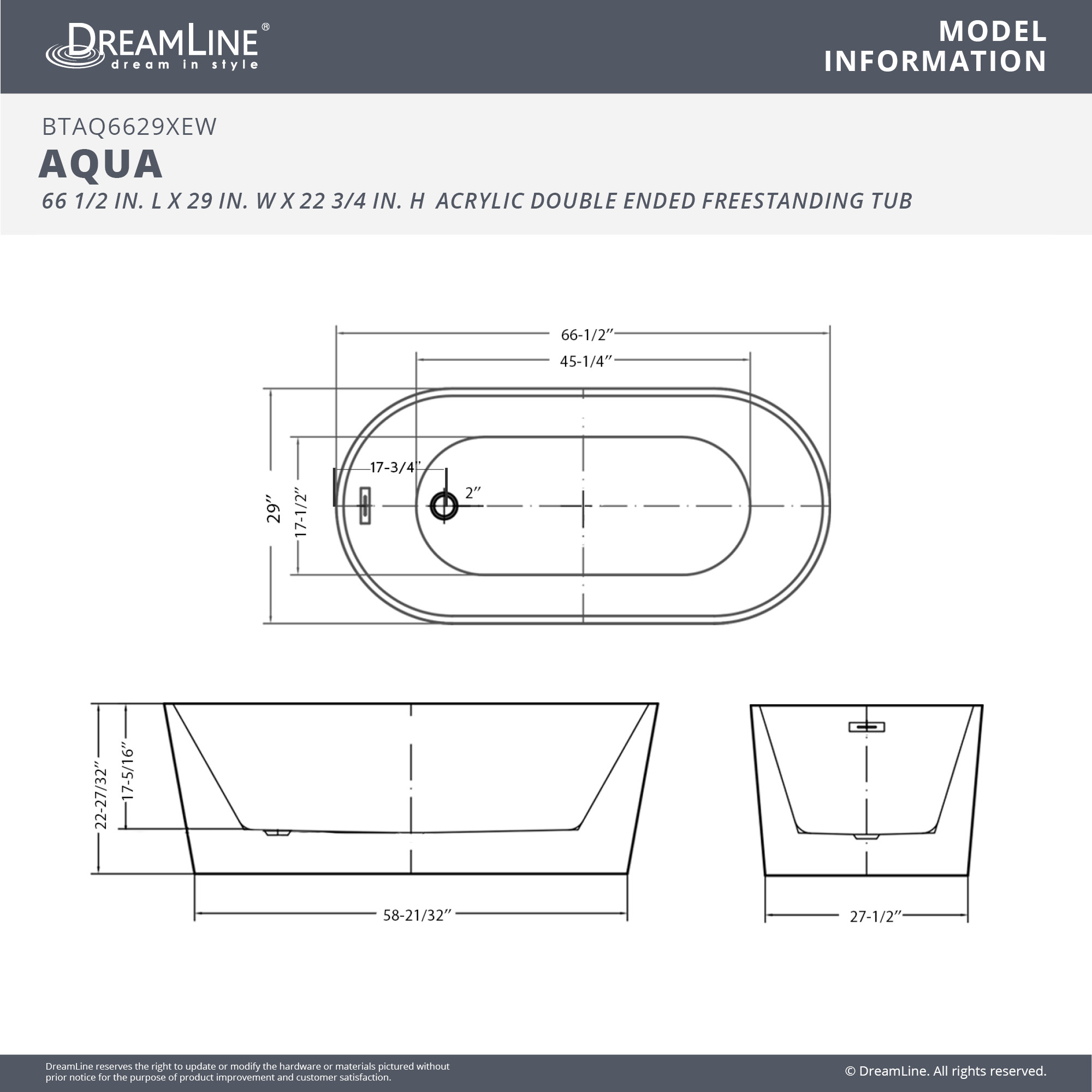 | 9 Set - Bullet 01 | Tub Size: 66-1/2" L x 29" W x 22-3/4" H; Soaking Depth: 15" |