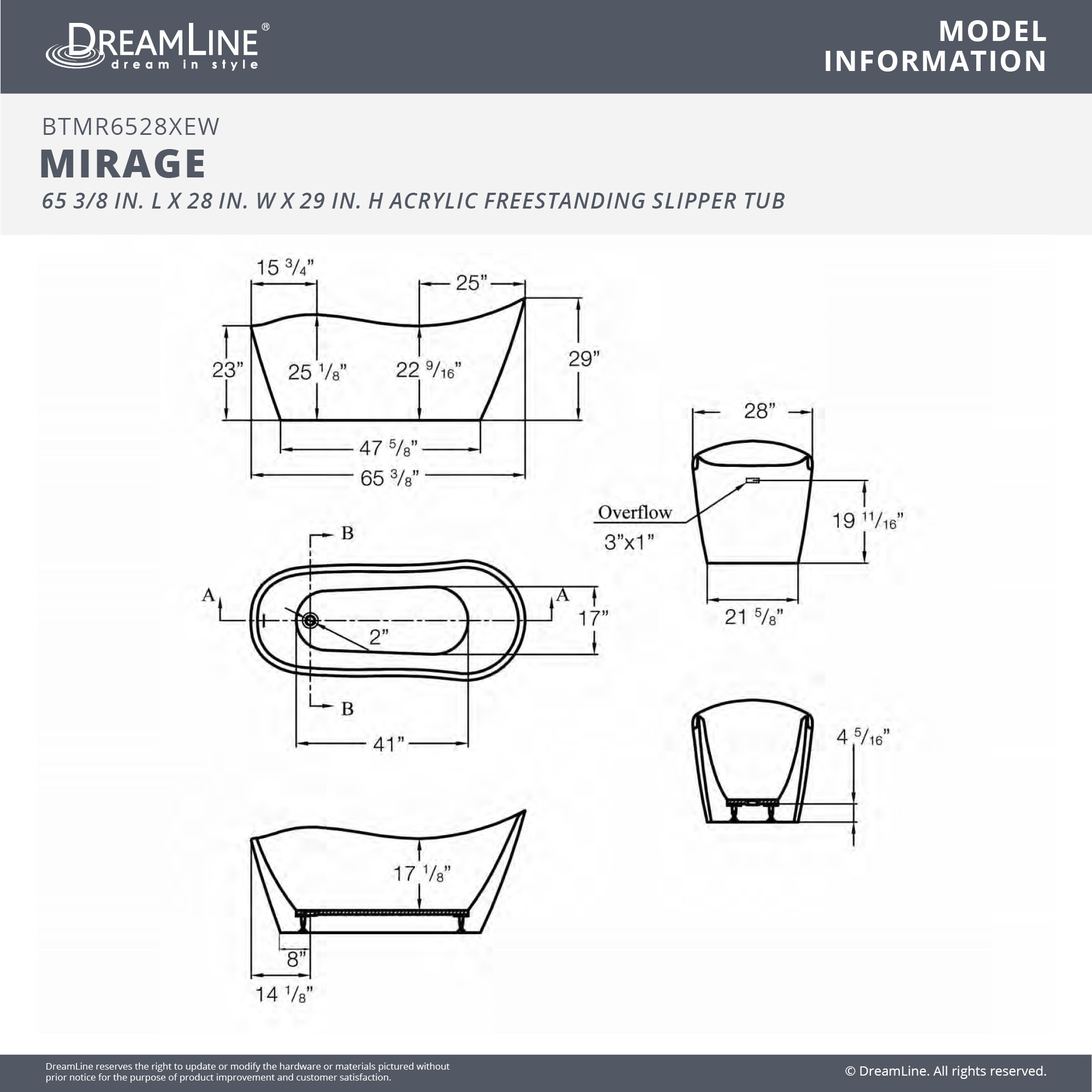 | 9 Set - Bullet 01 | Tub Size: 65-3/8" L x 28" W x 29" H; Soaking Depth: 14-7/8" |