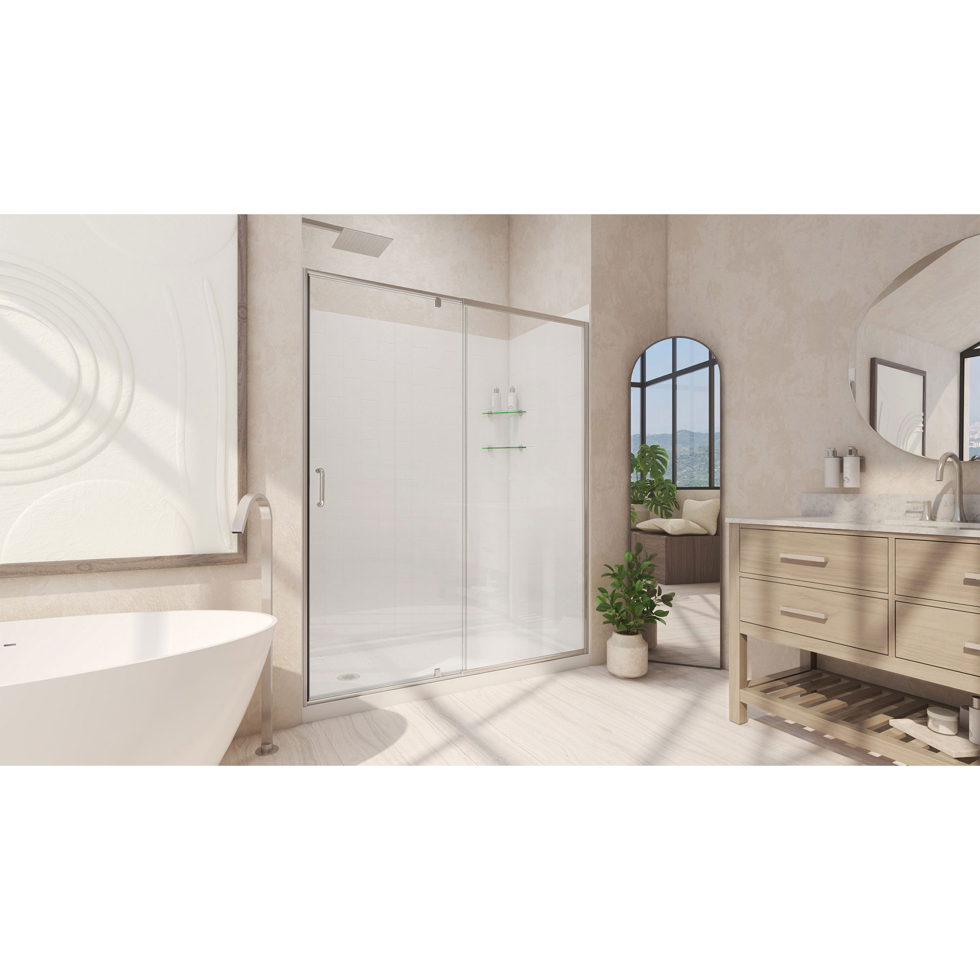 | 9 Set - Bullet 01 | Kit includes: Reversible shower door, base, and wall kit; Kit Size: 34 in. D x 60 in. W x 78 3/4 in. H; Walk-in Opening: 23 in. |