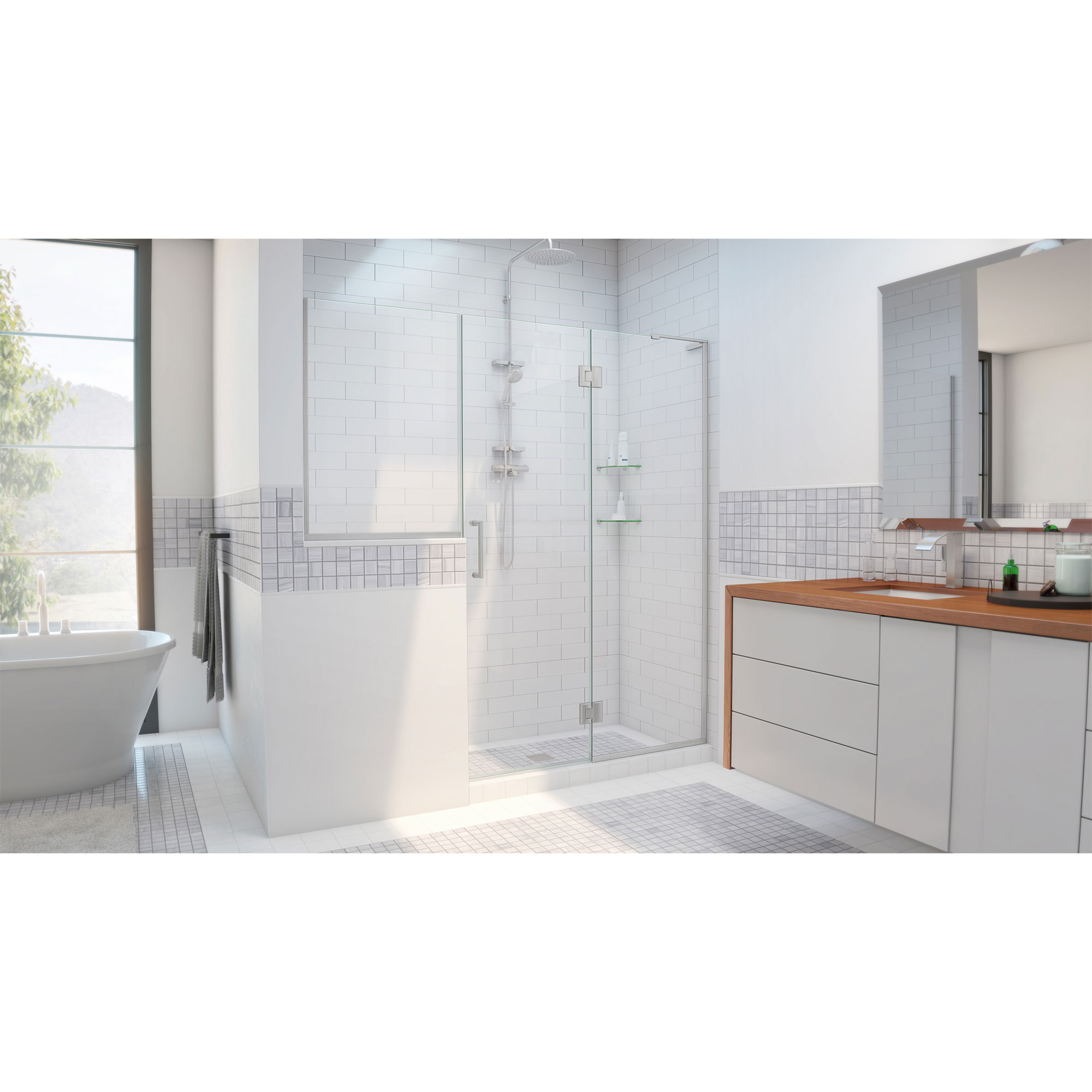 | 9 Set - Bullet 02 | Configuration: 24 in. Hinged panel with attached Shower Door and 24 in. W x 34 in. H Inline Buttress panel |