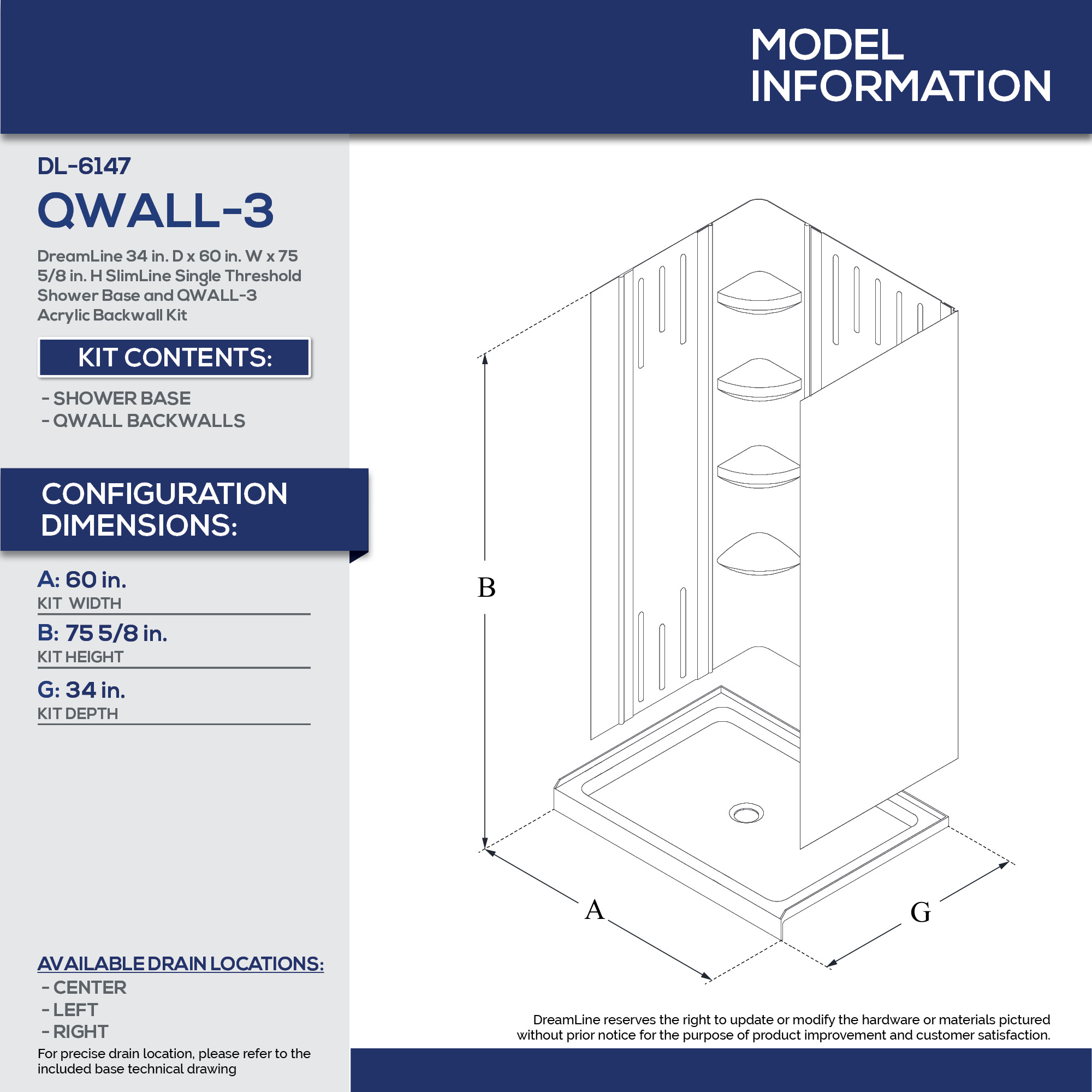 | 9 Set - Bullet 08 | Q-Wall Backwalls: Install to waterproof backer board or existing wall treatment (not directly to studs); Trim-to-size panels |