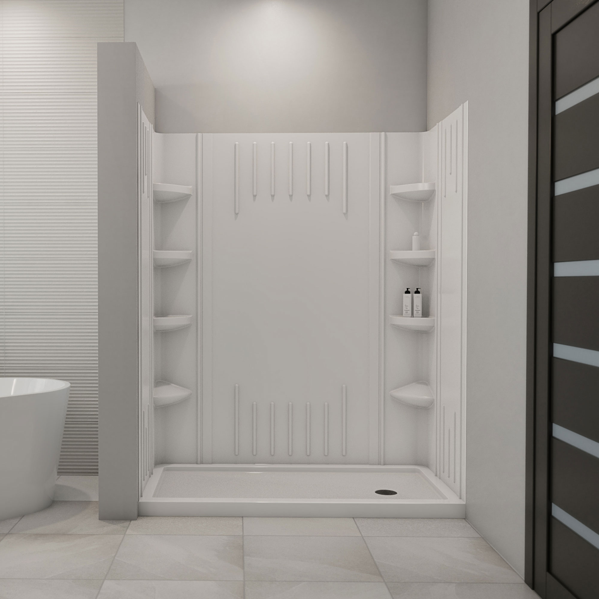 | 9 Set - Bullet 01 | Kit Includes: QWall-3 Backwalls and Single Threshold SlimLine Base; Drain Location: Right; Color: White |