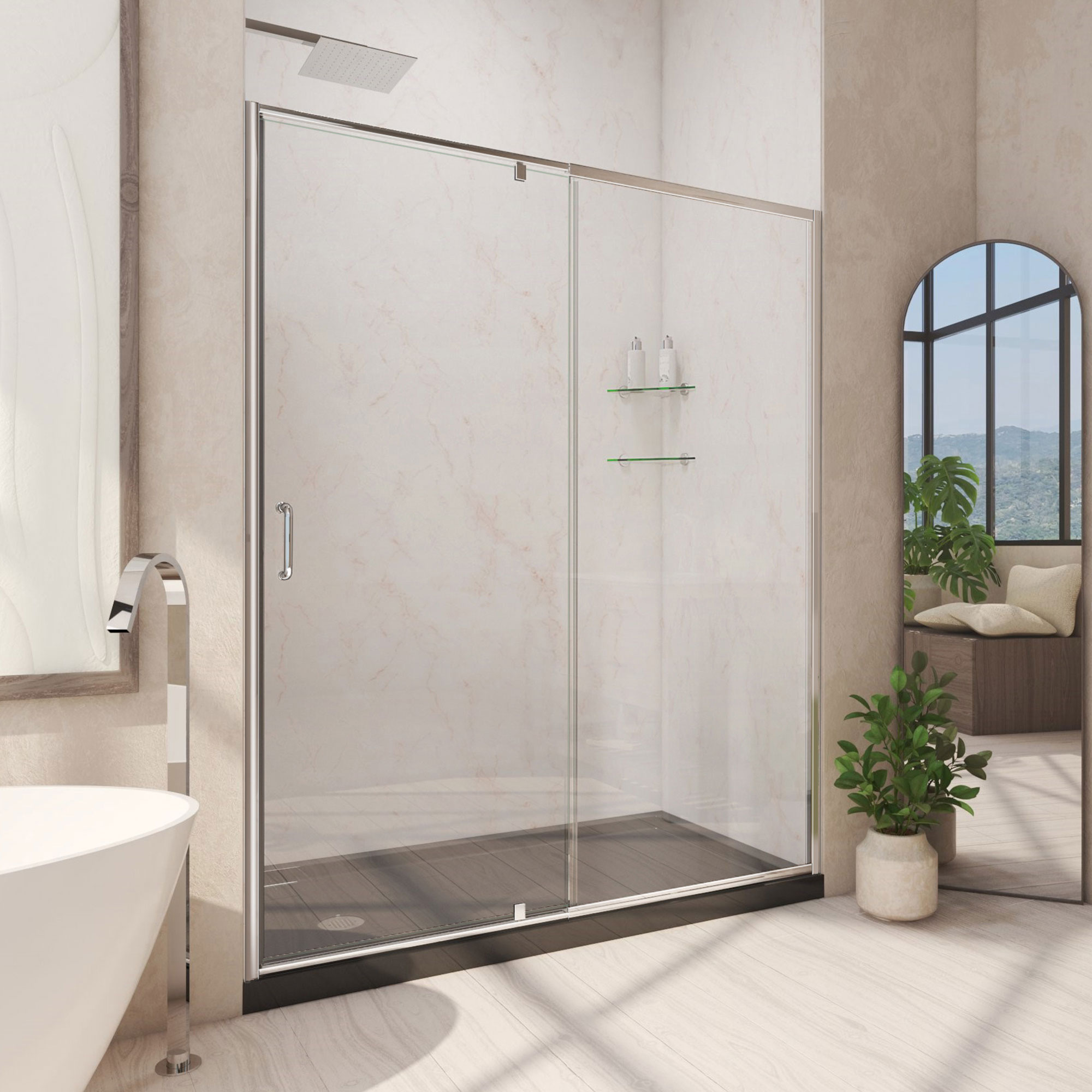 | 9 Set - Bullet 02 | Flex Shower Door: 1/4 in. (6mm) thick certified clear tempered glass; Shower door is reversible for right or left door opening |