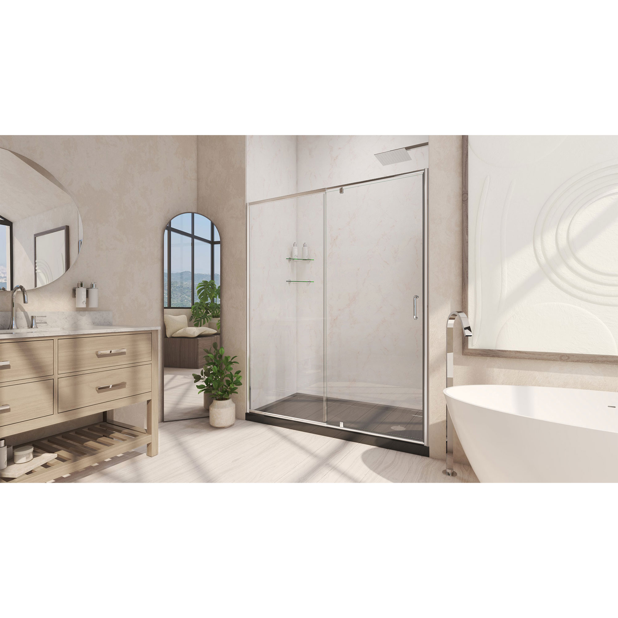 | 9 Set - Bullet 02 | Flex Shower Door: 1/4 in. (6mm) thick certified clear tempered glass; Shower door is reversible for right or left door opening |