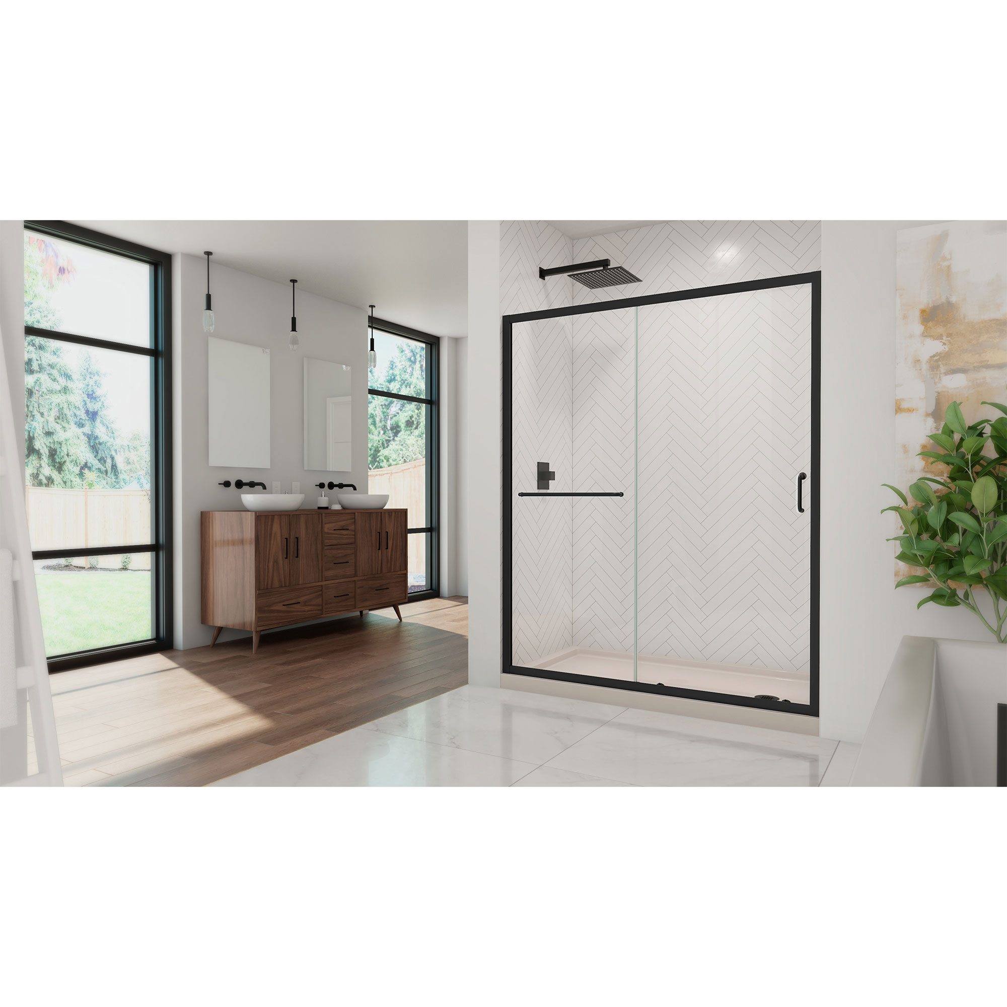 | 9 Set - Bullet 01 | Kit Includes: Infinity-Z Shower Door and SlimLine Base; Kit Size: 34 in. D x 60 in. W x 74 3/4 in. H; Walk-in Opening: 21 3/8 - 25 3/8 in. |