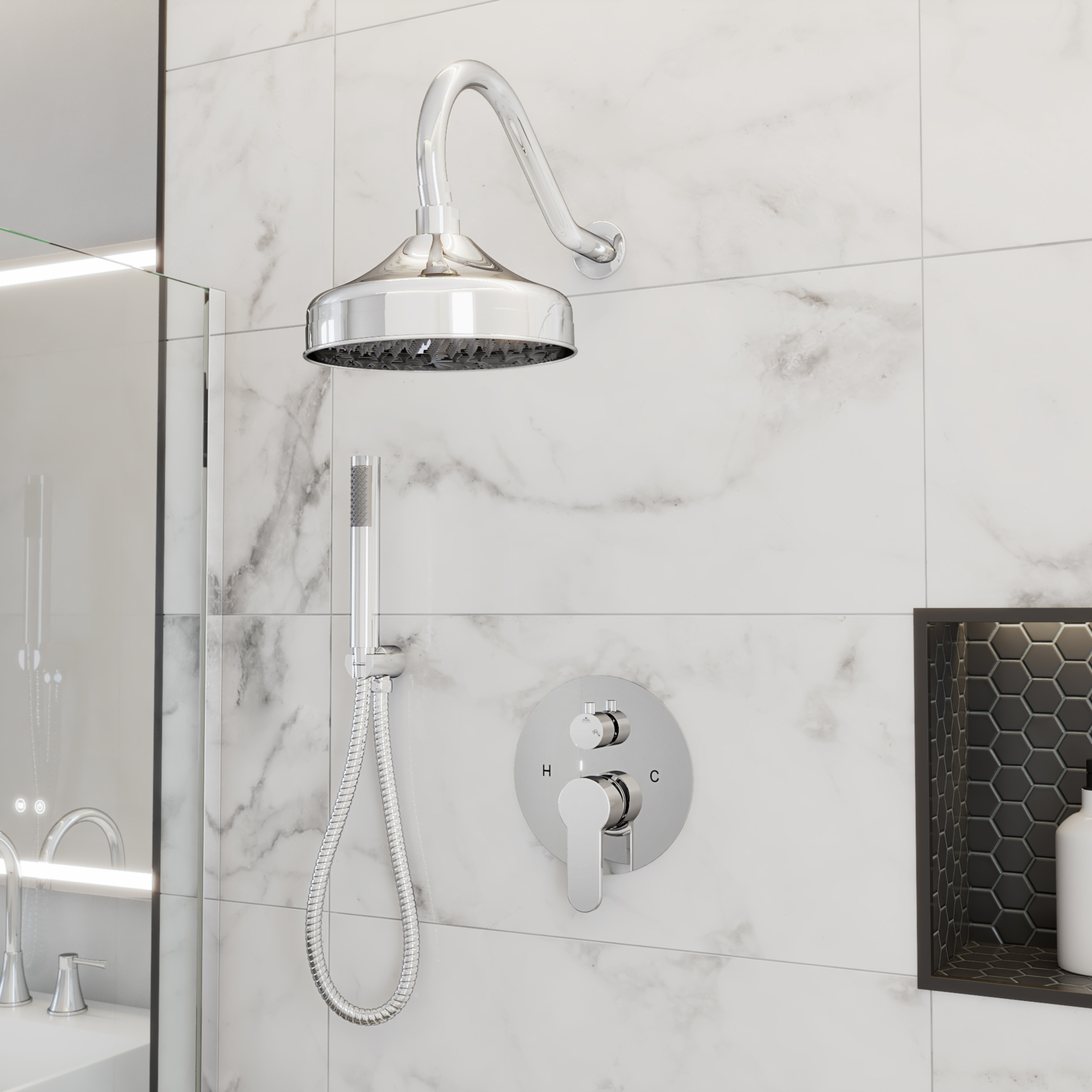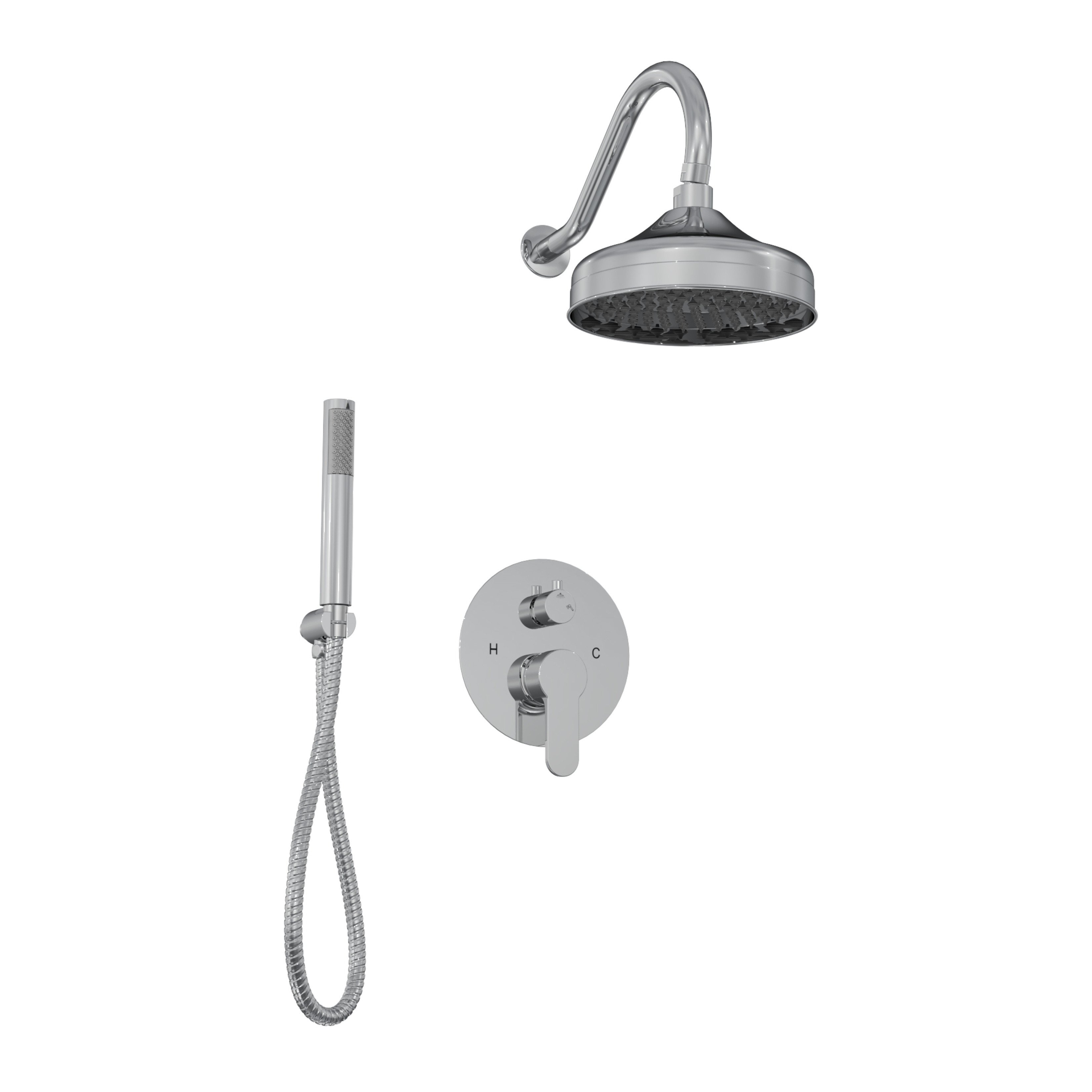 | 9 Set - Bullet 01 | Full rainfall shower set with round head, valve, and wand handshower |