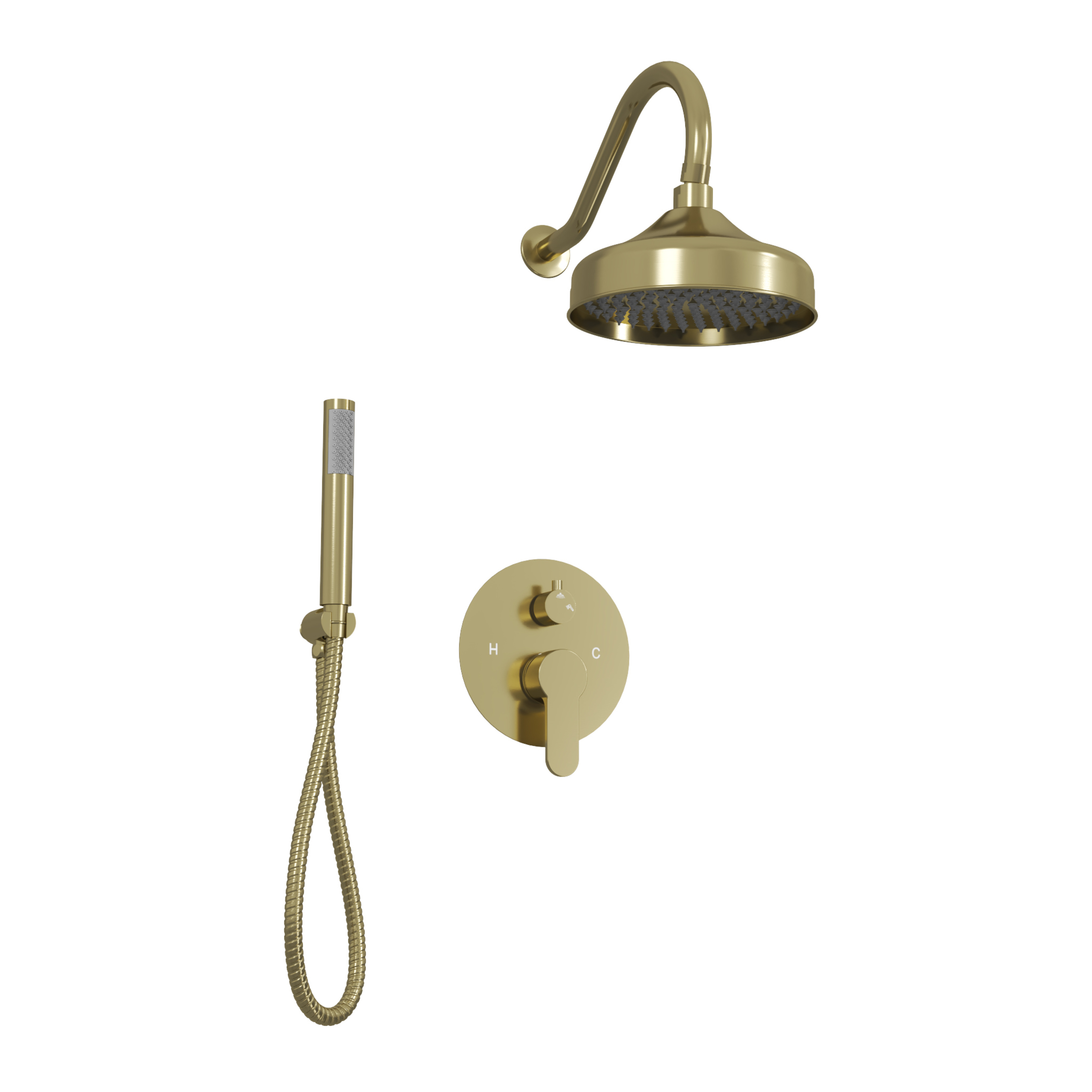 | 9 Set - Bullet 01 | Full rainfall shower set with round head, valve, and wand handshower |