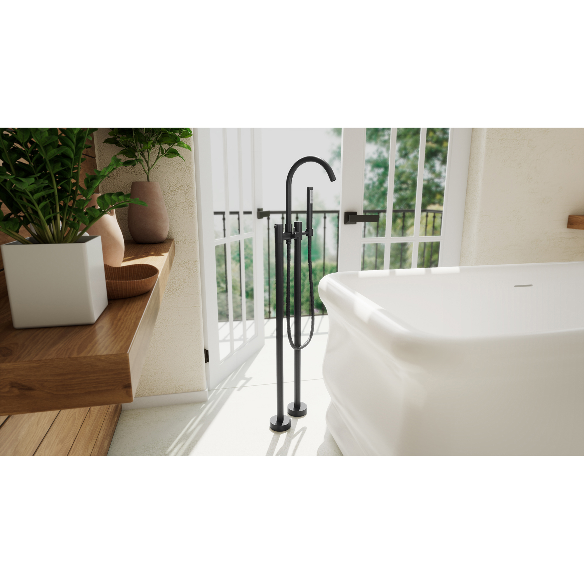 | 9 Set - Bullet 07 | Freestanding tub faucet with detachable handshower; Designed to be easy-to-install for DIY customers but professional help still recommended |