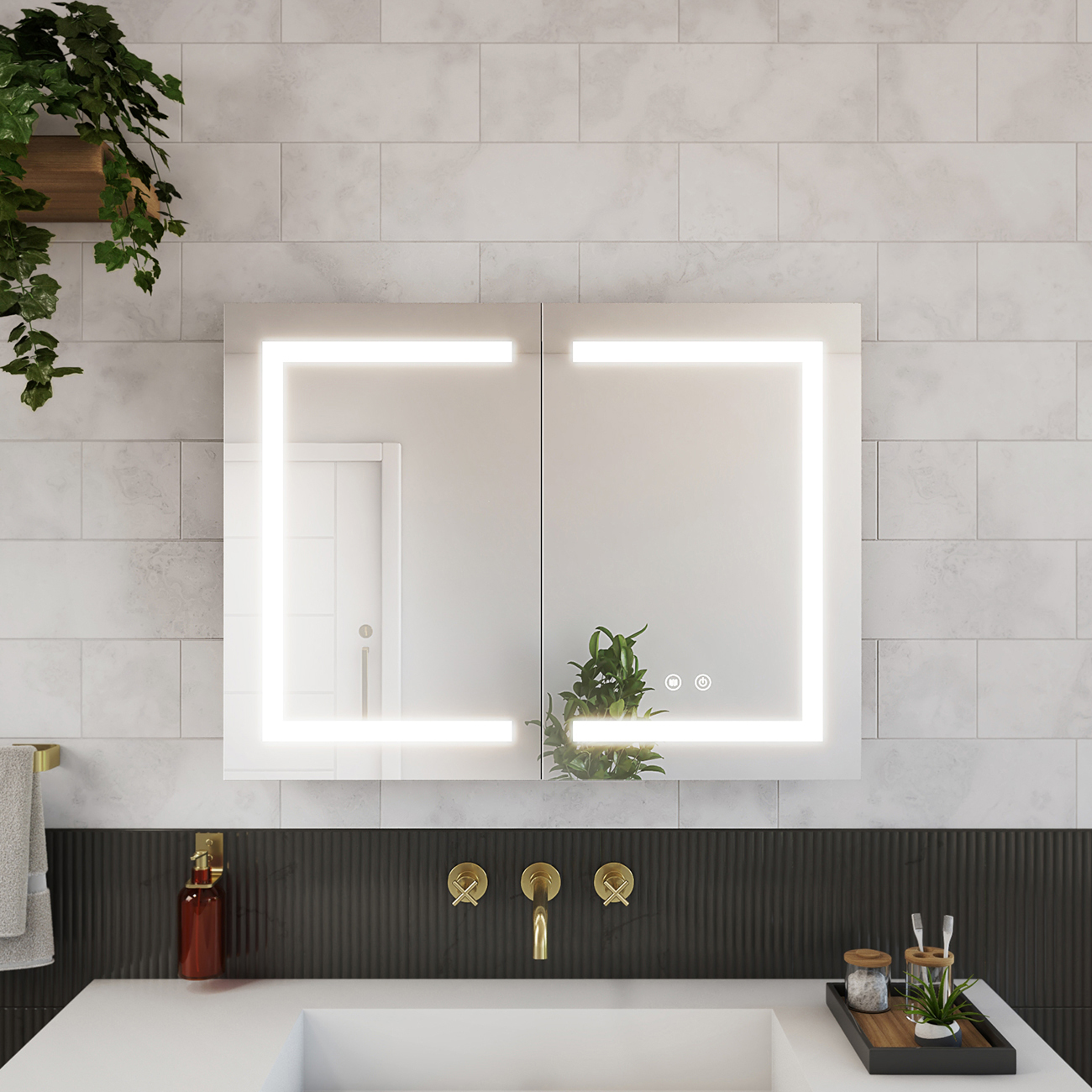 | 9 Set - Bullet 02 | Rectangular medicine cabinet with two (2) doors for storage and built-in LED lighting |