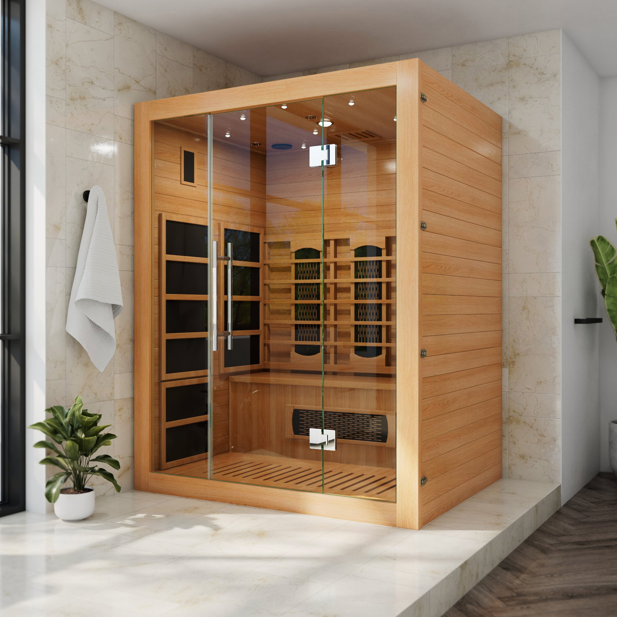 | 9 Set - Bullet 02 | Carbon‑fiber far‑infrared heating panels deliver deep, soothing warmth and fast, even performance. |
